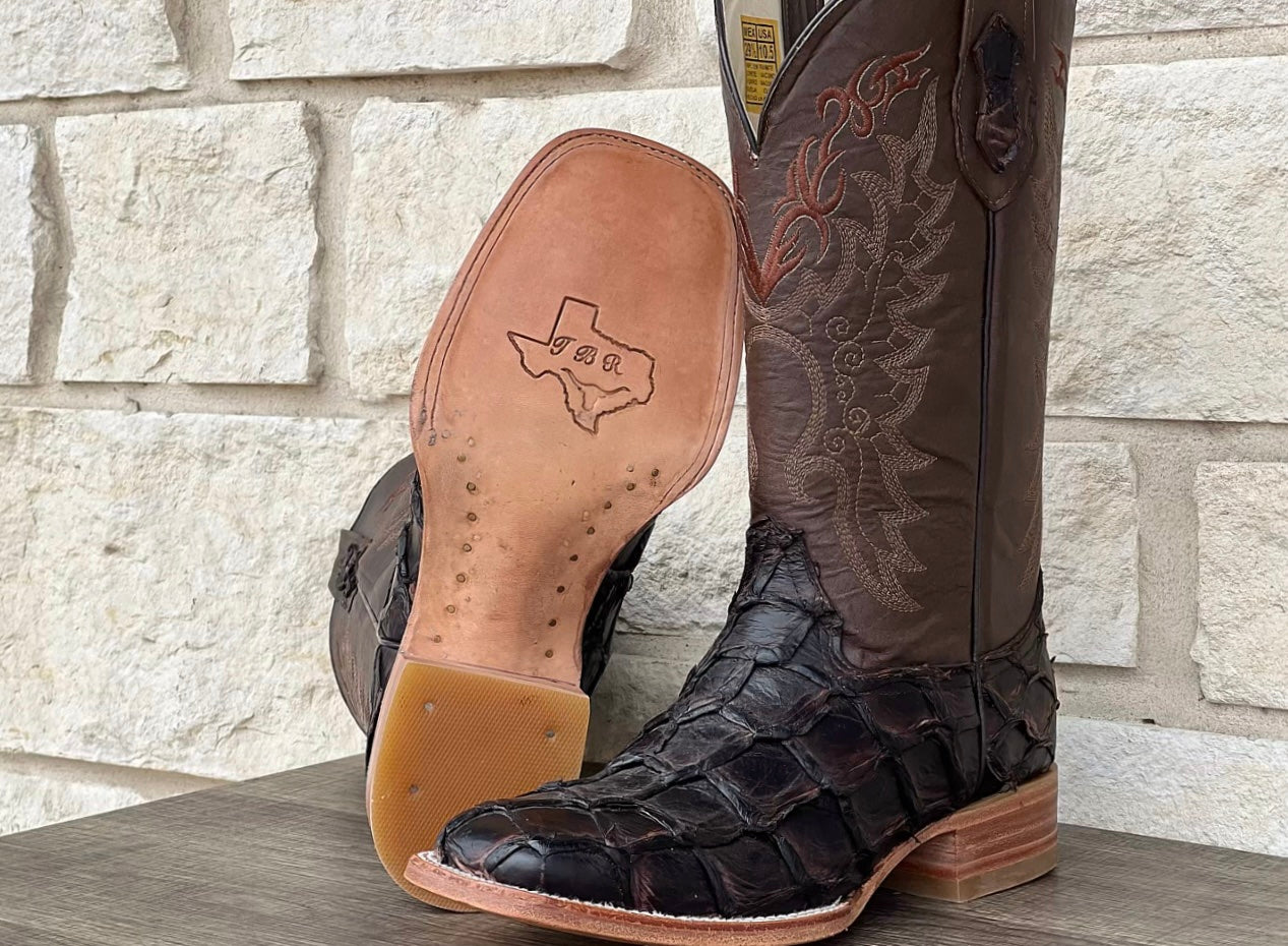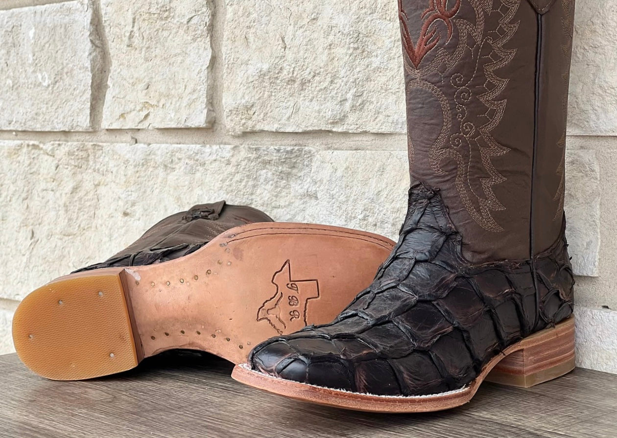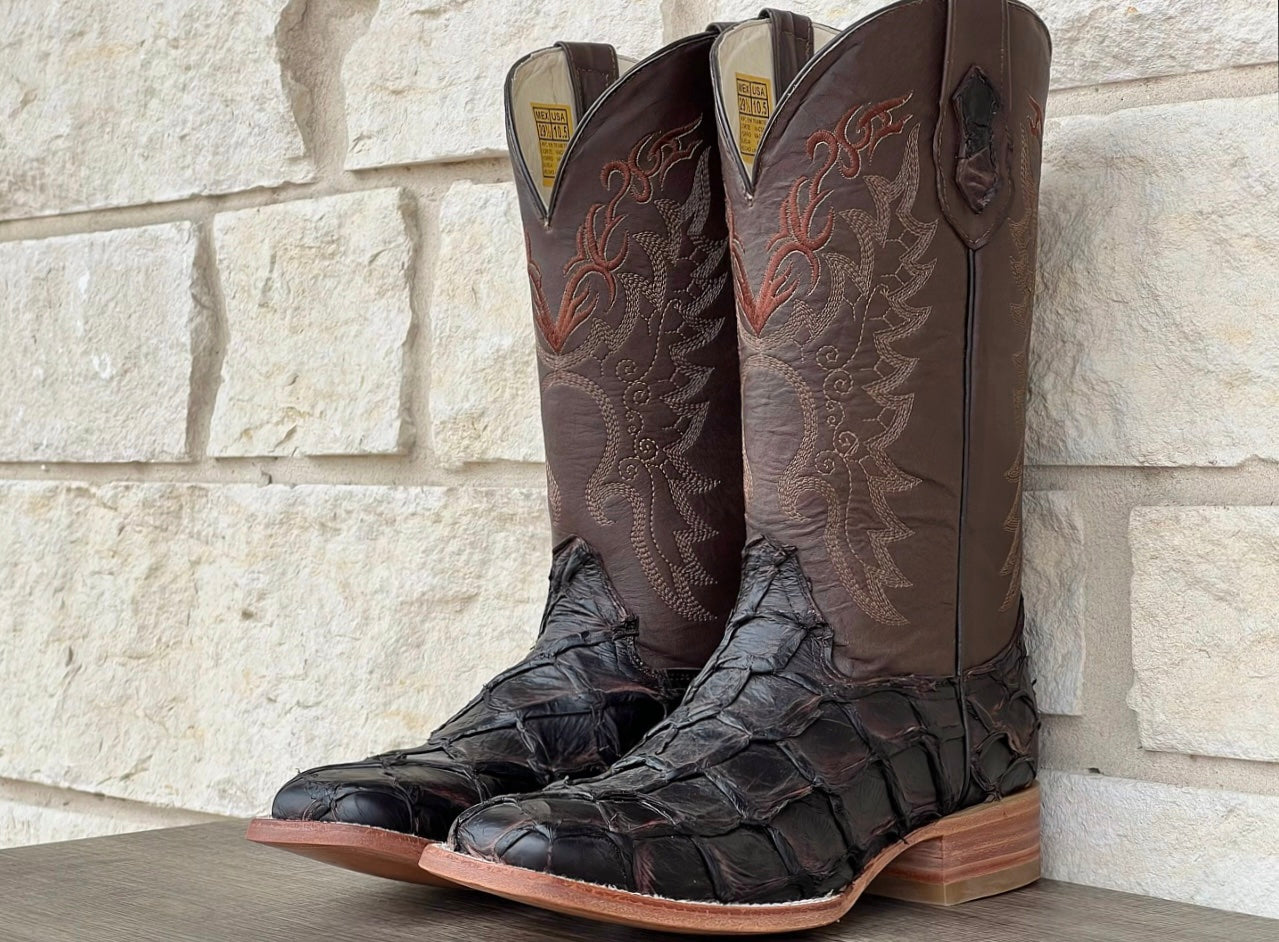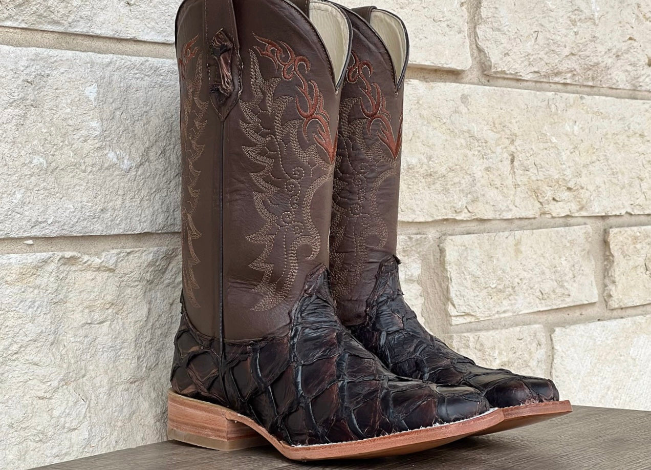 Men’s Genuine Brown Pirarucu Boots With Brown Shaft