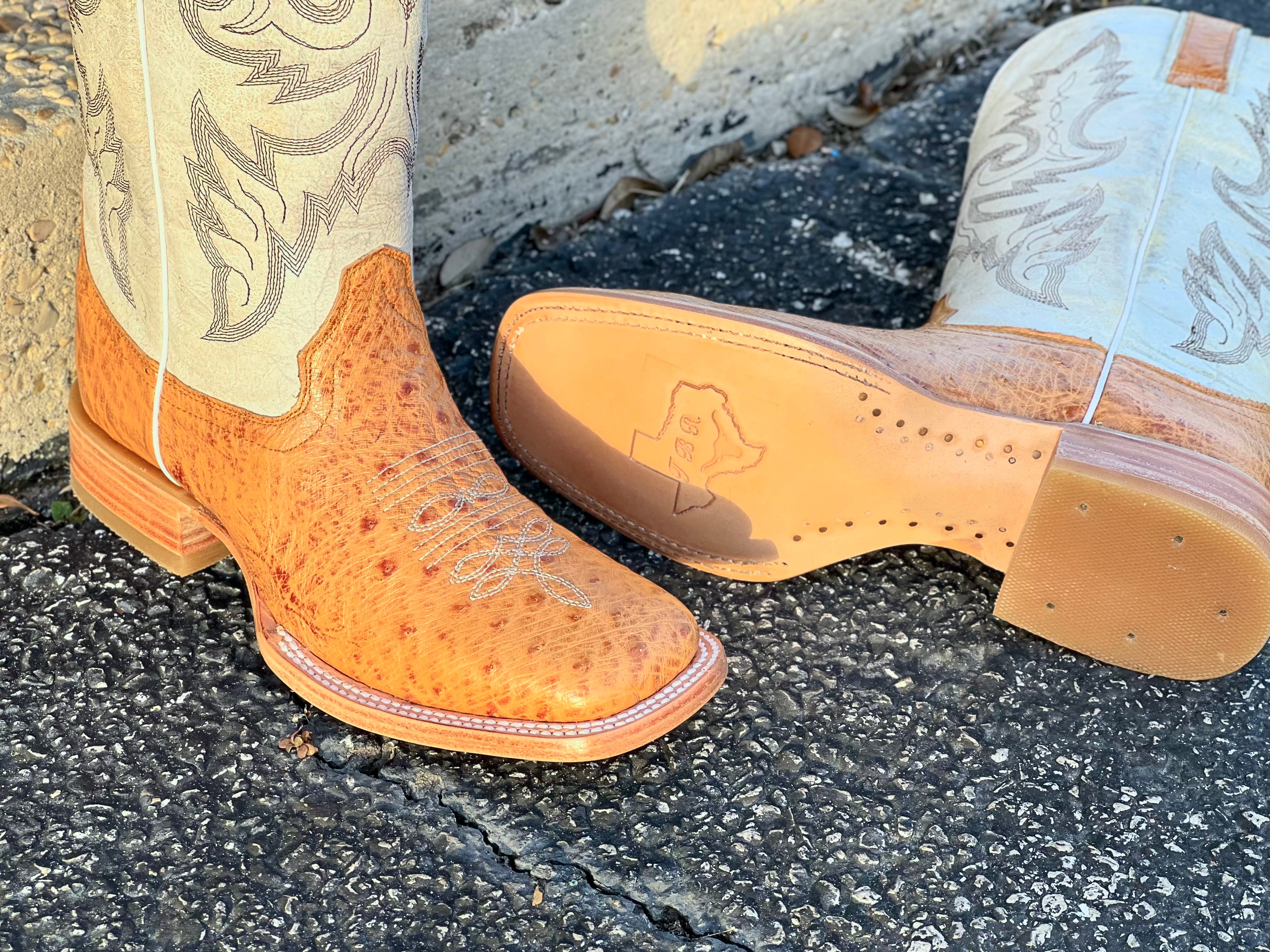 Men’s Genuine Butter Color Ostrich Belly With White Shaft