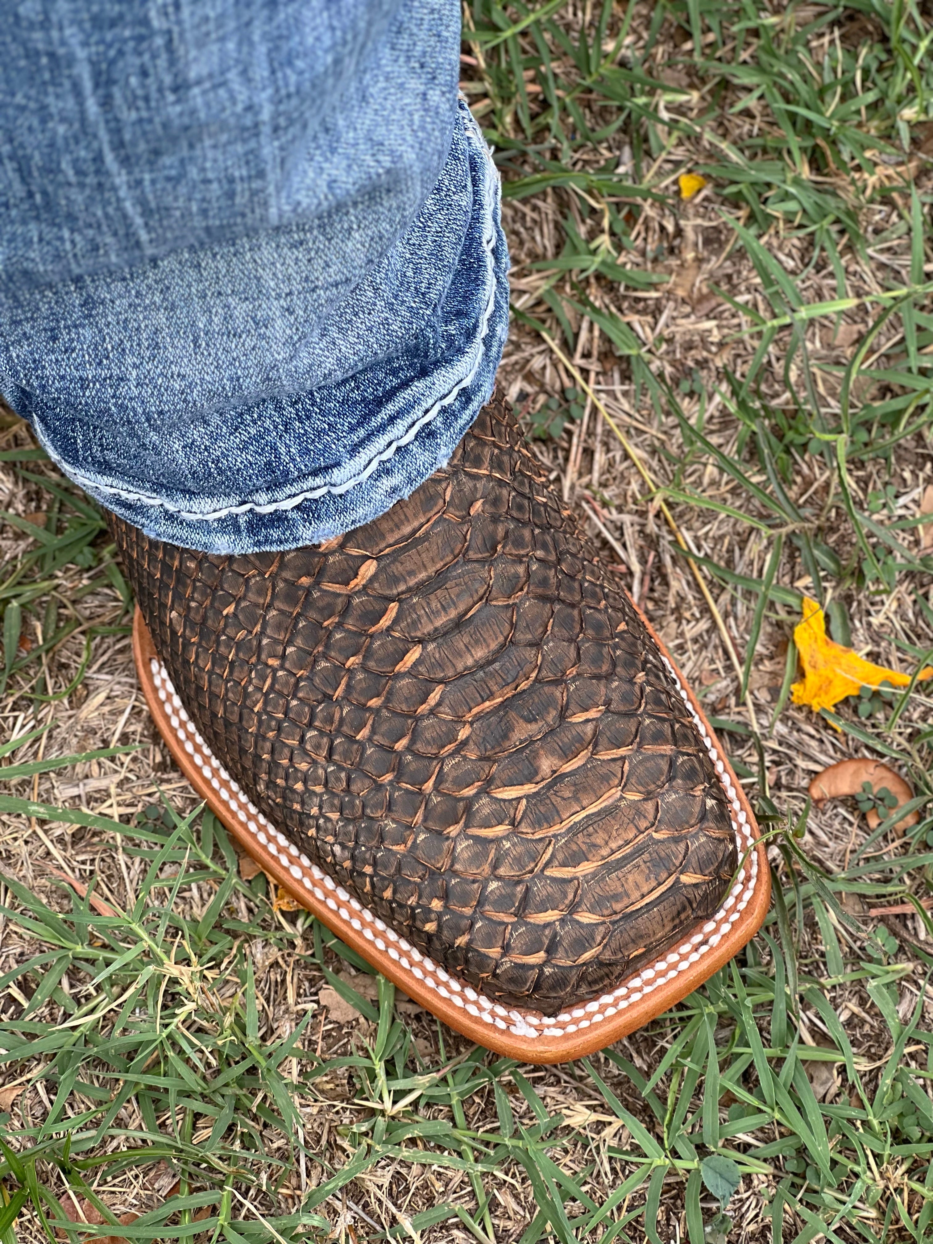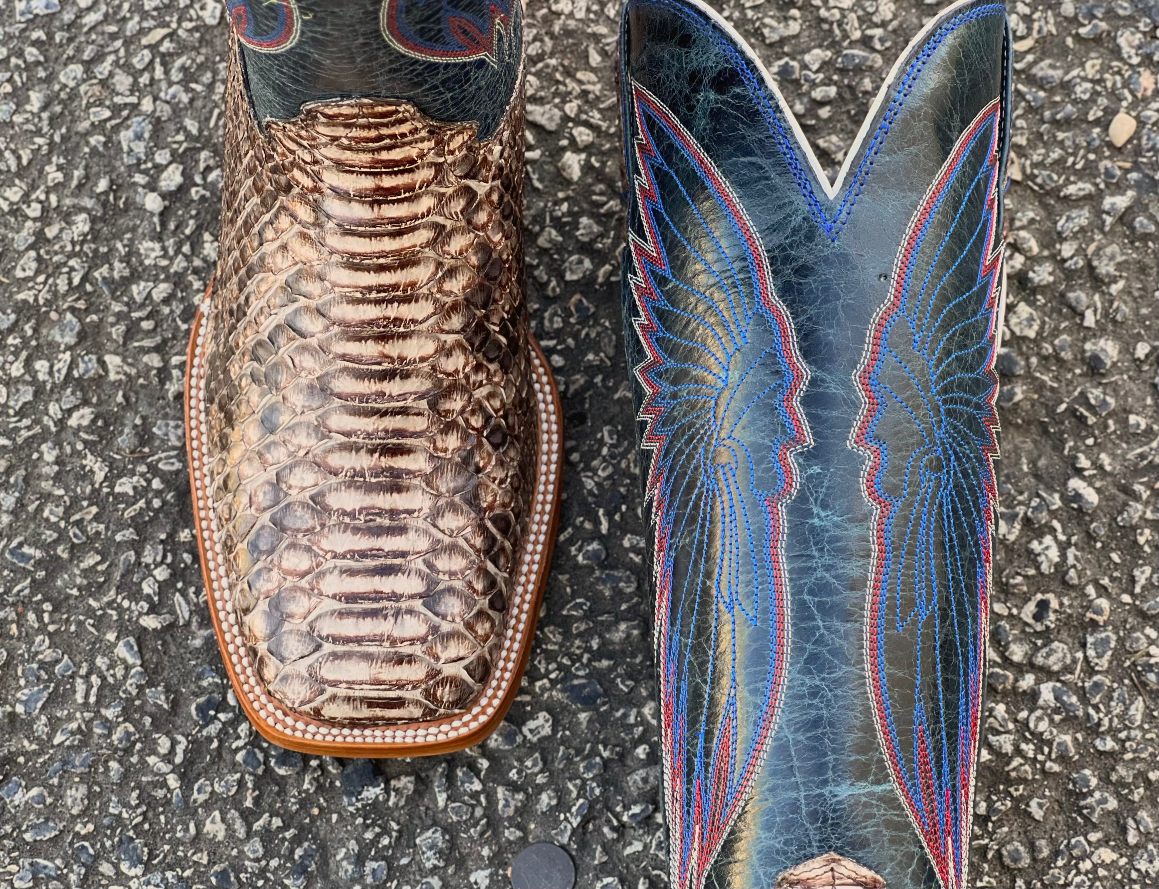 Men’s Natural Python Exotic Boots With Bule Shaft