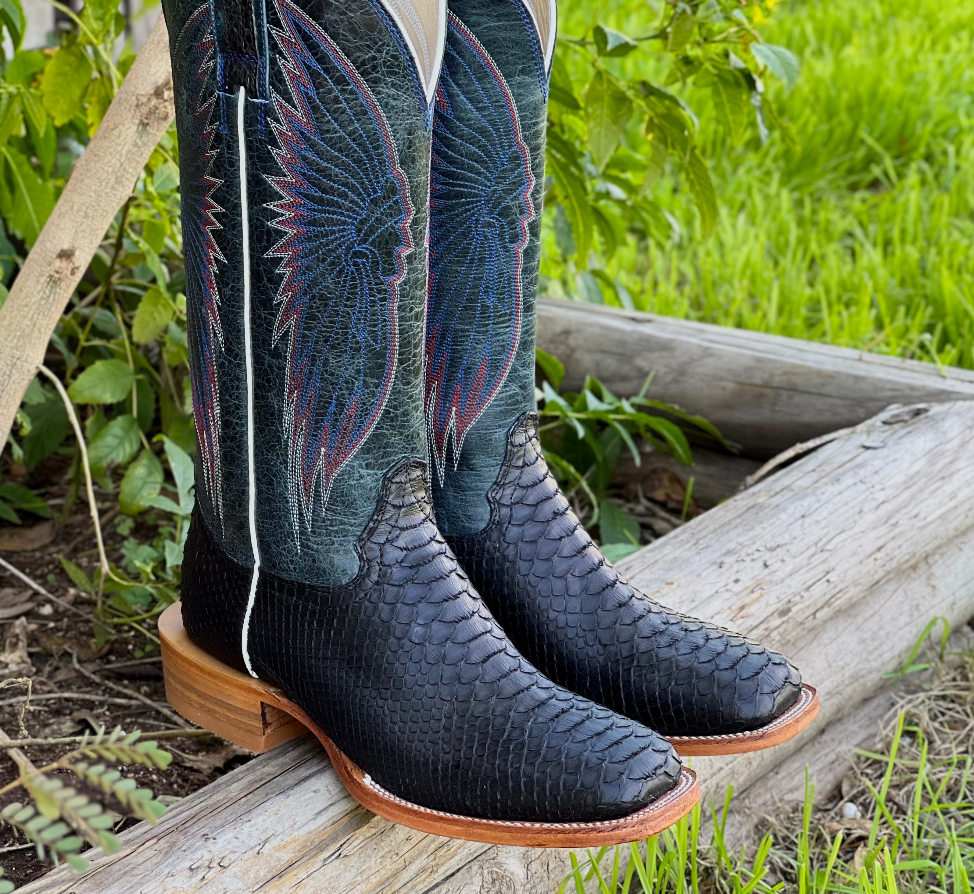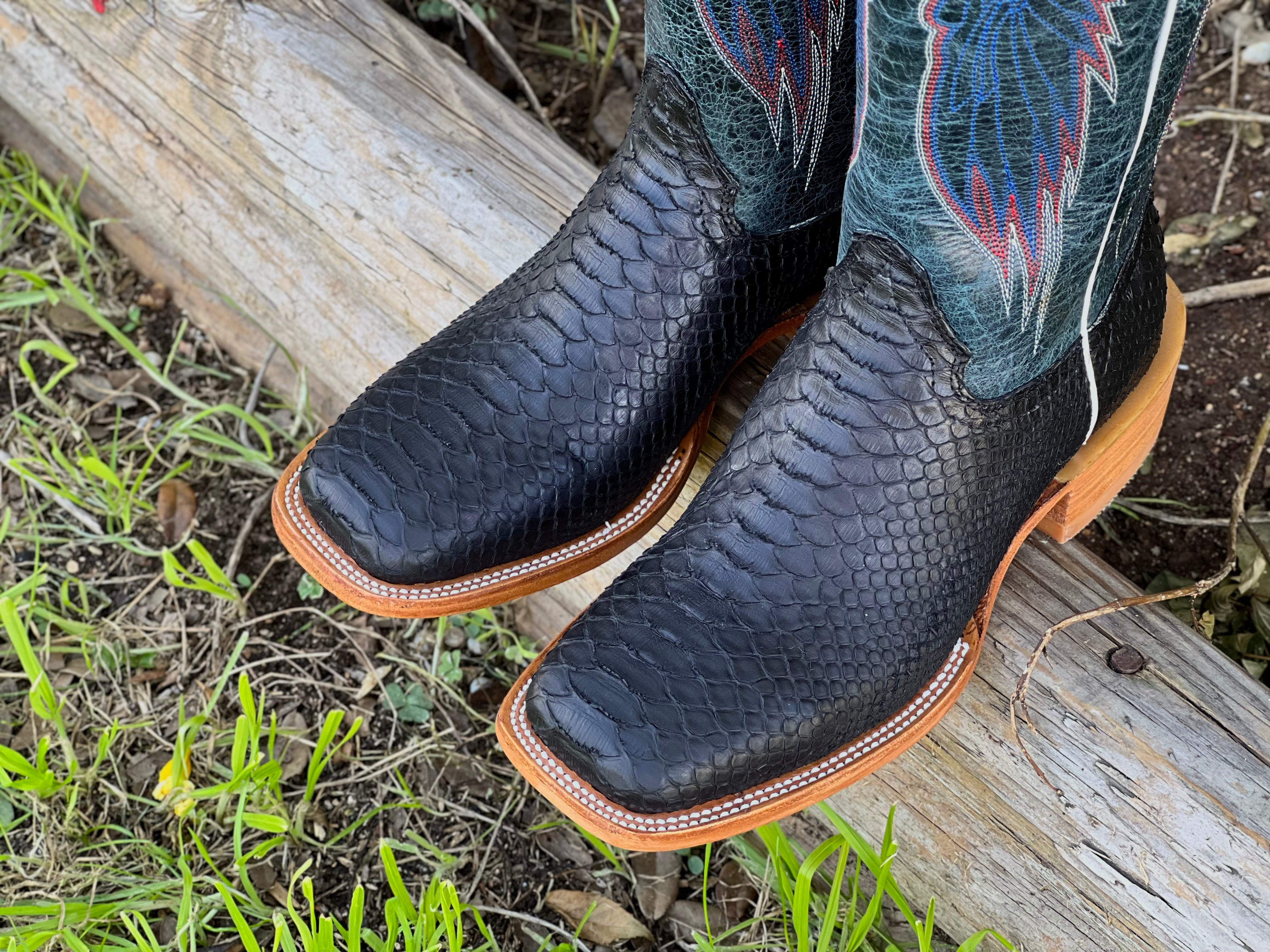 Men’s Genuine Black Python Boots With Dark Blue Shaft