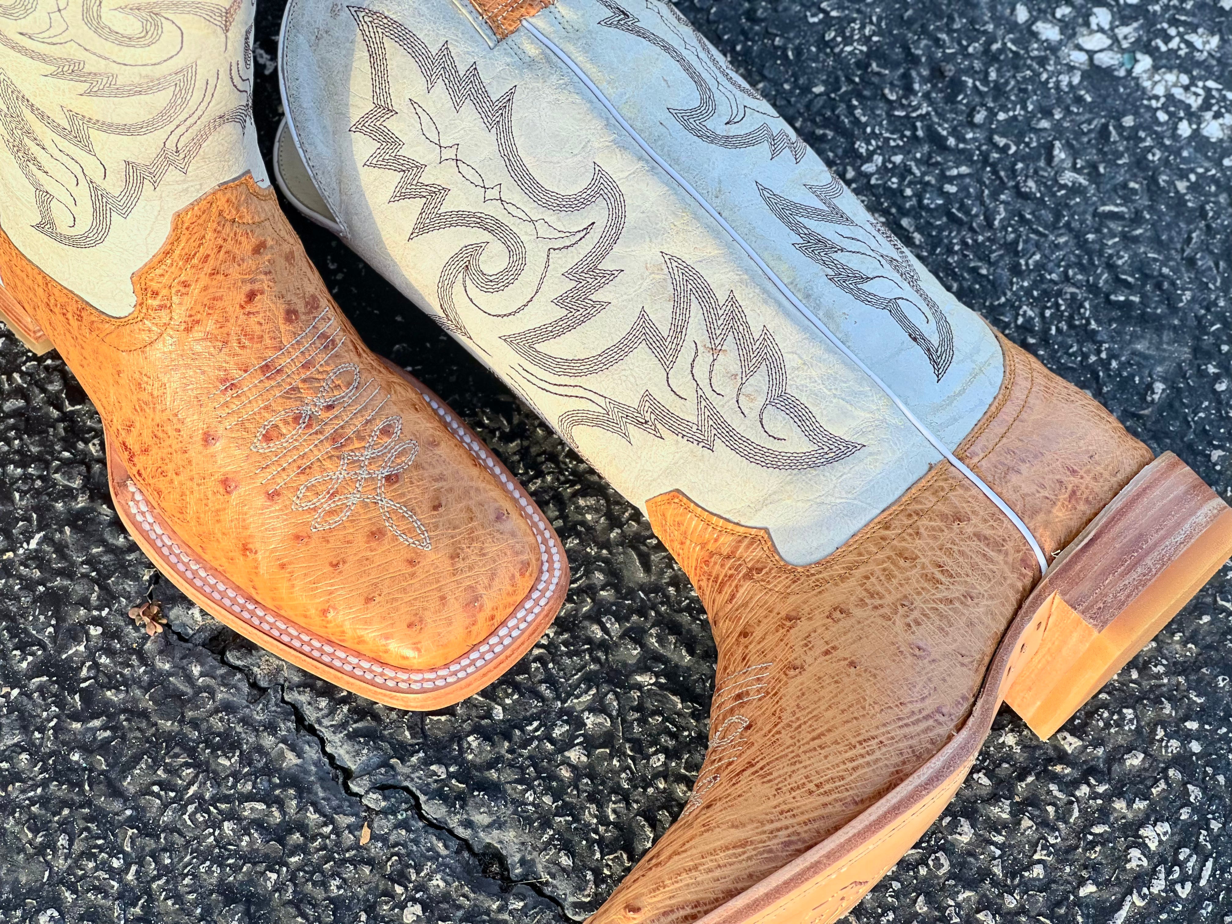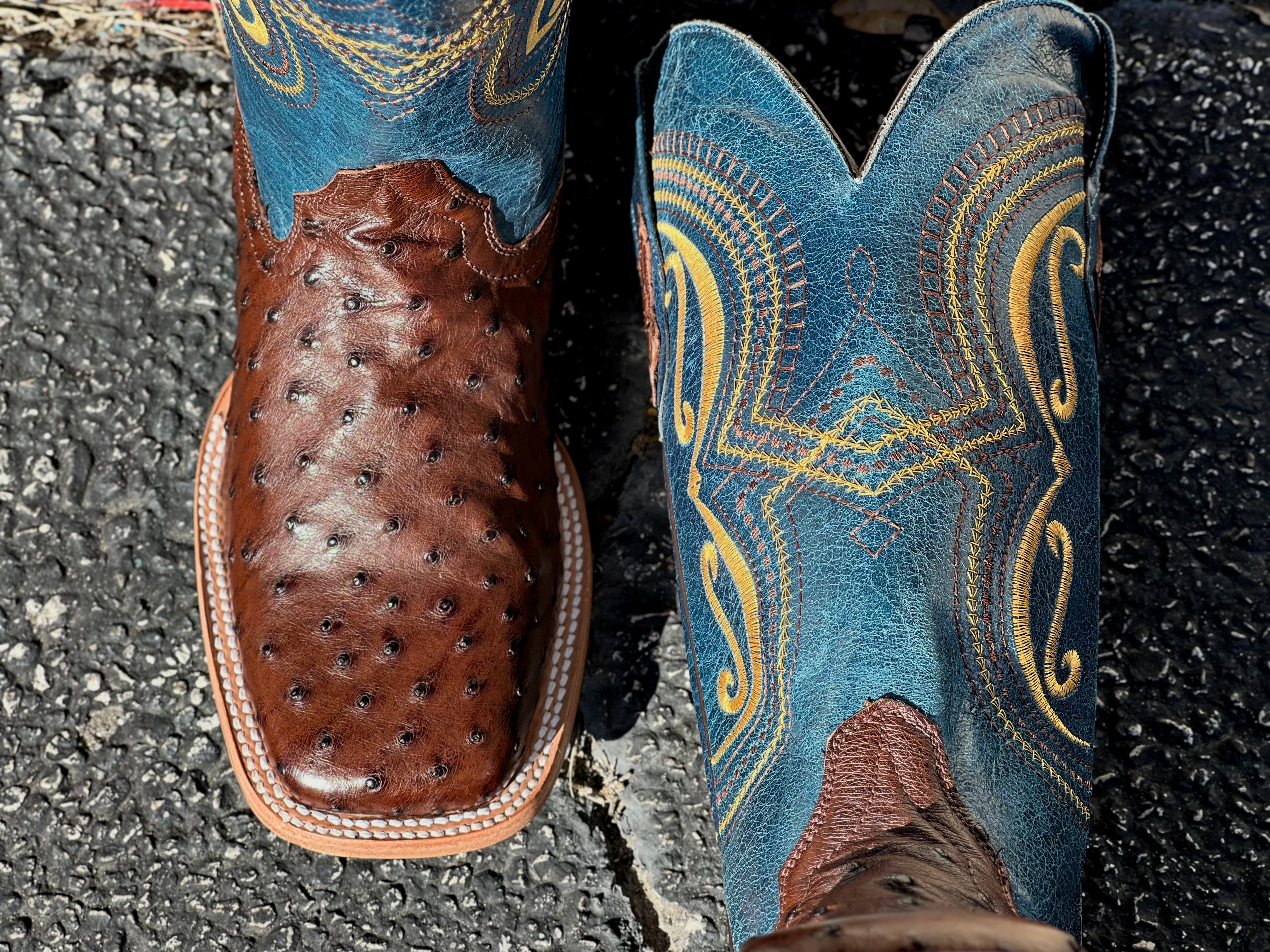 Men’s Genuine Brown Ostrich Boots With Blue Shaft