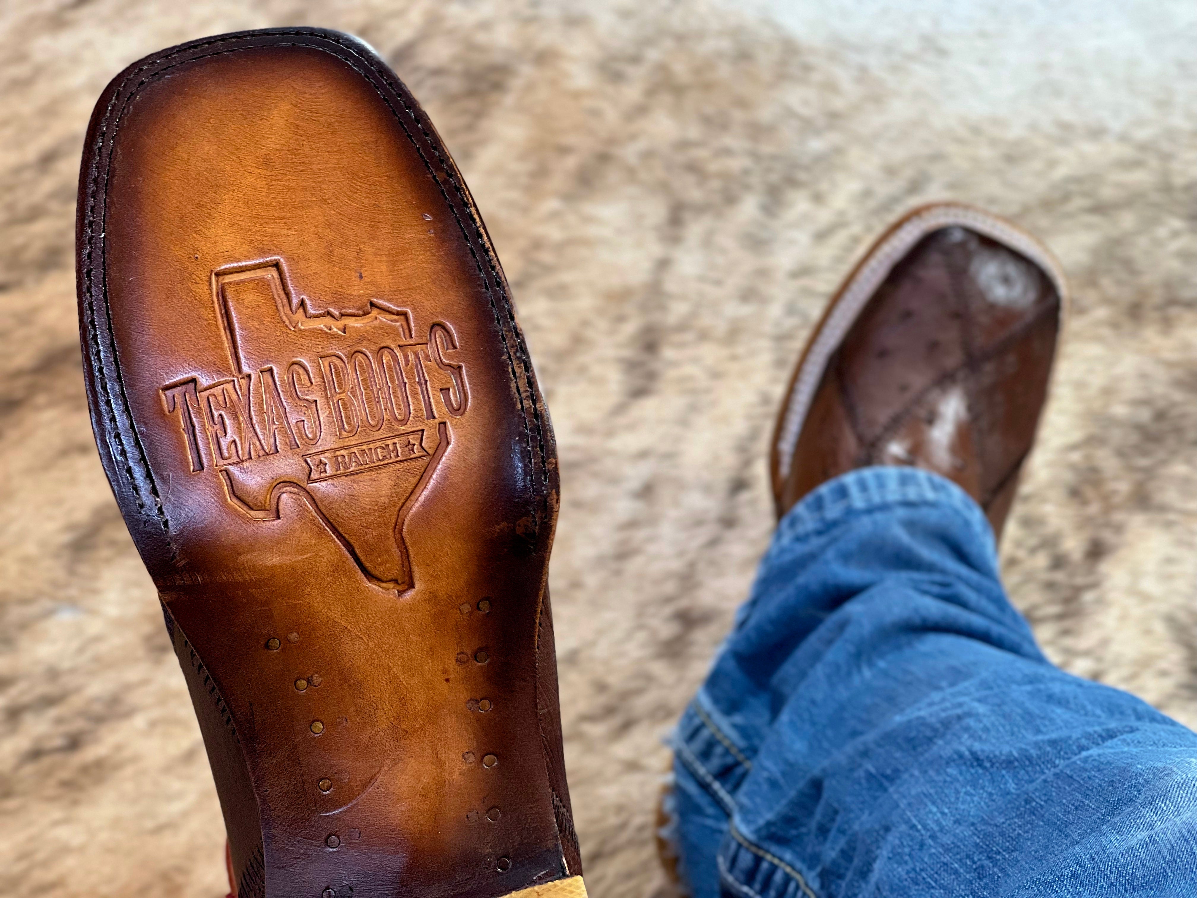 Men’s Genuine Patchwork Brown Ostrich with Red Shaft