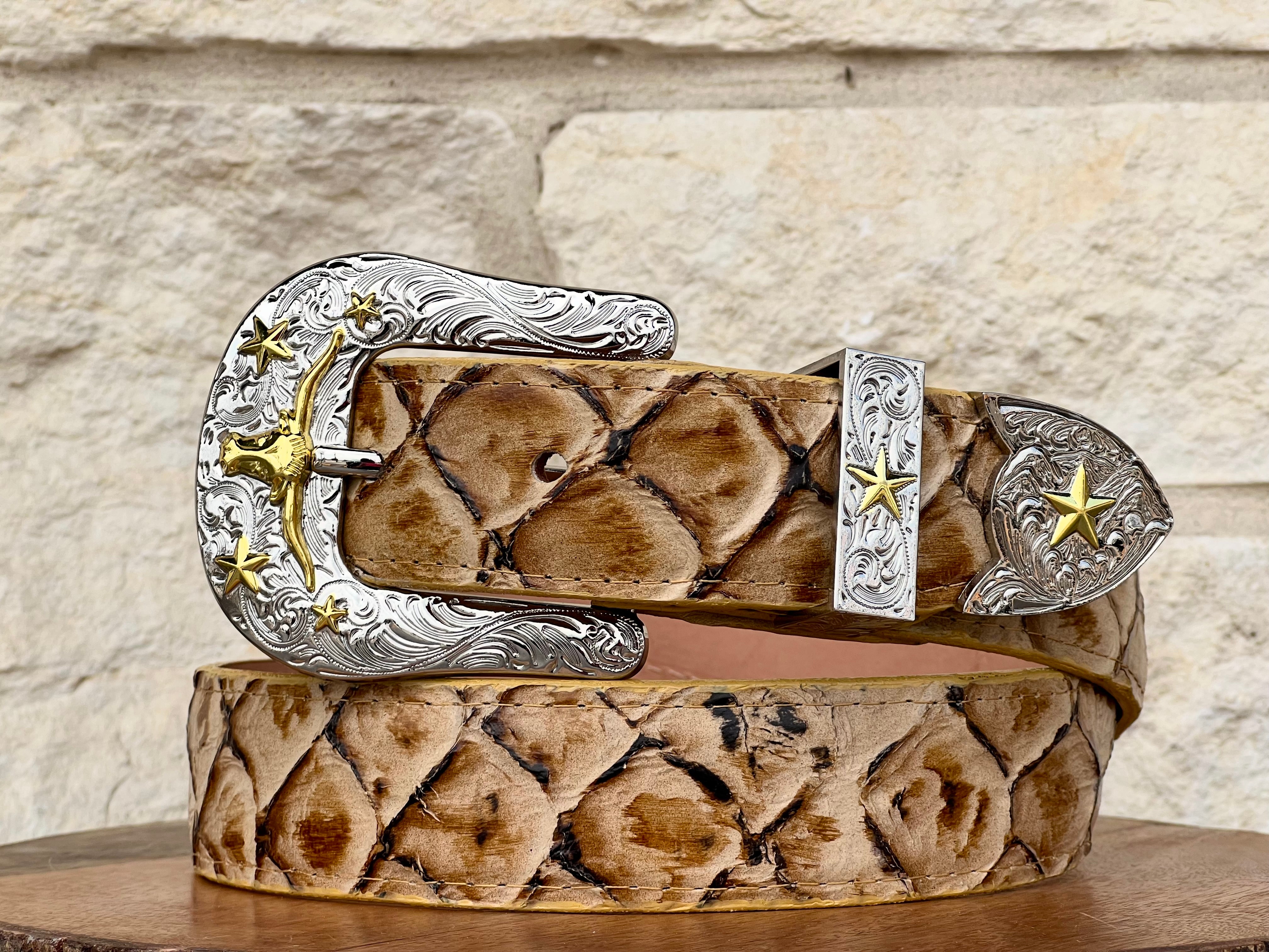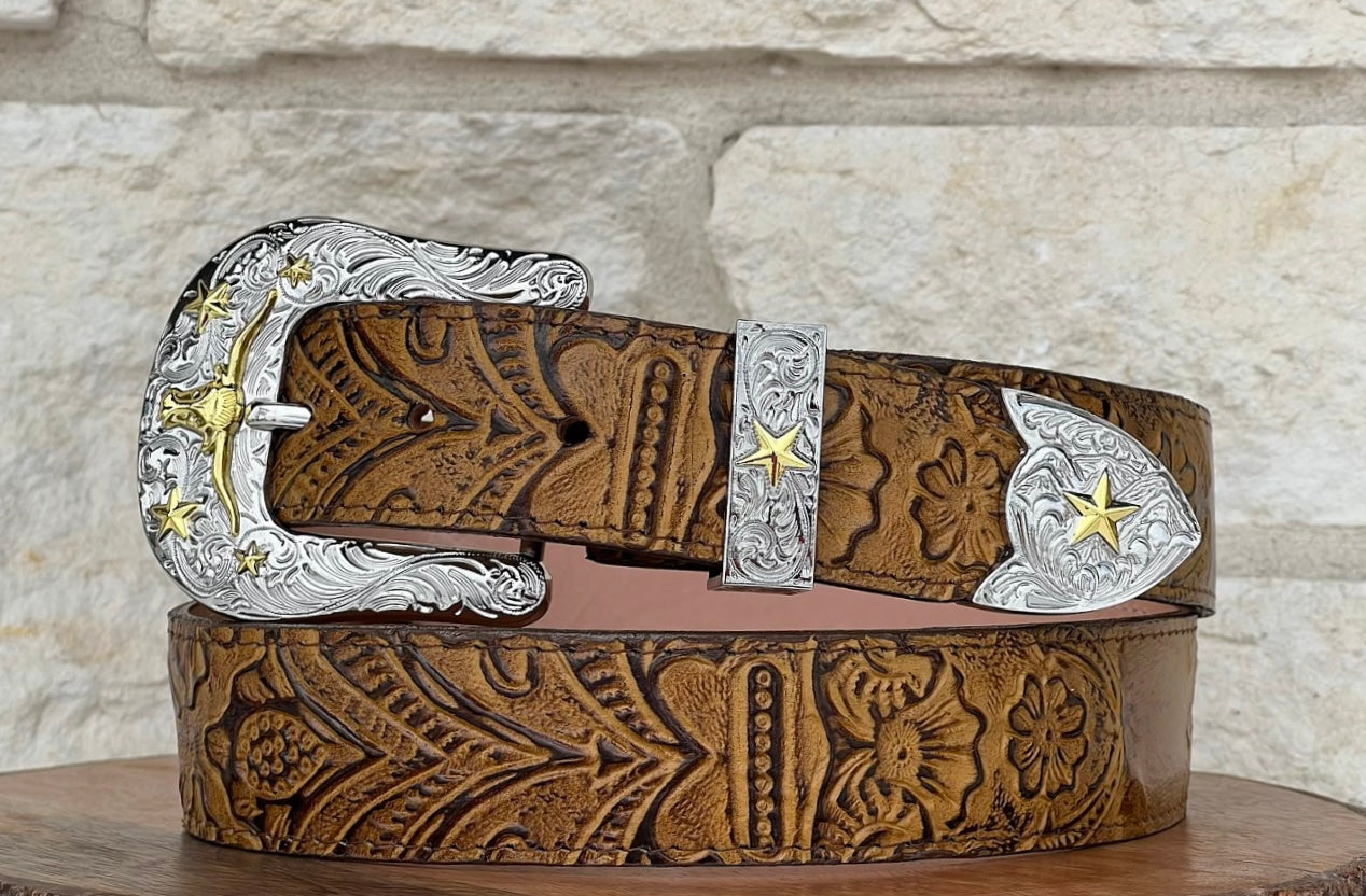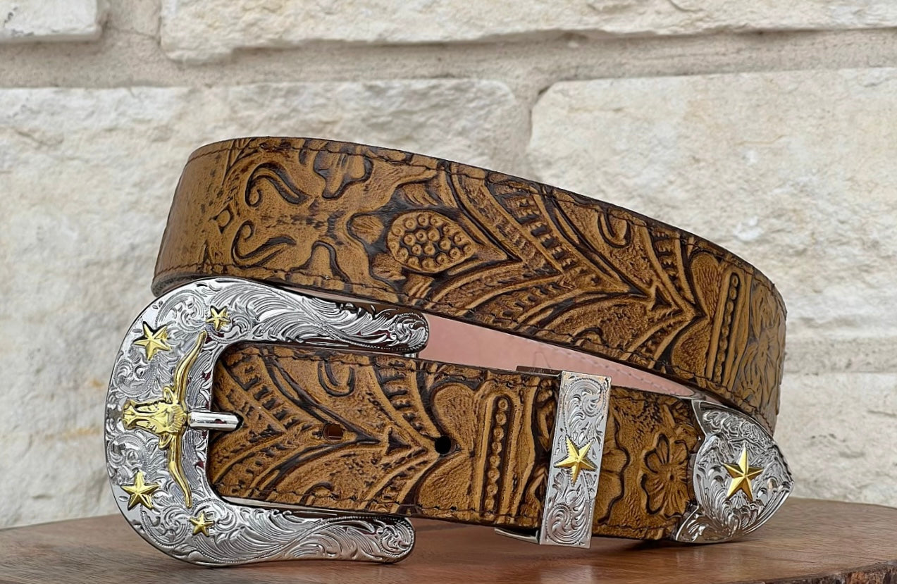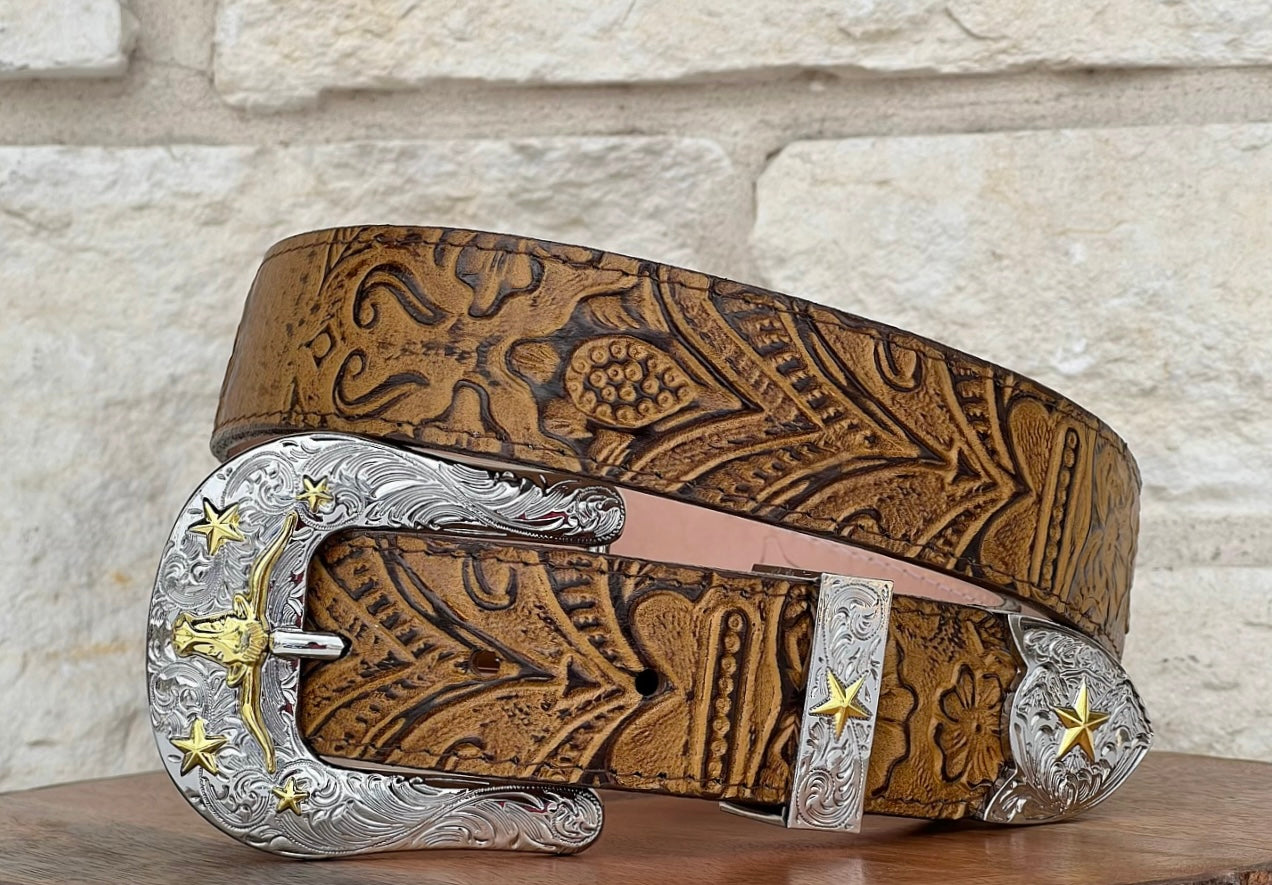 Honey Hand-Tooled Artesanal Beaded Leather Belts