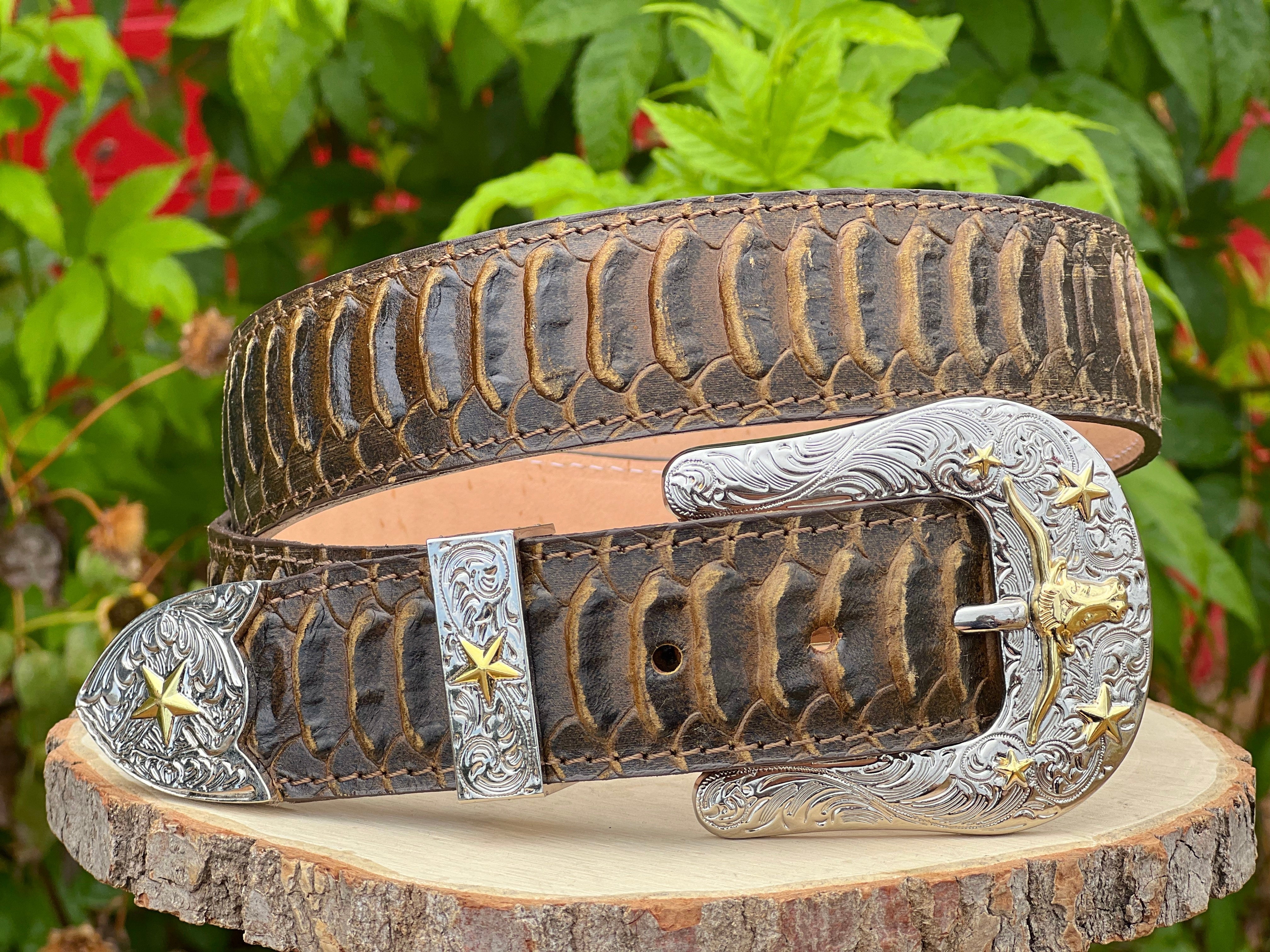 Rustic Brown Python Leather Belt