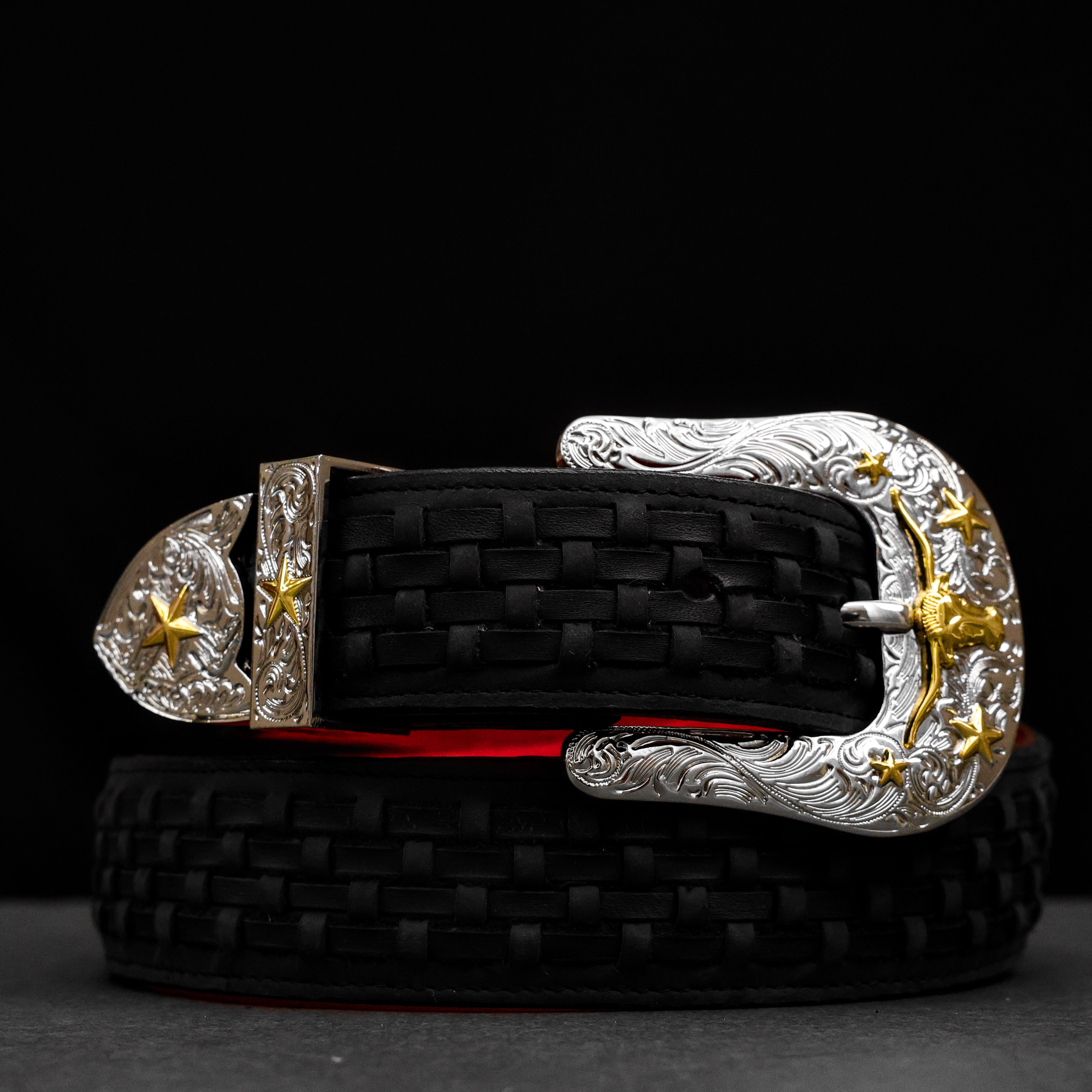 Black Basketweave Leather Belt