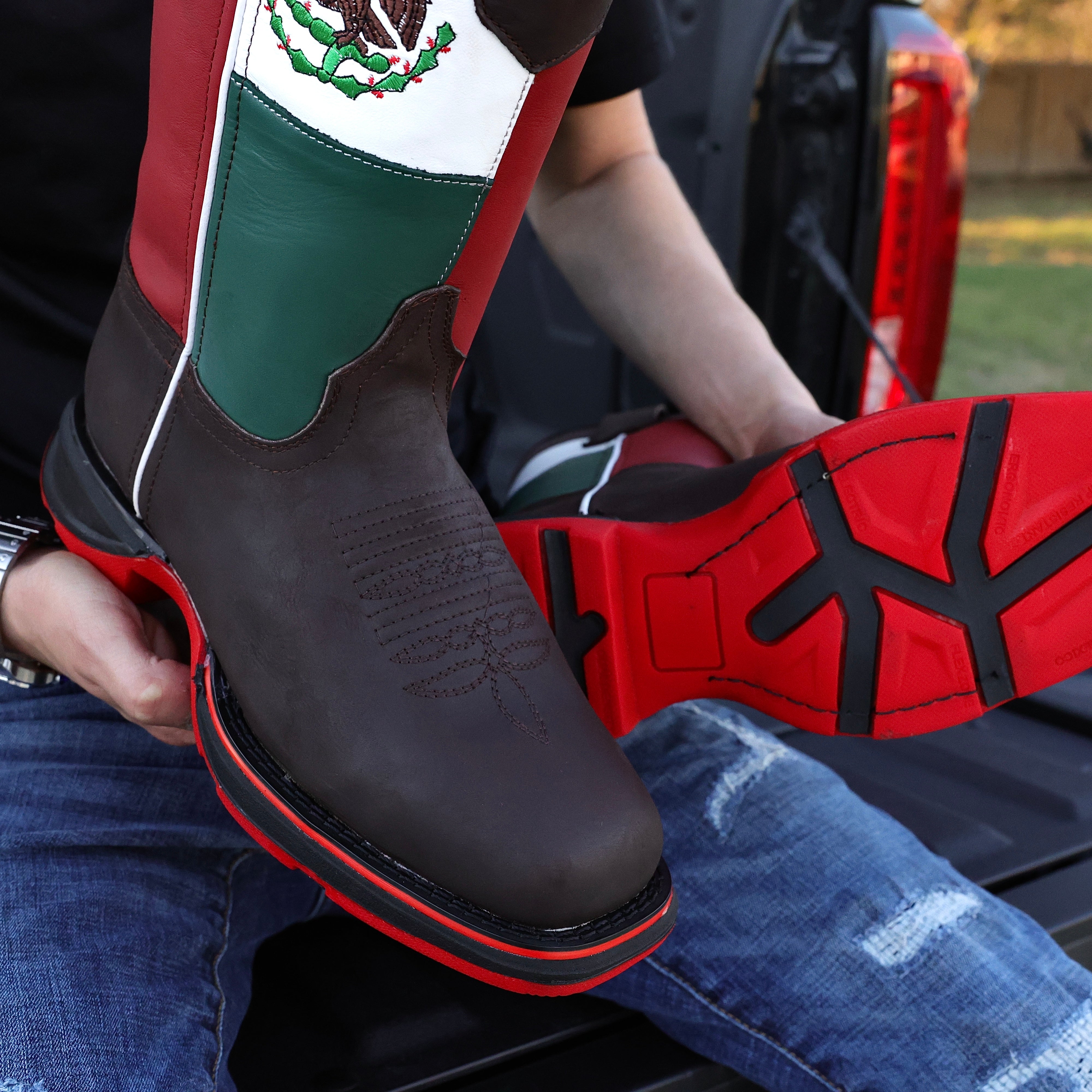 Brown MEXICO Flag Leather Work Boots - Composite Toe
