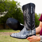 Rustic Eclipse Caiman Neck Leather Boots - Square Toe