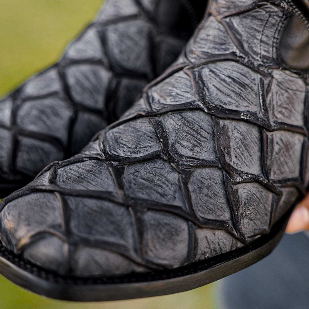 Meteorite Grey Rustic Pirarucu Leather Boots - Square Toe