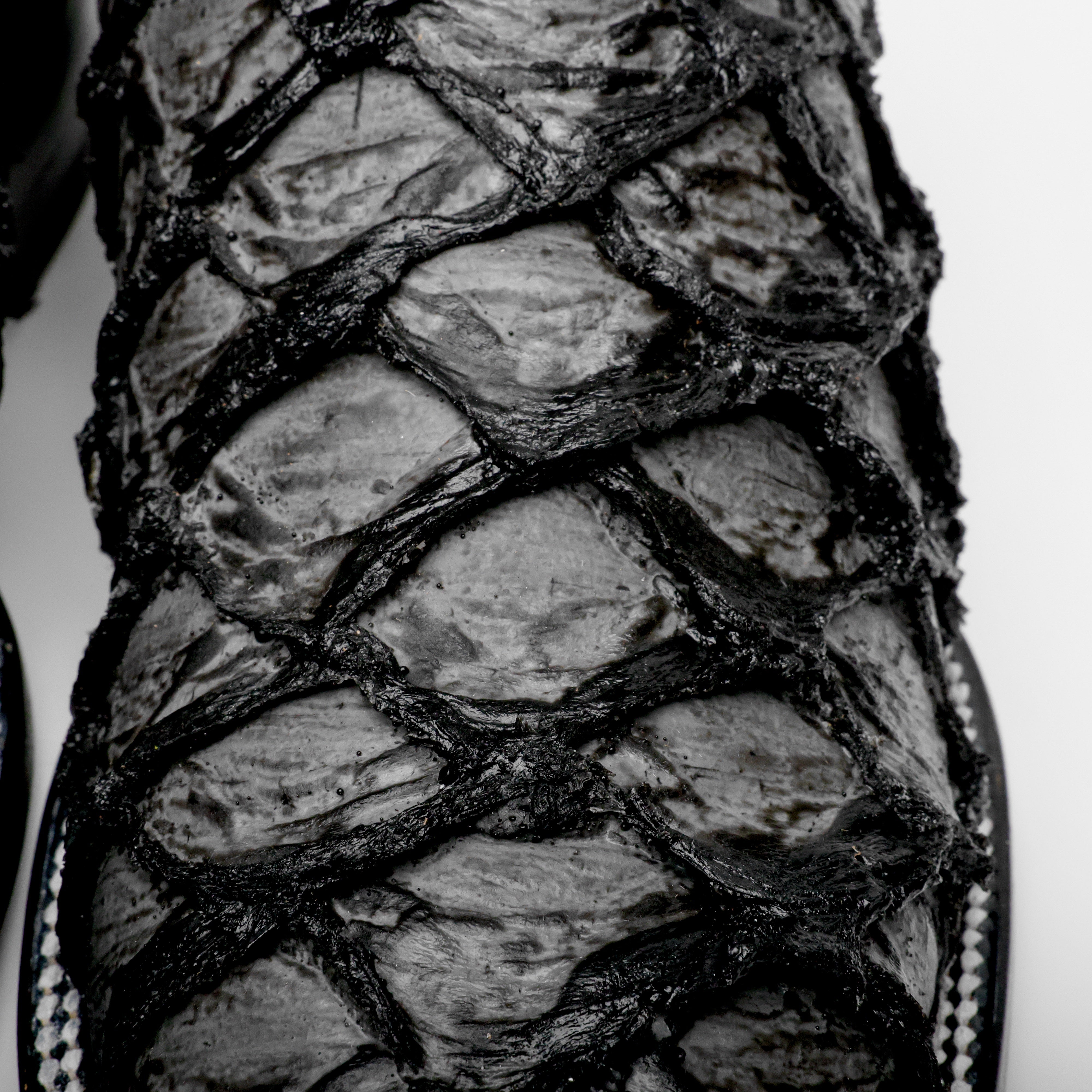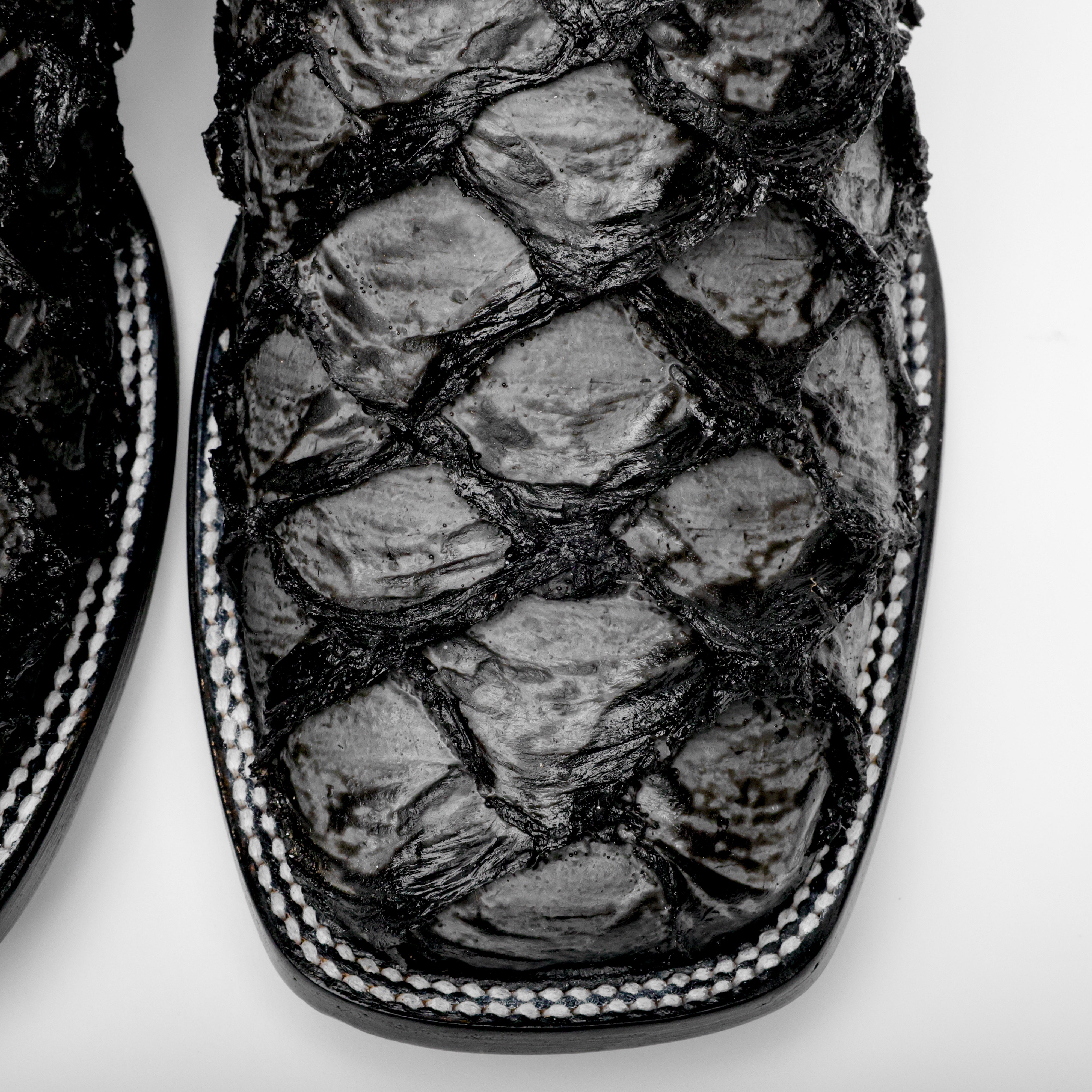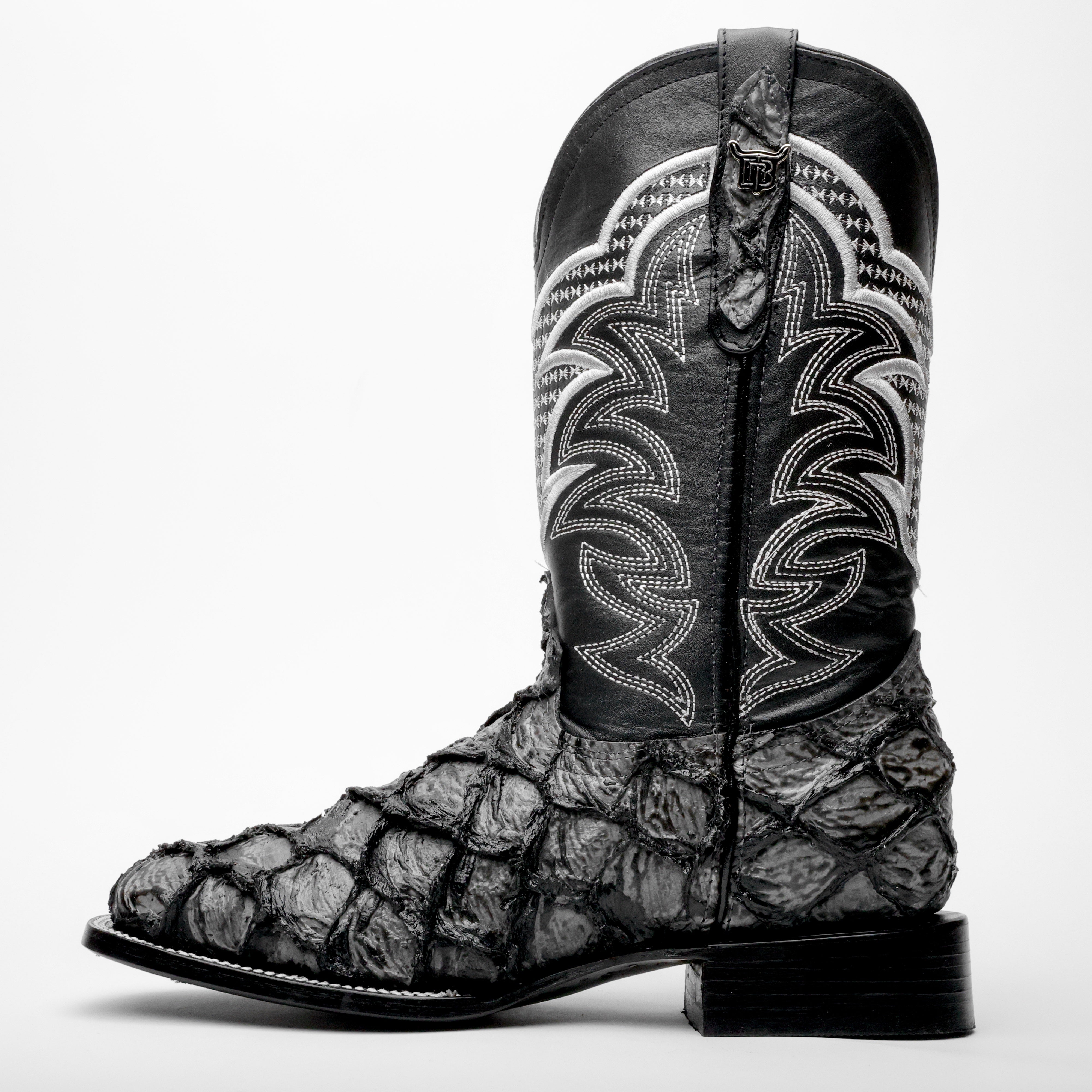 Grey Jumbo Pirarucu Leather Boots - Square Toe