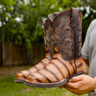 Moka American Gator Belly Leather Boots With Lightweight Soles - Square Toe