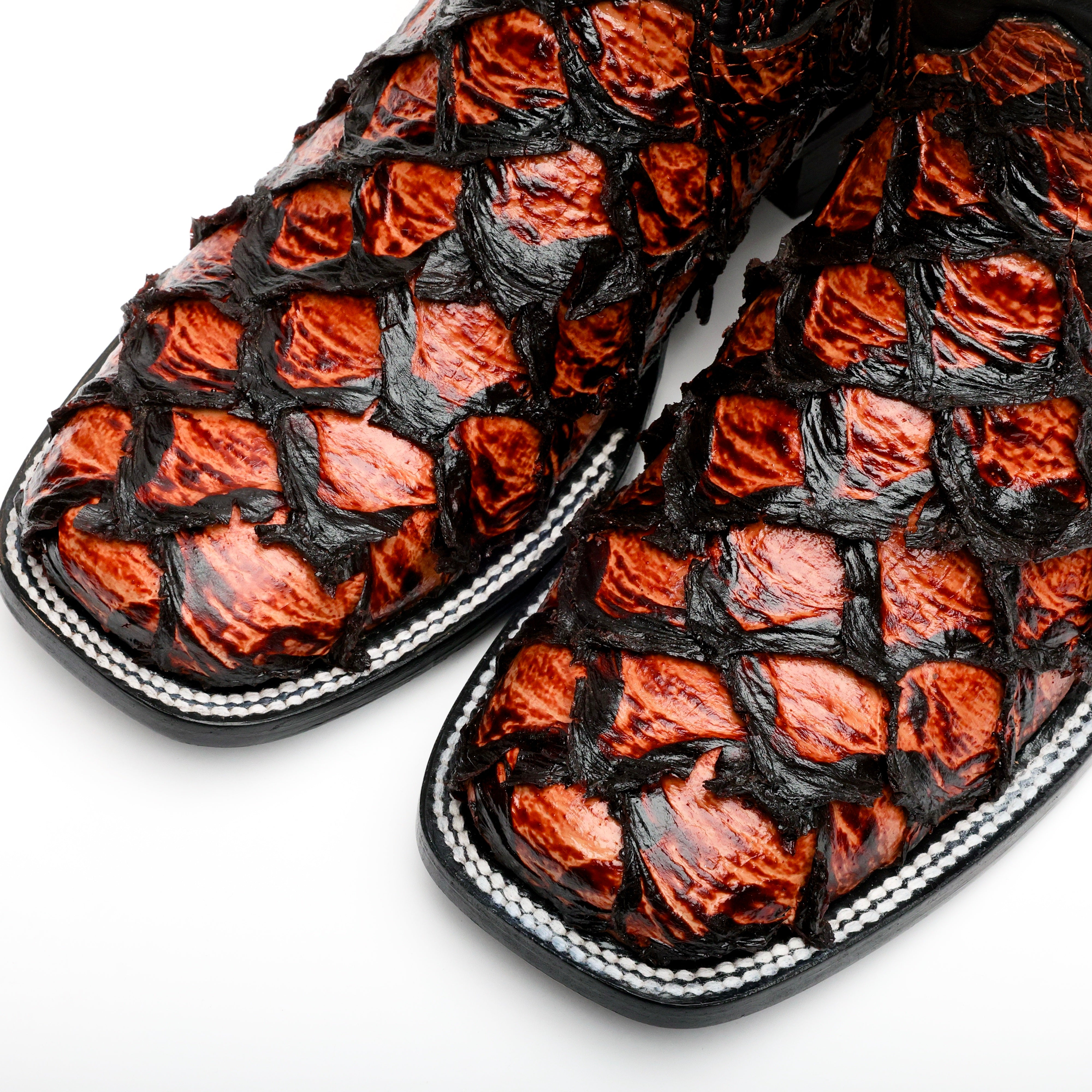 Cognac Jumbo Pirarucu Leather Boots - Square Toe