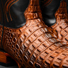 Metallic Cognac Caiman Hornback Leather Boots - Square Toe