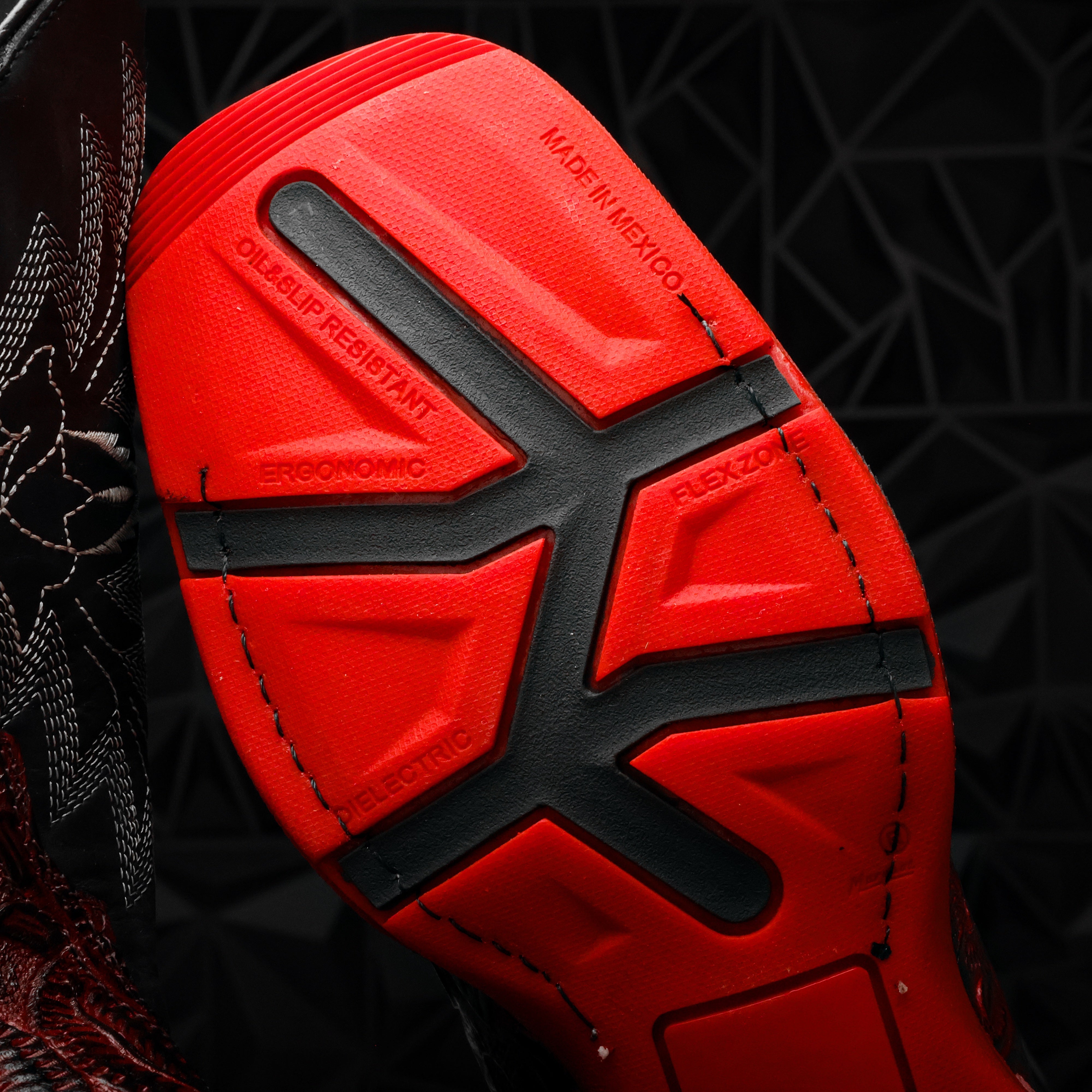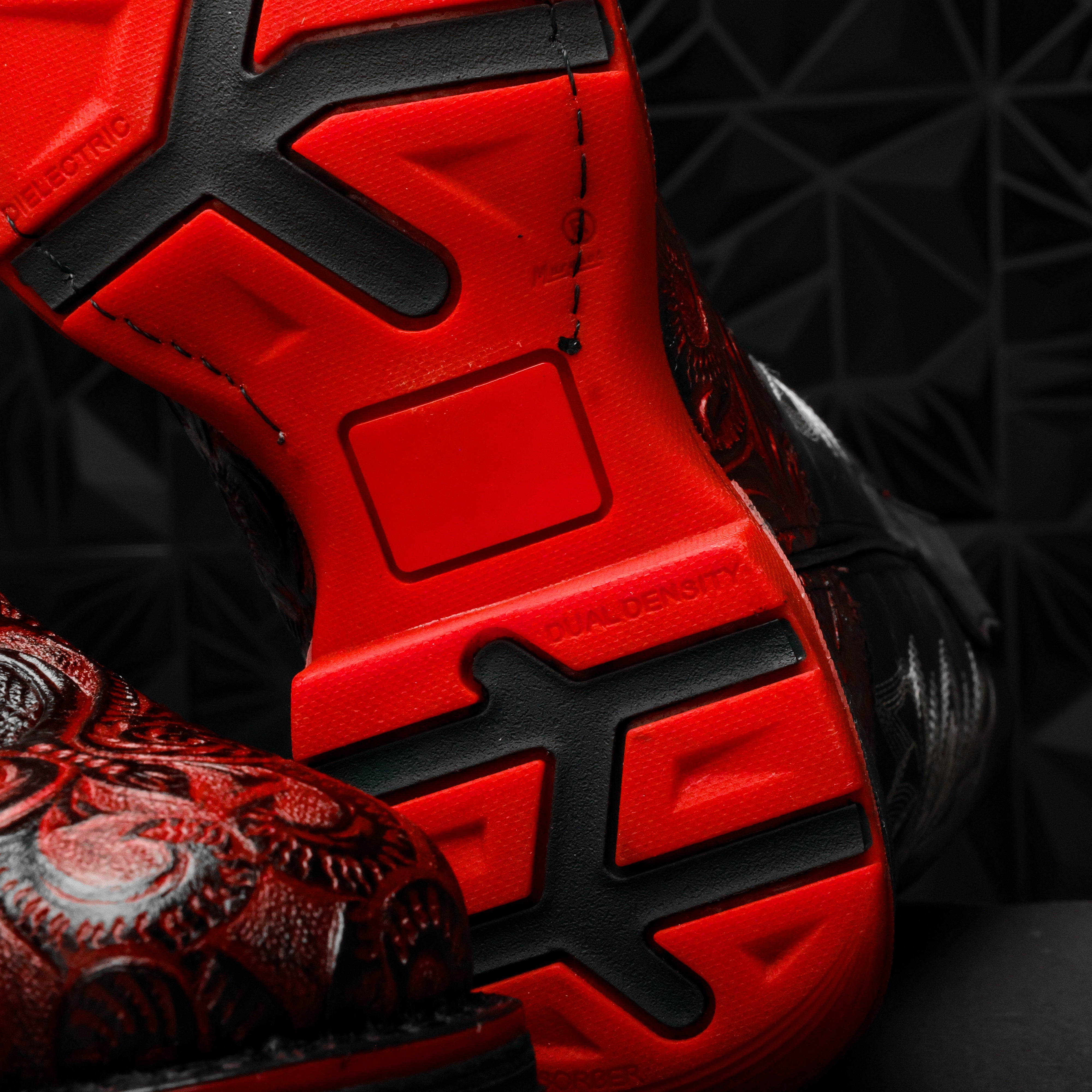Black Cherry Hand-Tooled Leather Boots With 3D Lightweight Sole - Composite Toe