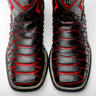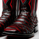 Black/Red Jumbo Python Leather Boots - Square Toe