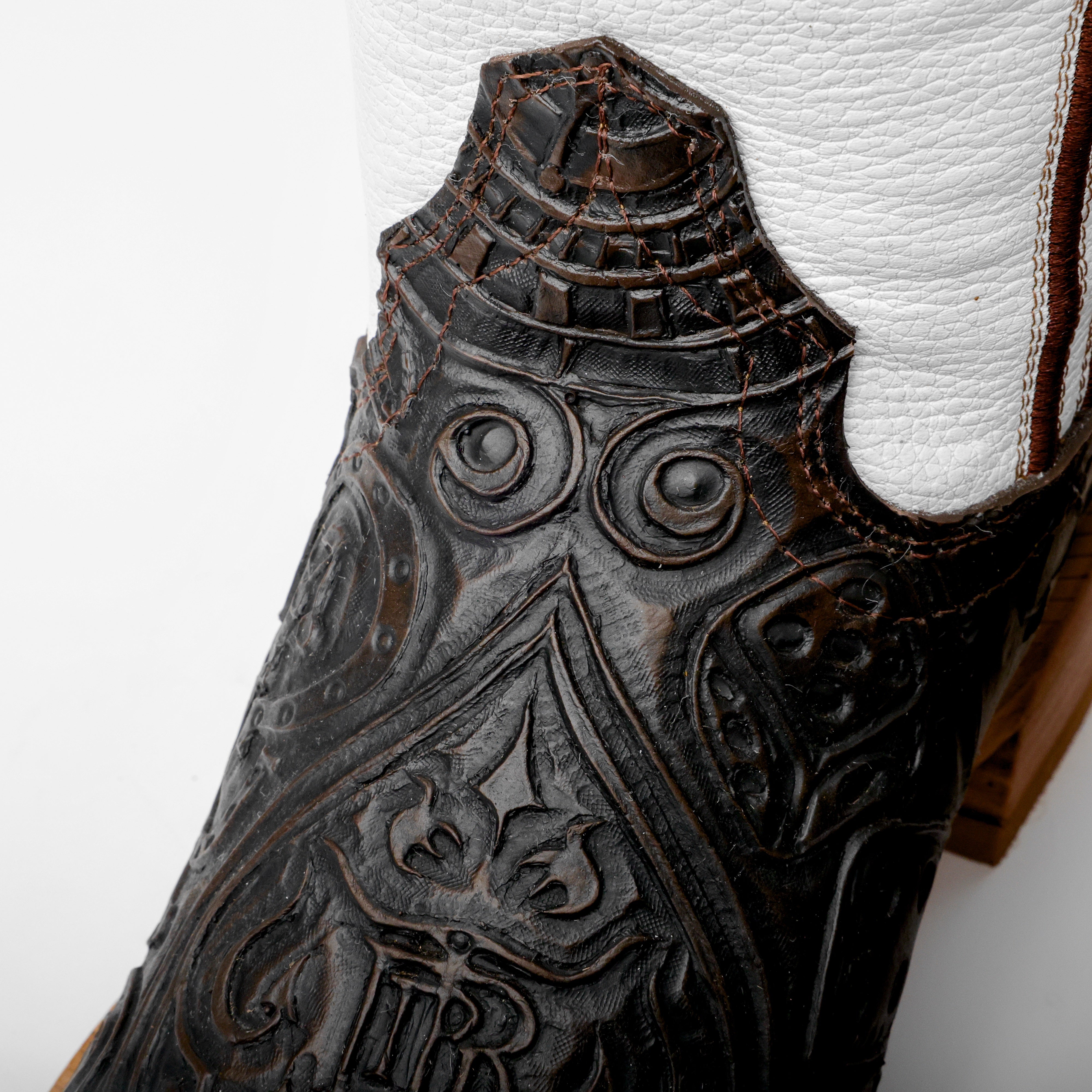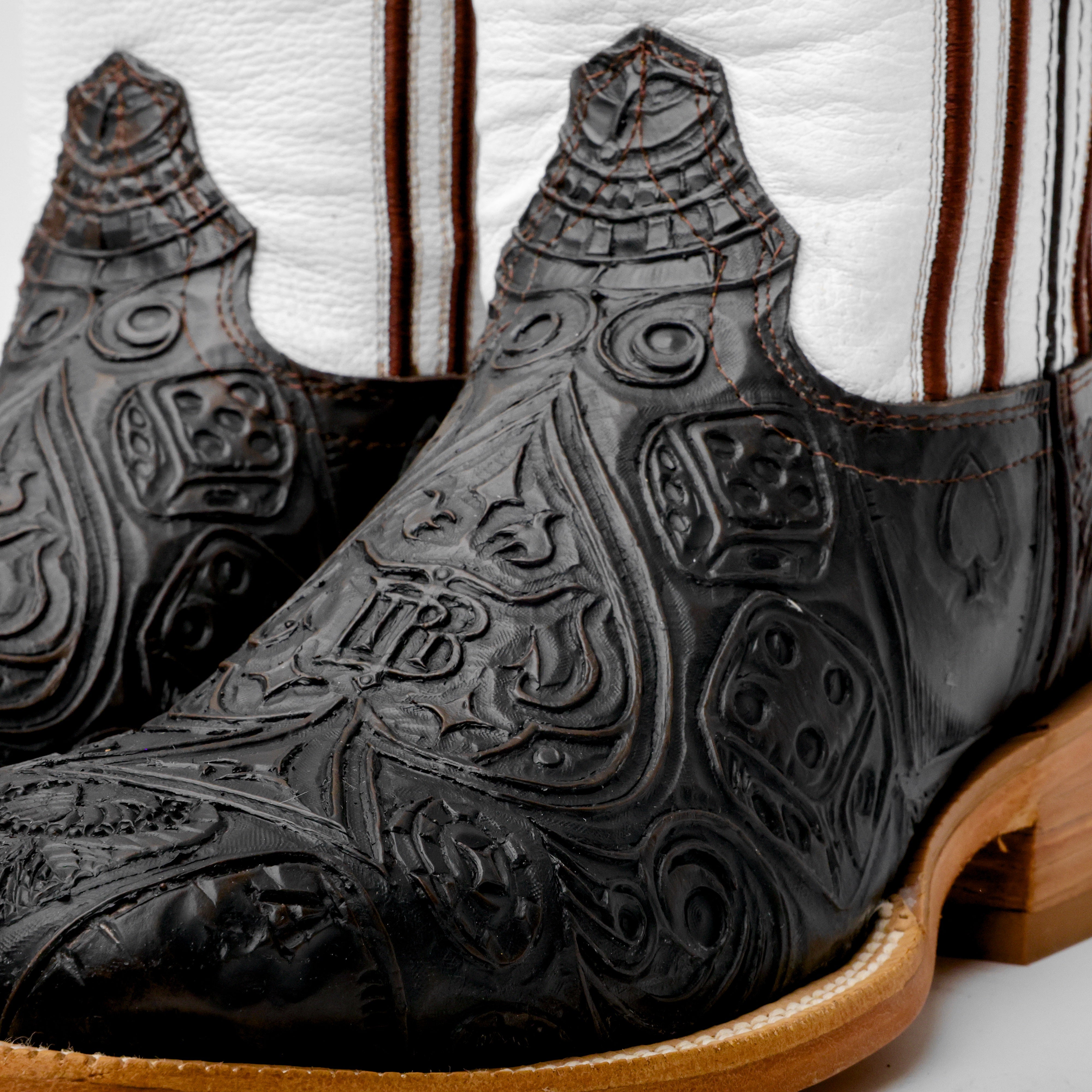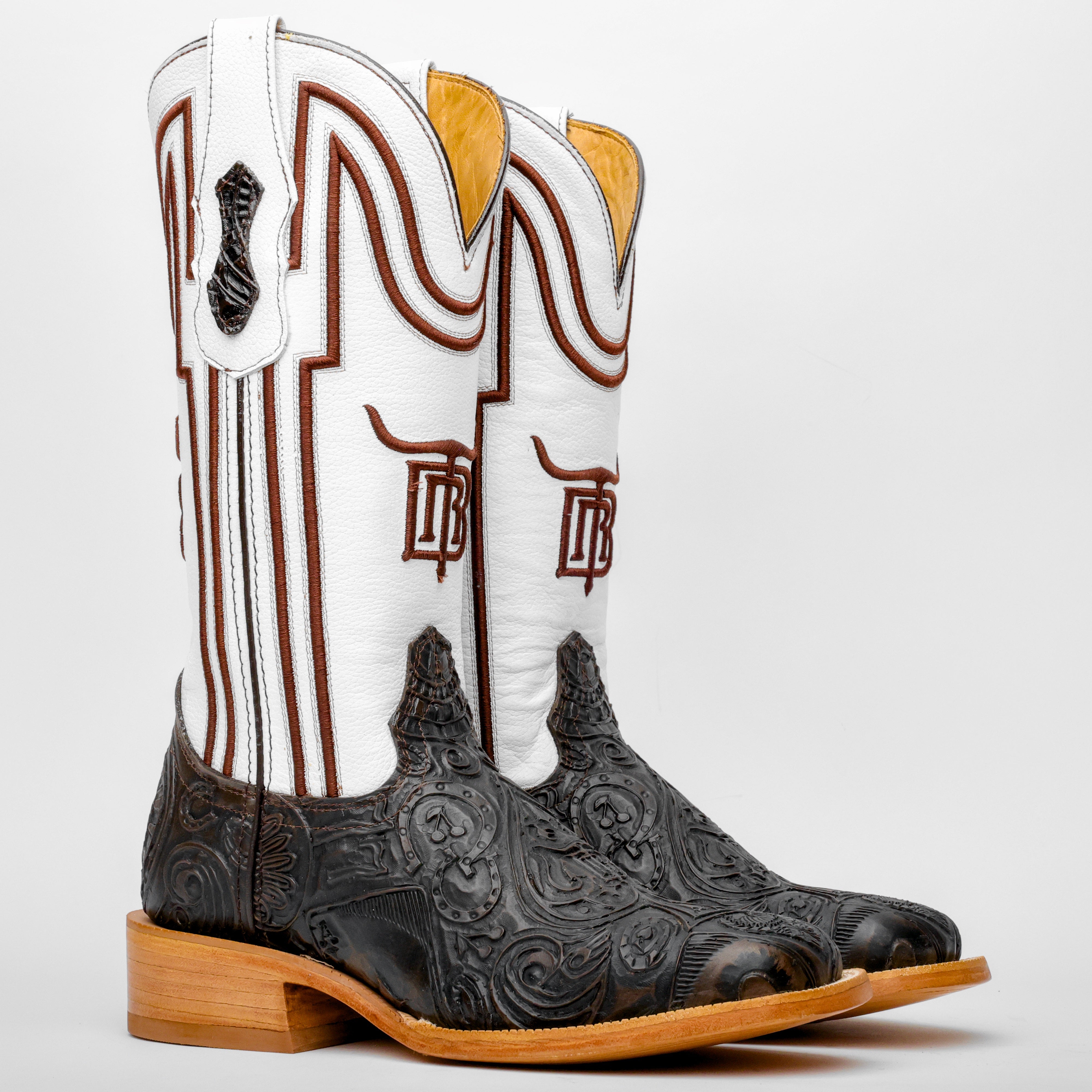 “Ace Of Spades” Chocolate Brown Leather Boots - Square Toe