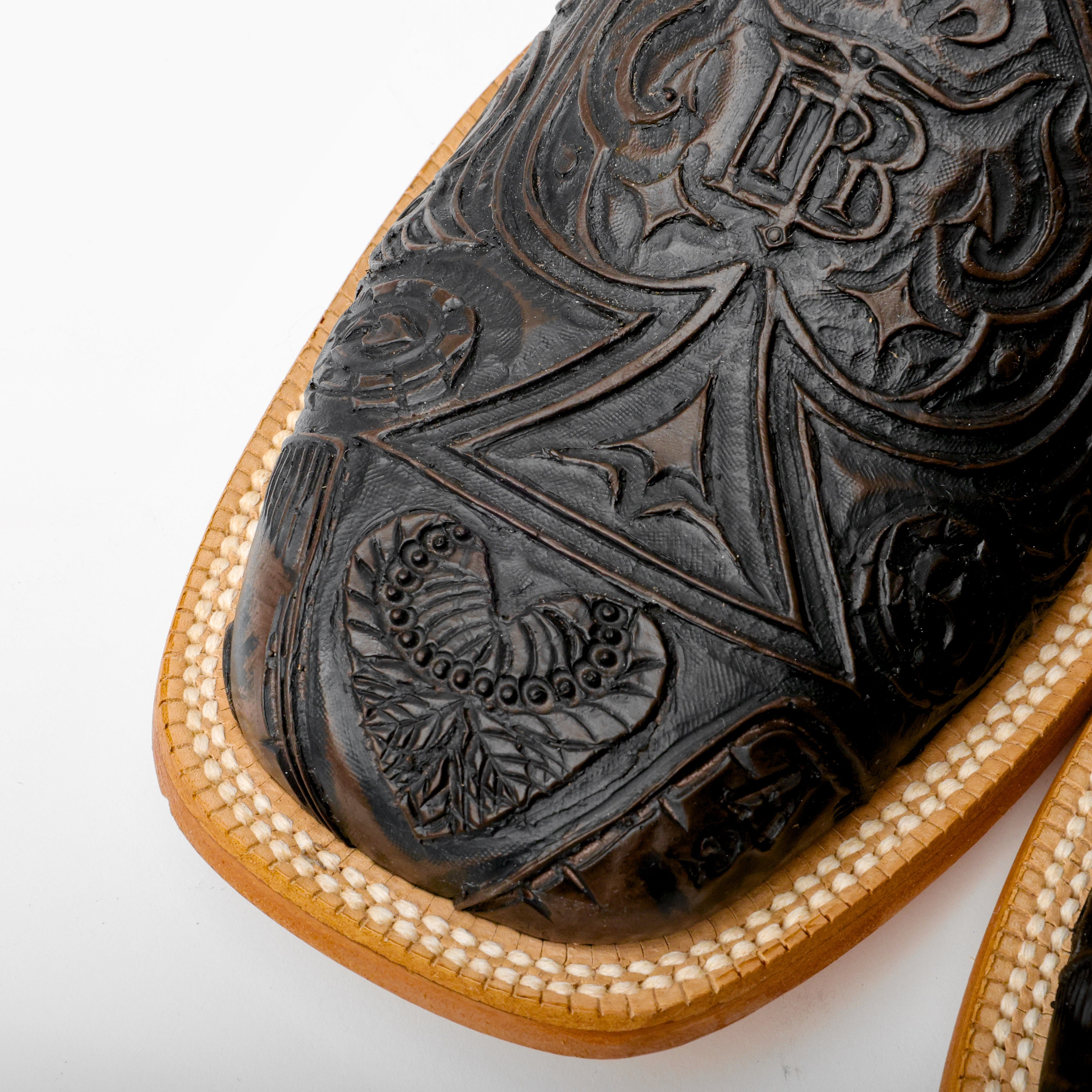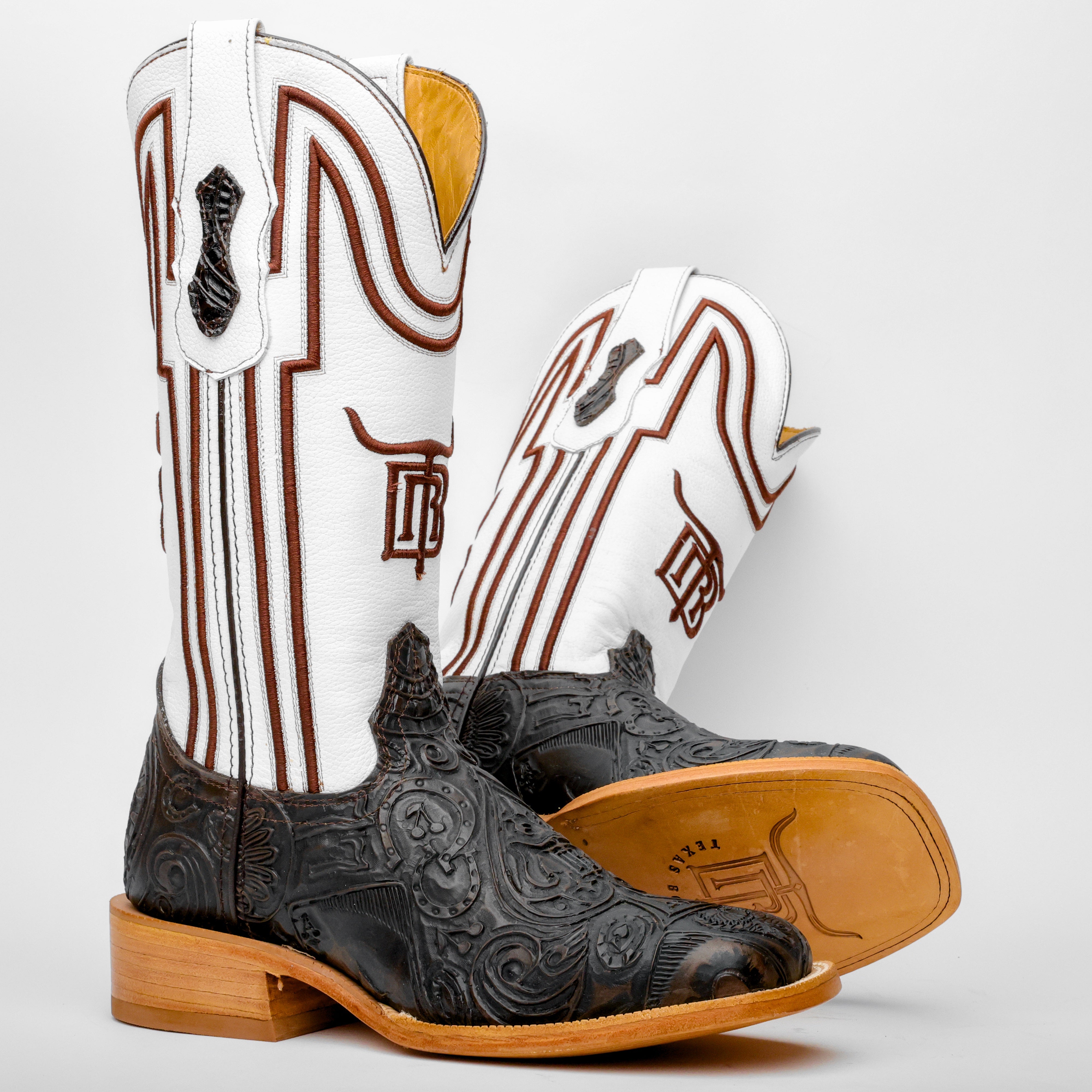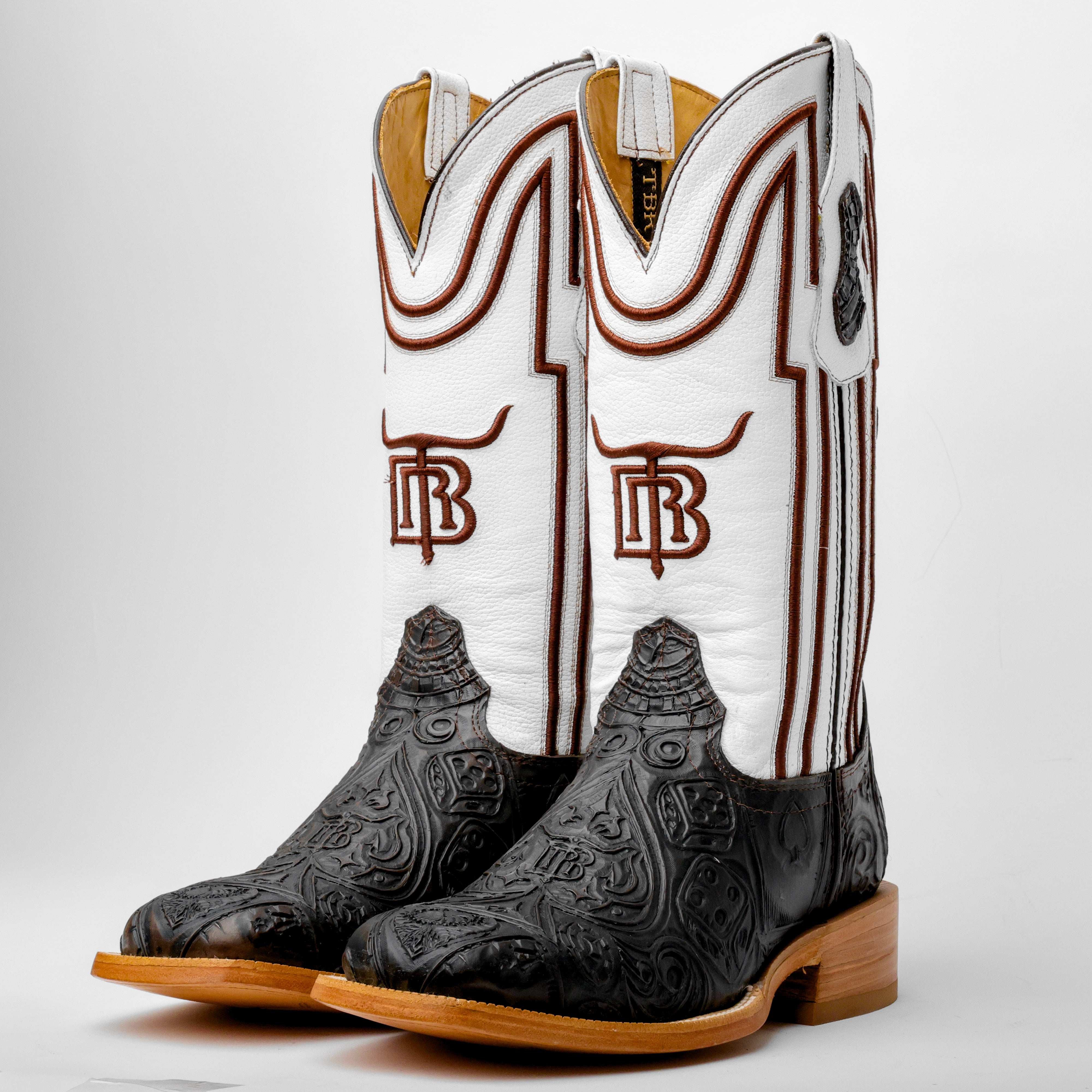 “Ace Of Spades” Chocolate Brown Leather Boots - Square Toe