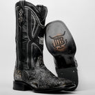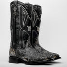 “Ace Of Spades” Grey/Black Leather Boots - Square Toe