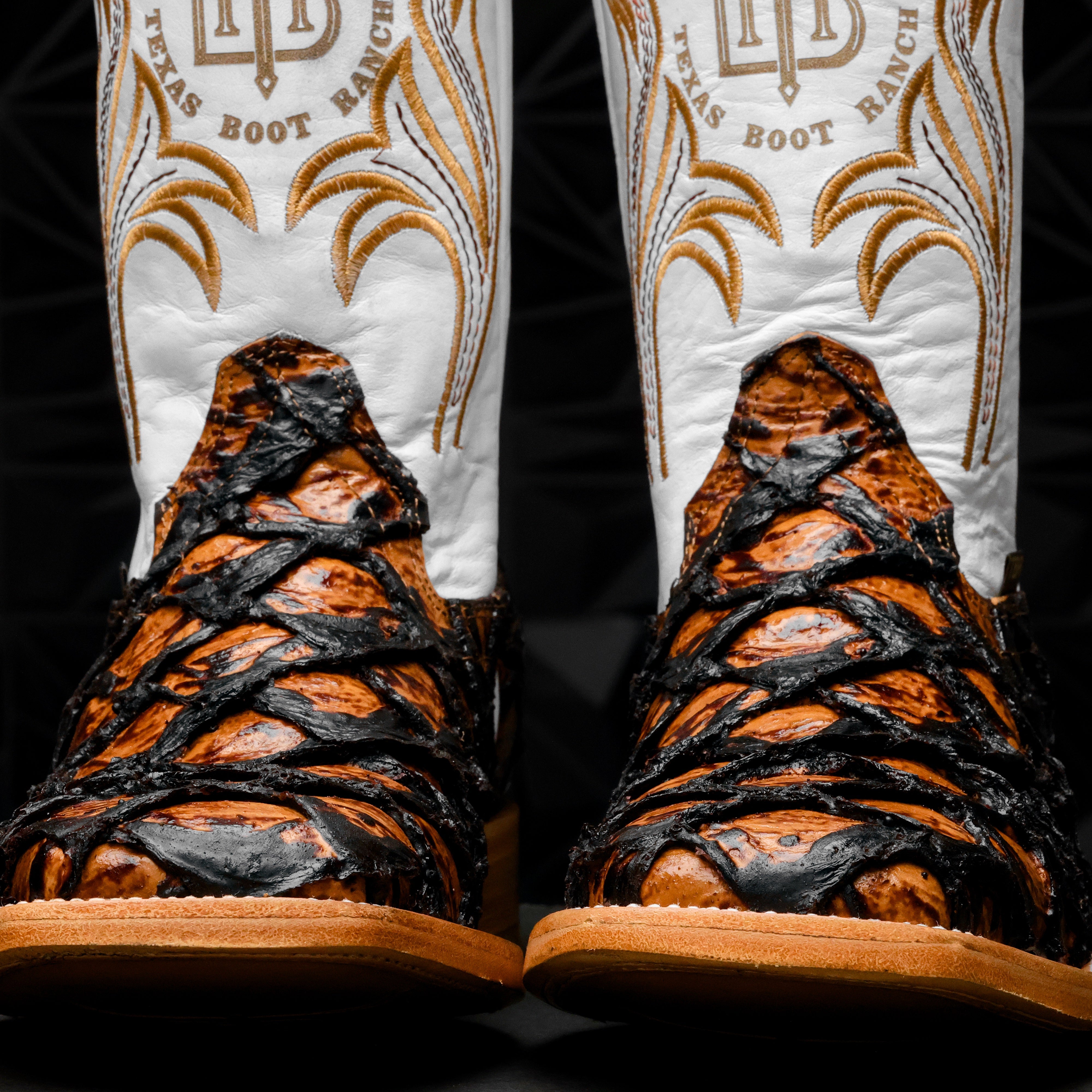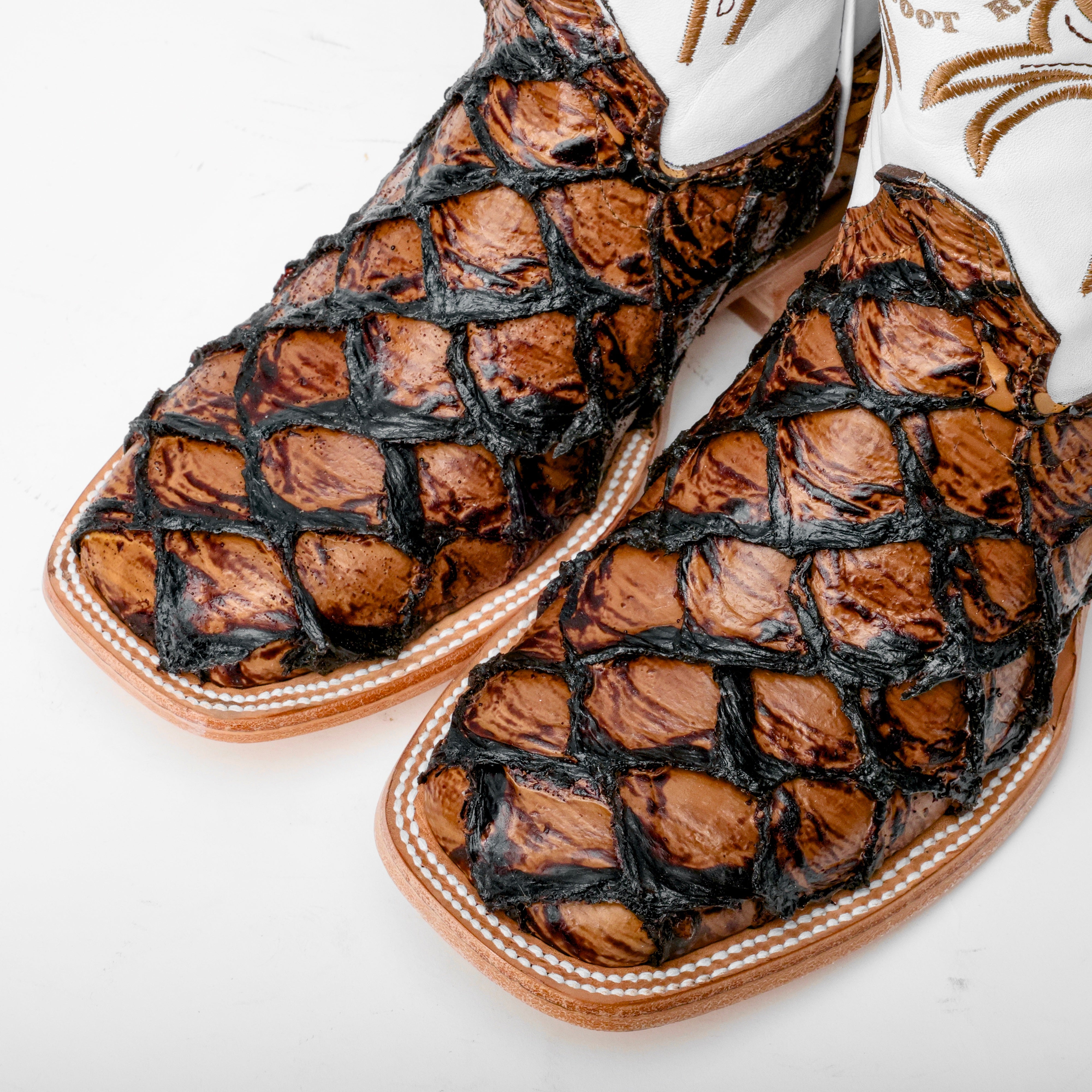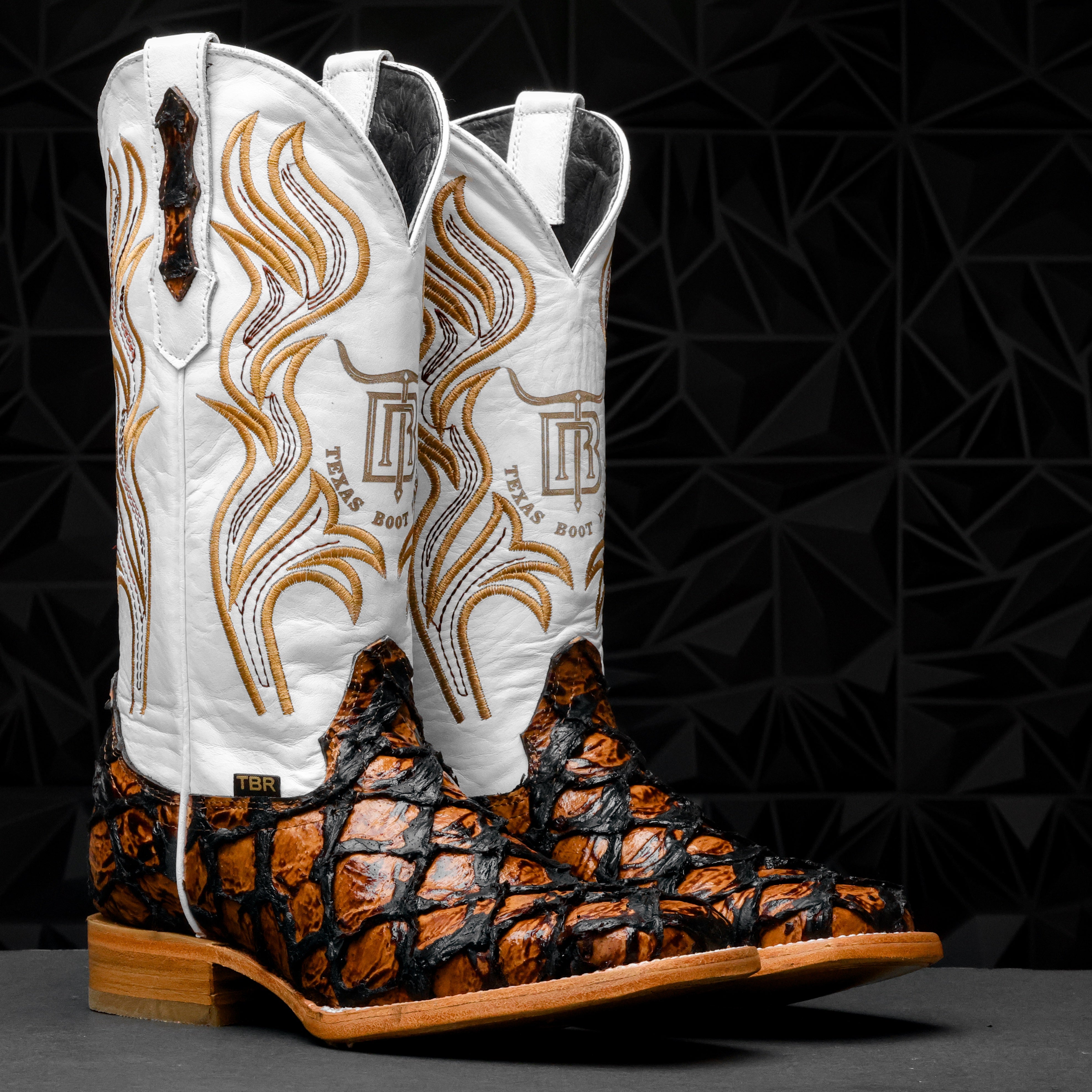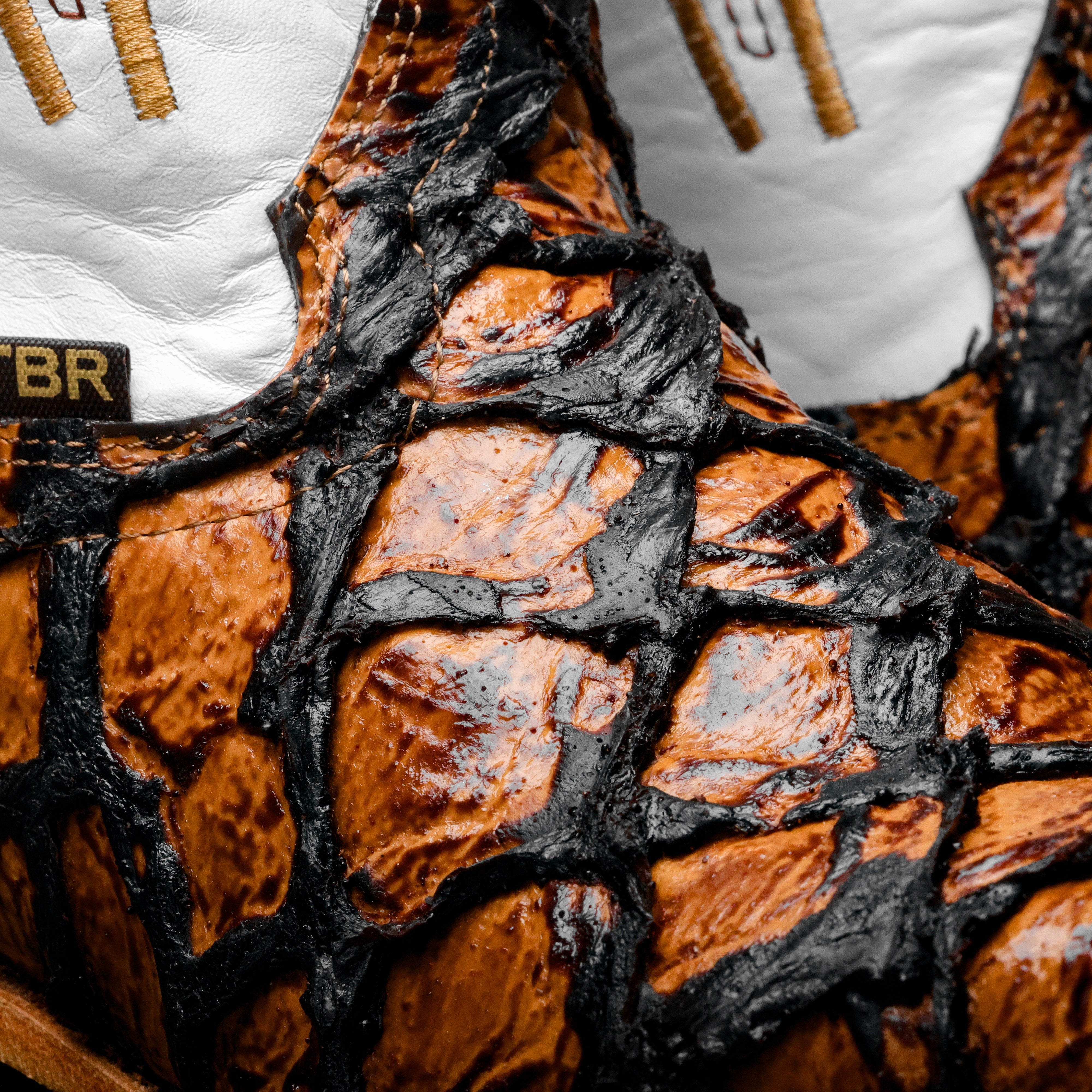 Honey Cognac Jumbo Pirarucu Leather Boots - Square Toe