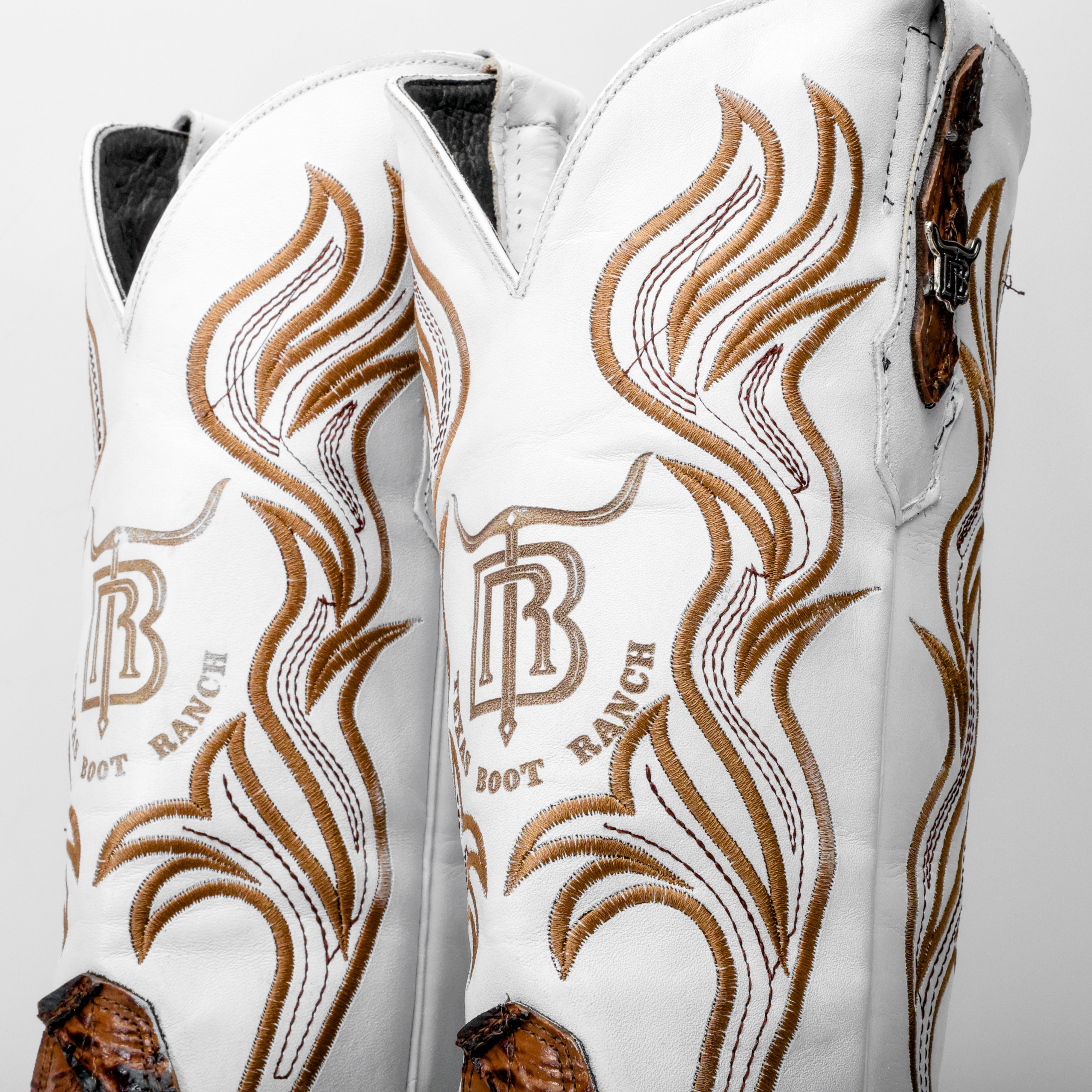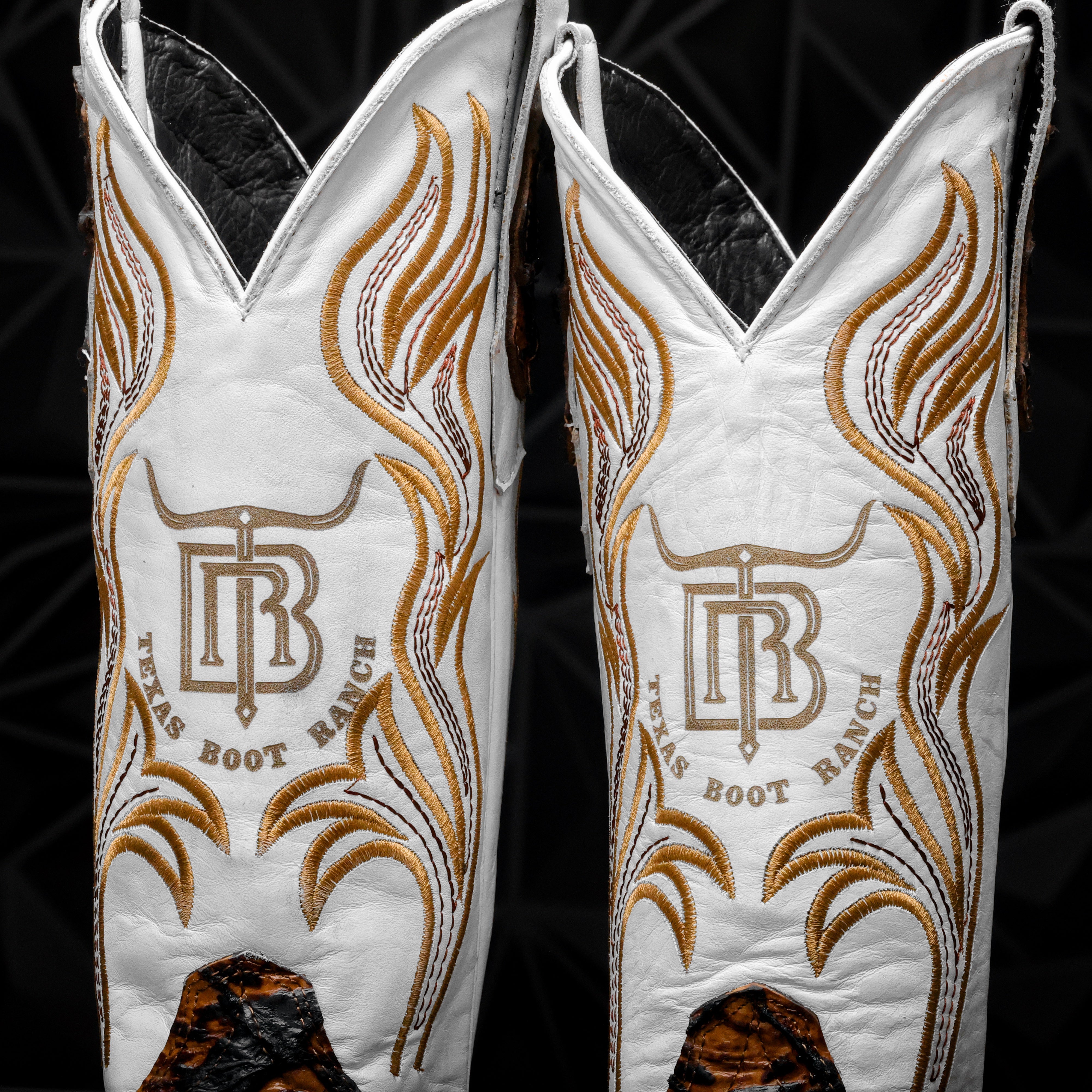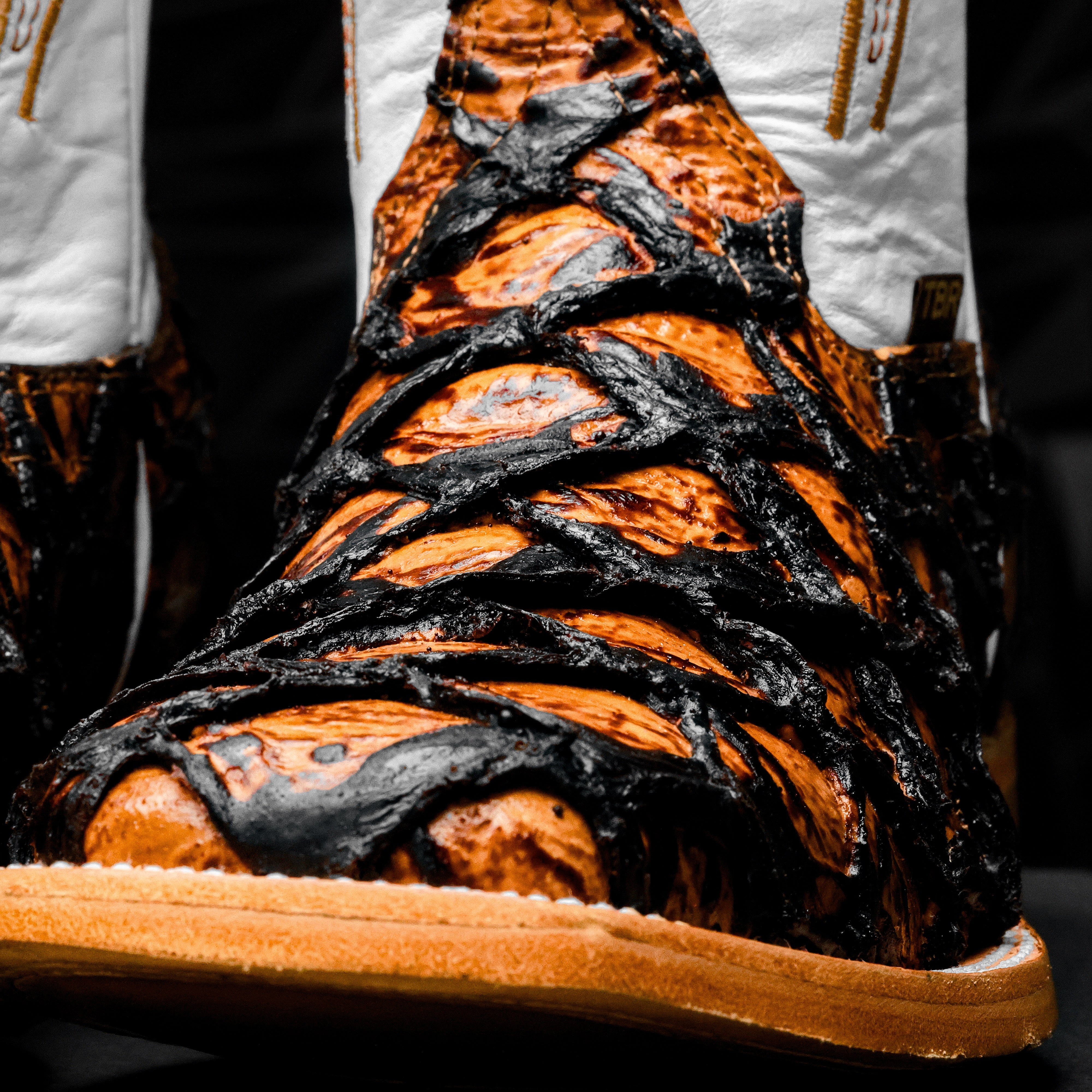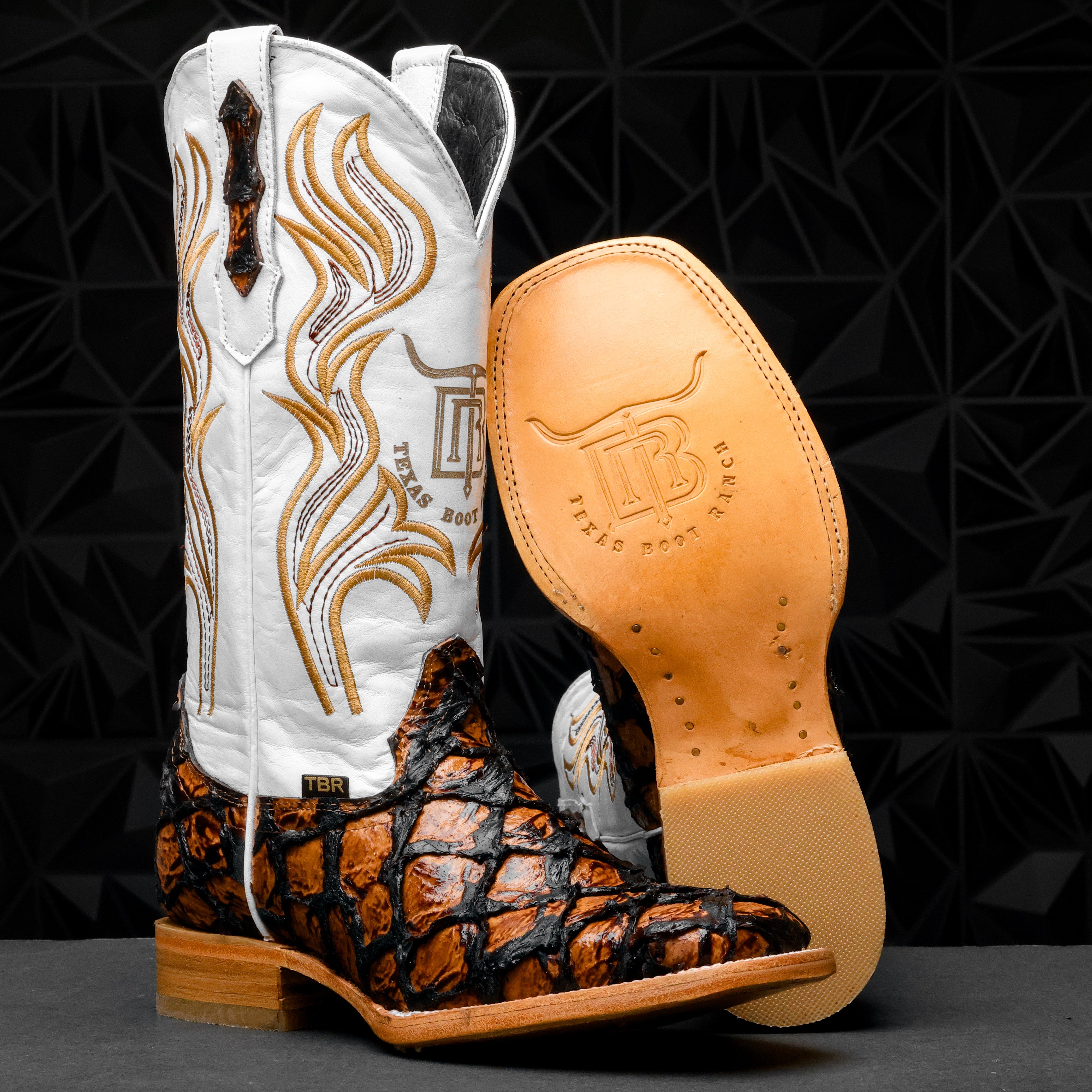 Honey Cognac Jumbo Pirarucu Leather Boots - Square Toe