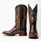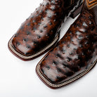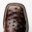 Chocolate Brown Ostrich Leather Boots - Square Toe