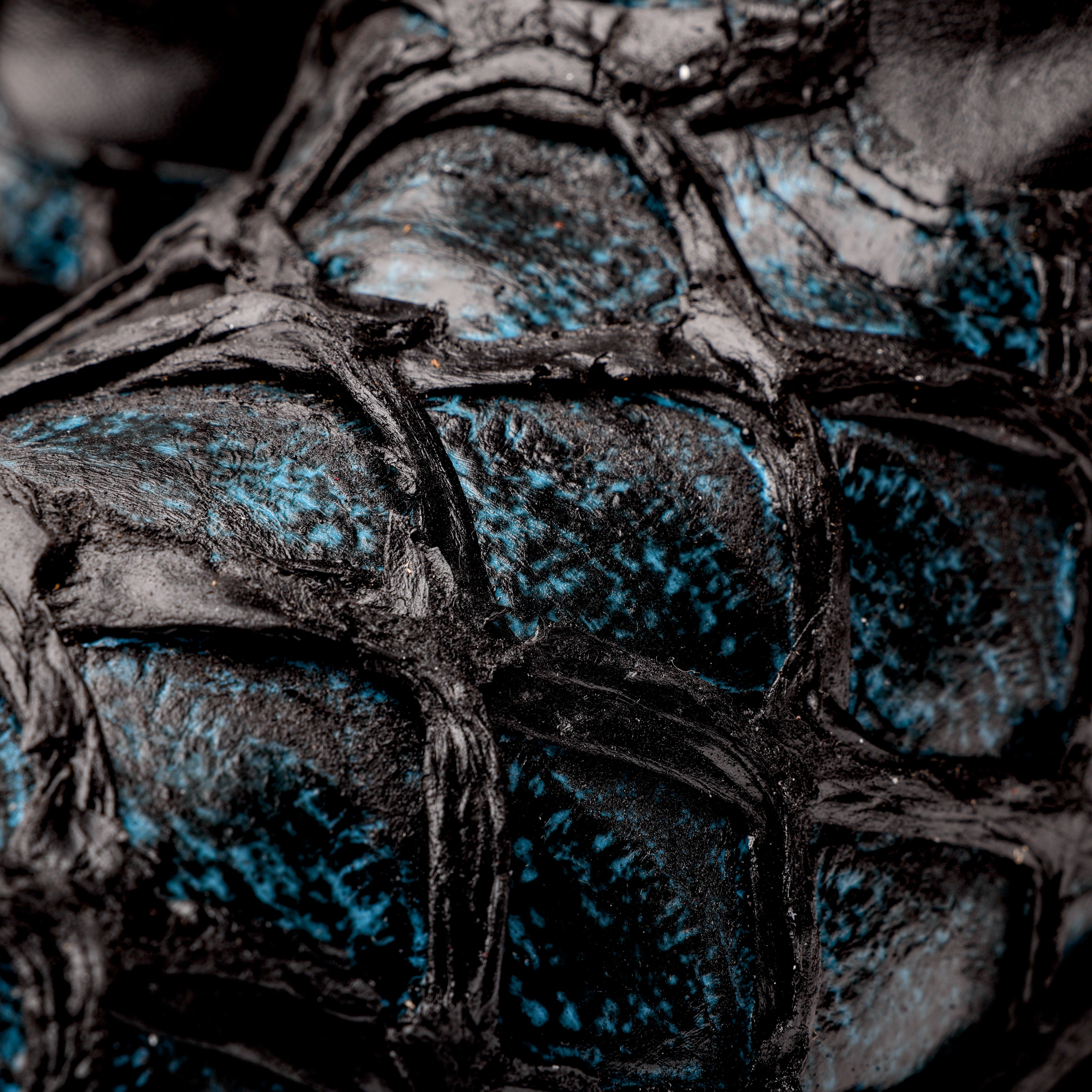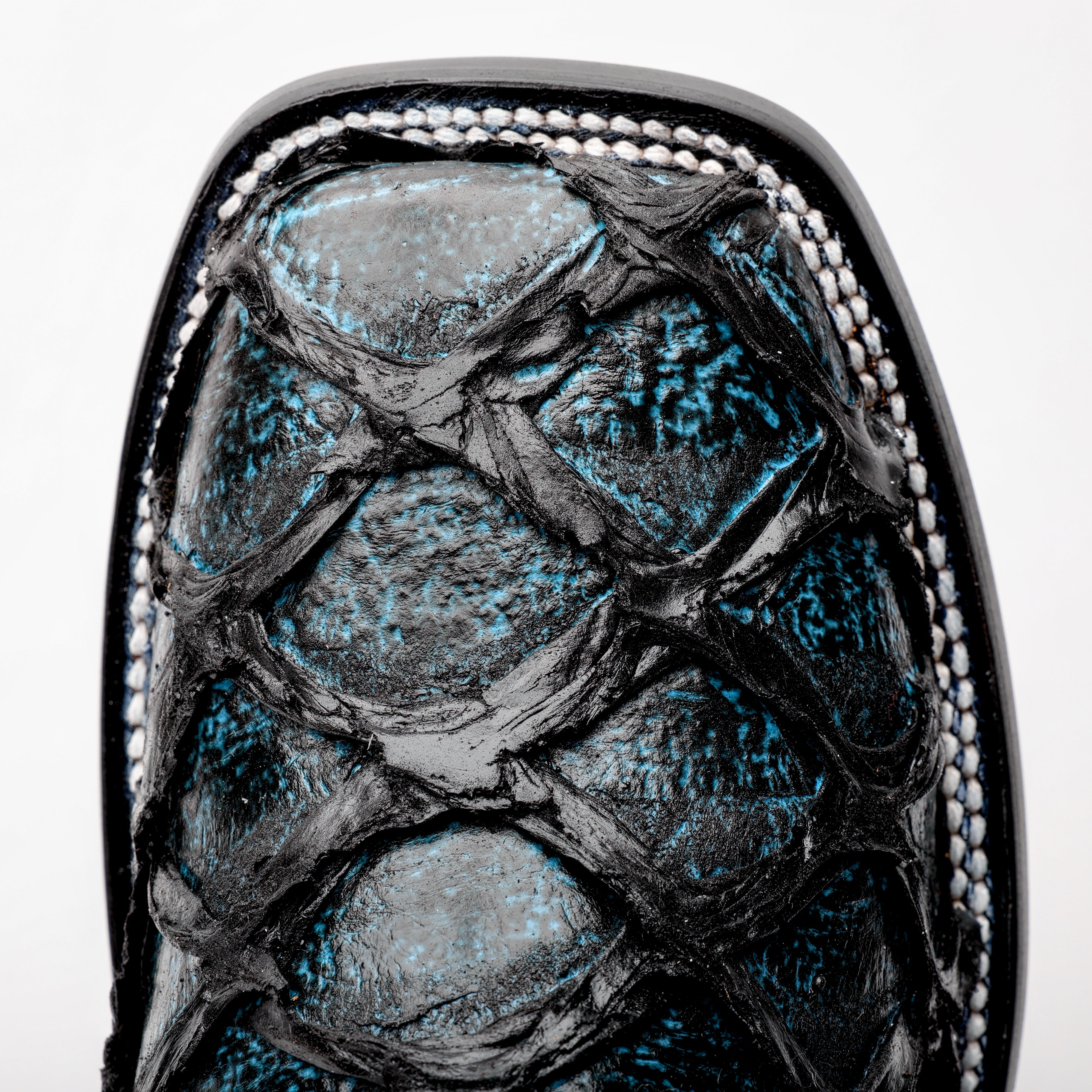 Midnight Blue Jumbo Pirarucu Leather Boots - Square Toe