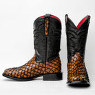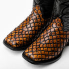 Honey Cognac Mini Pirarucu Leather Boots - Square Toe