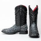 Rustic Grey Jumbo Python Leather Boots - Square Toe