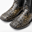 Desert Rustic Caiman Neck Leather Boots - Square Toe