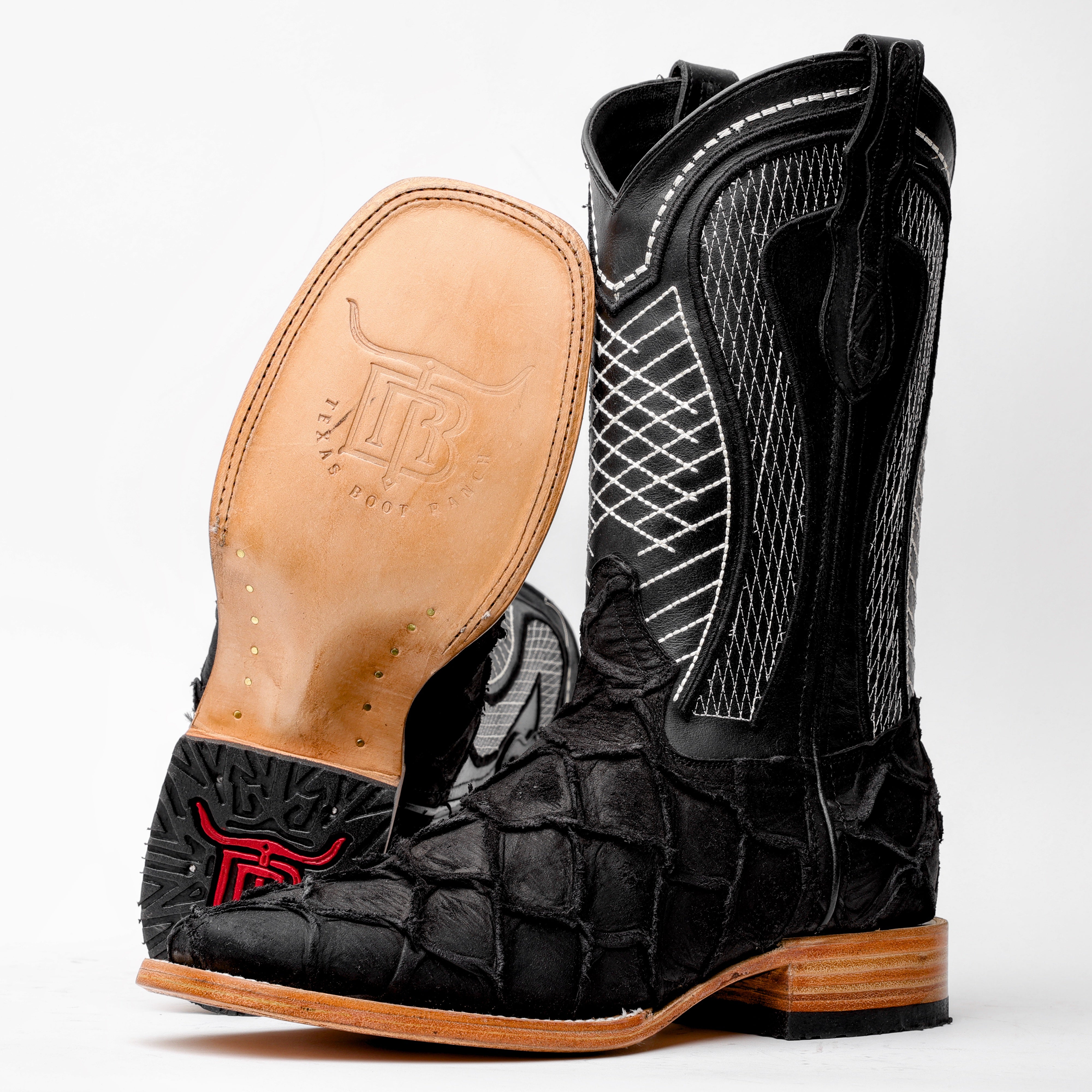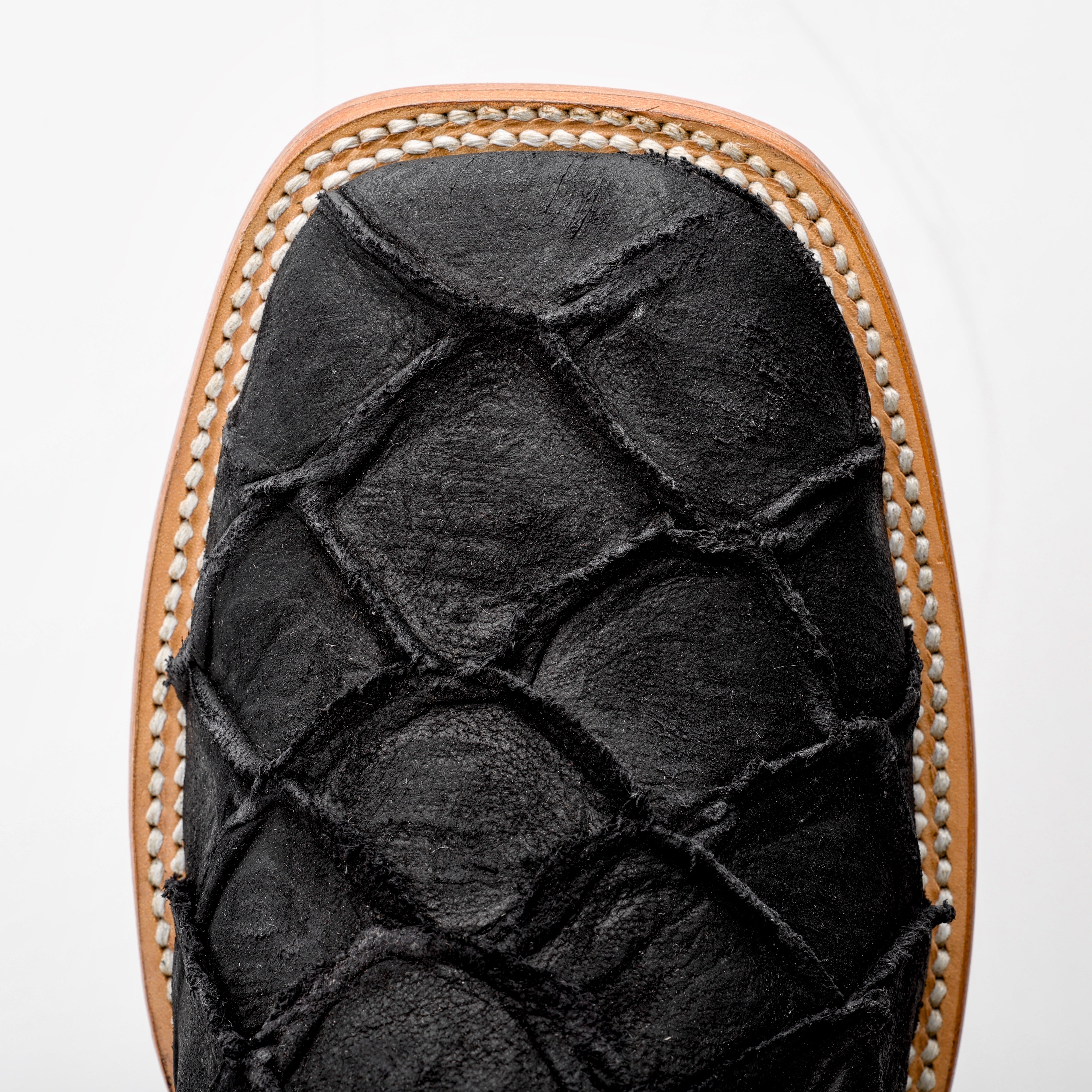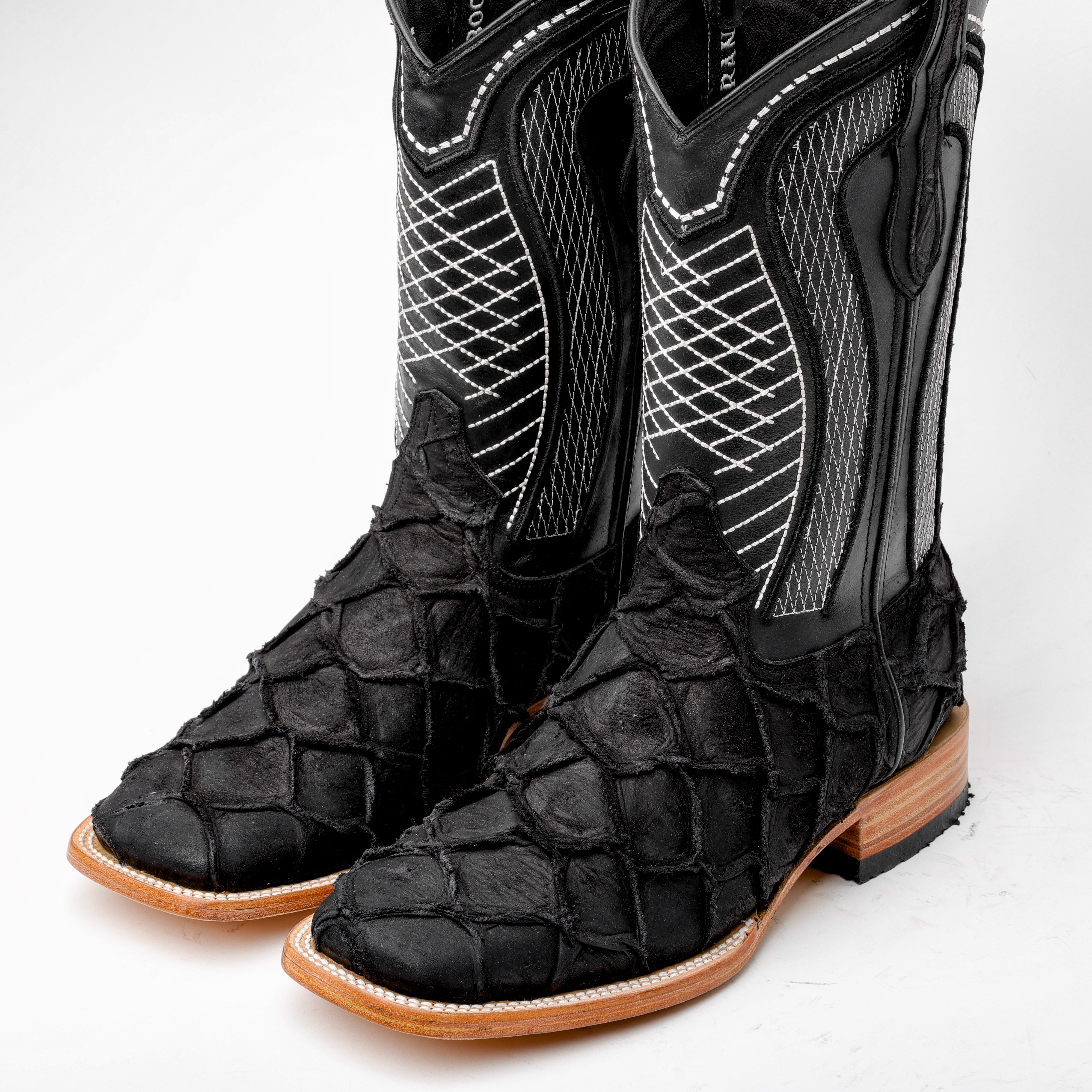 Rustic Matte Black Pirarucu Leather Boots - Square Toe