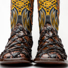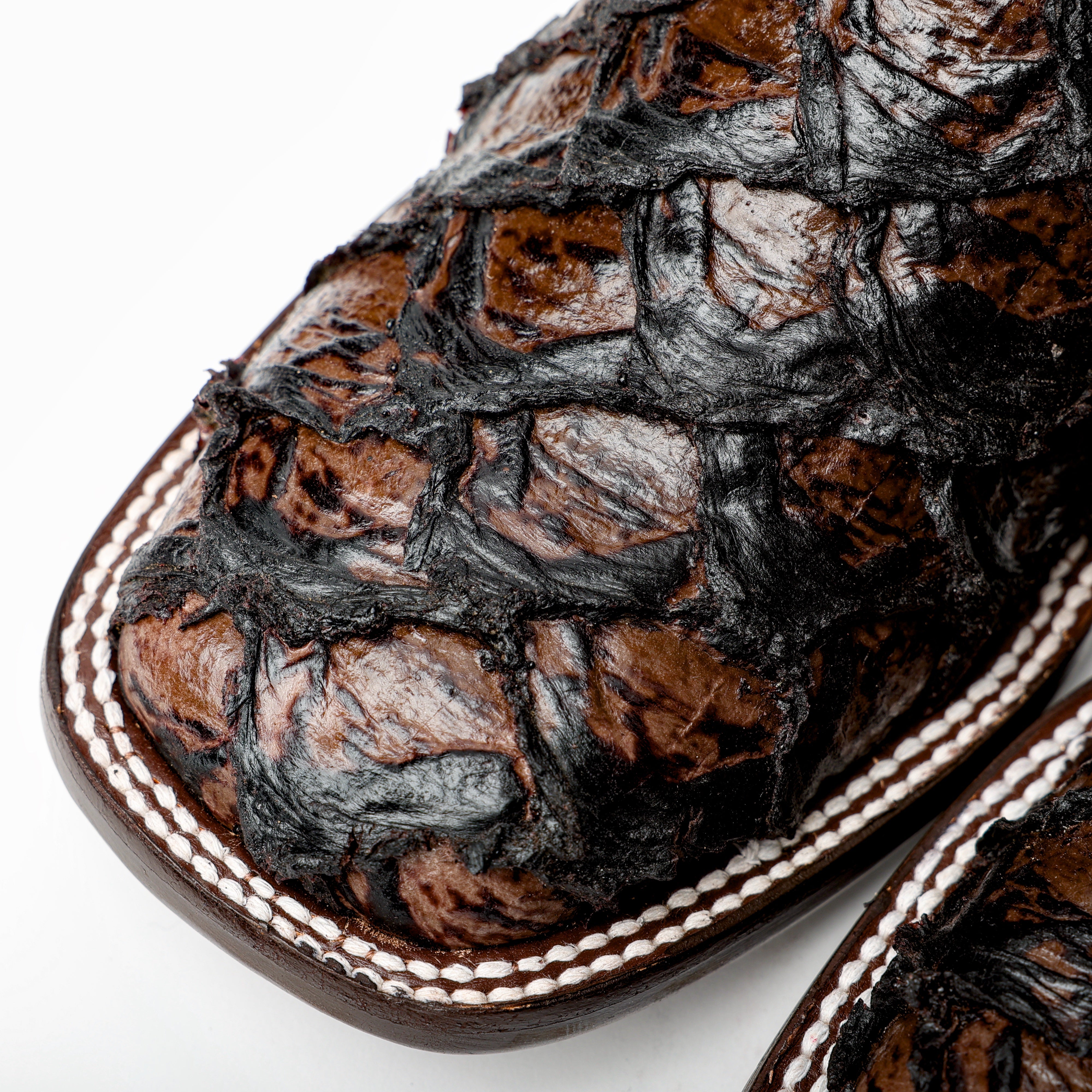 Brown Jumbo Pirarucu Leather Boots - Square Toe