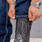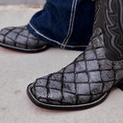 Midnight Grey Pirarucu Leather Boots - Square Toe