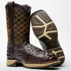 Brown Caiman Neck Leather Boots With 3D Lightweight Sole - Composite Toe