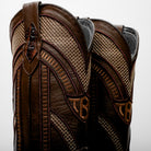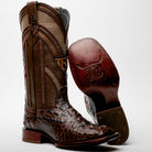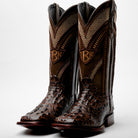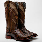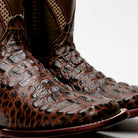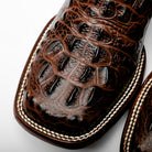 Brown Caiman Neck Leather Boots - Square Toe