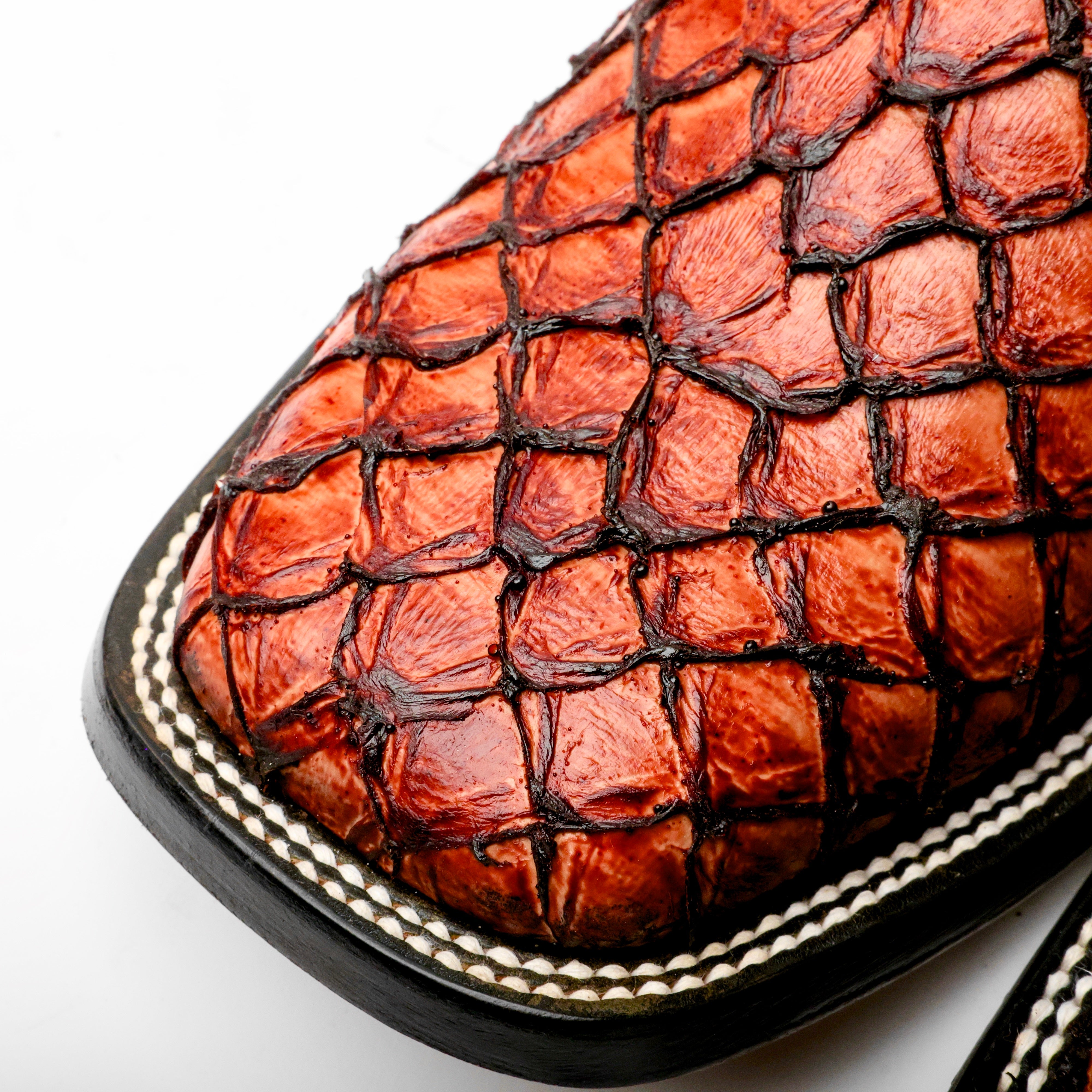 Cognac Mini Pirarucu Leather Boots - Square Toe
