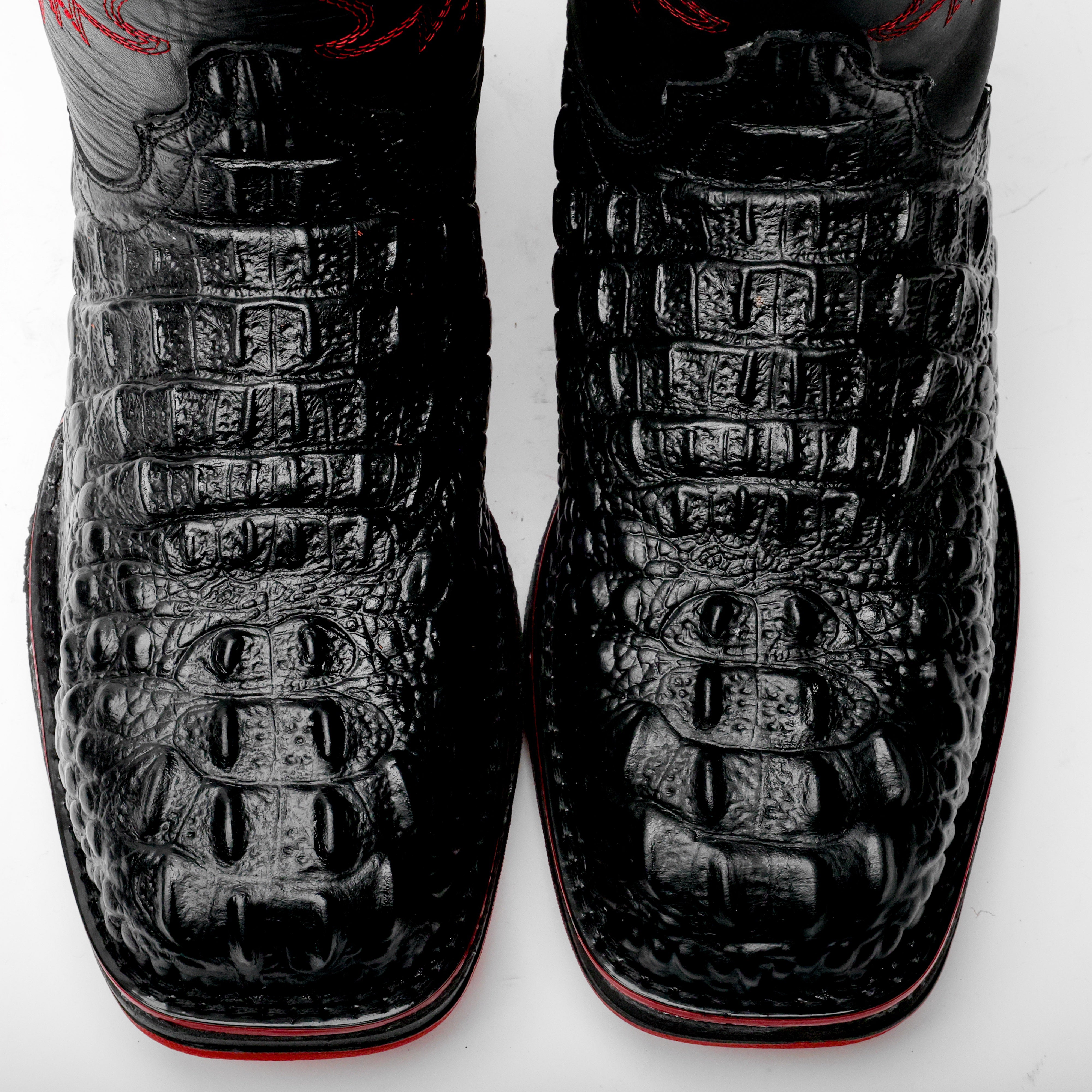 Black Caiman Neck Leather Boots With 3D Lightweight Sole - Composite Toe
