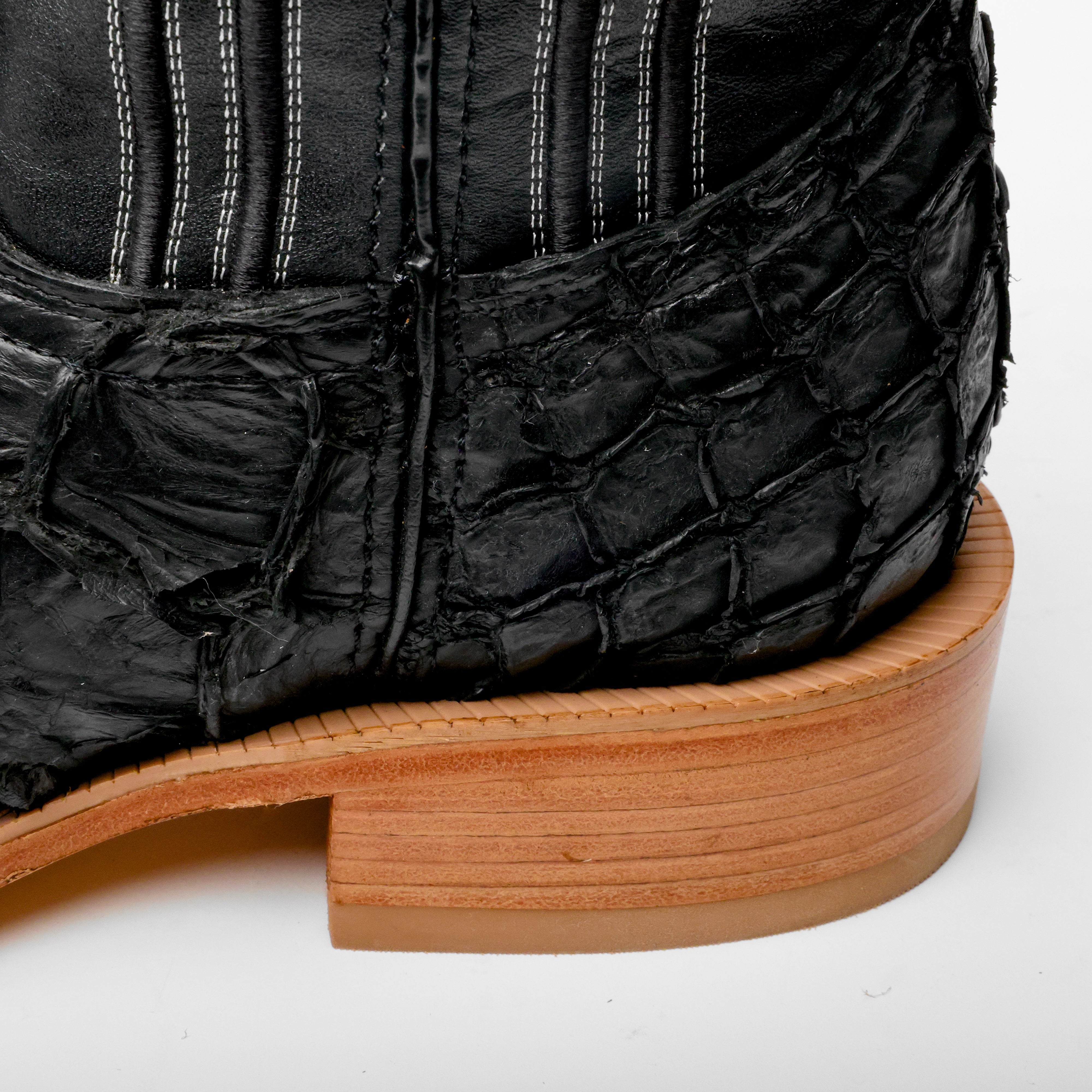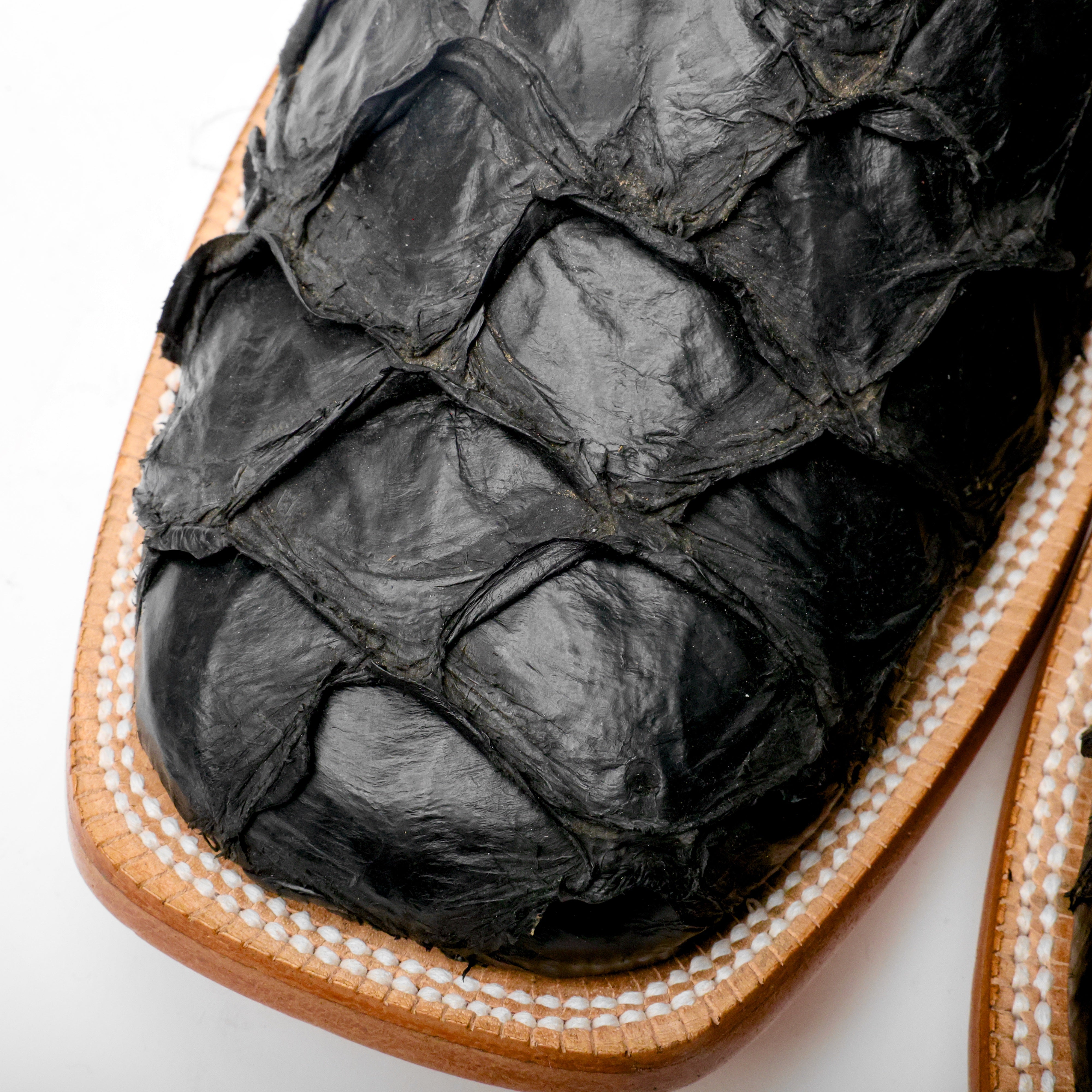 Matte Black Genuine Pirarucu Boots - Square Toe