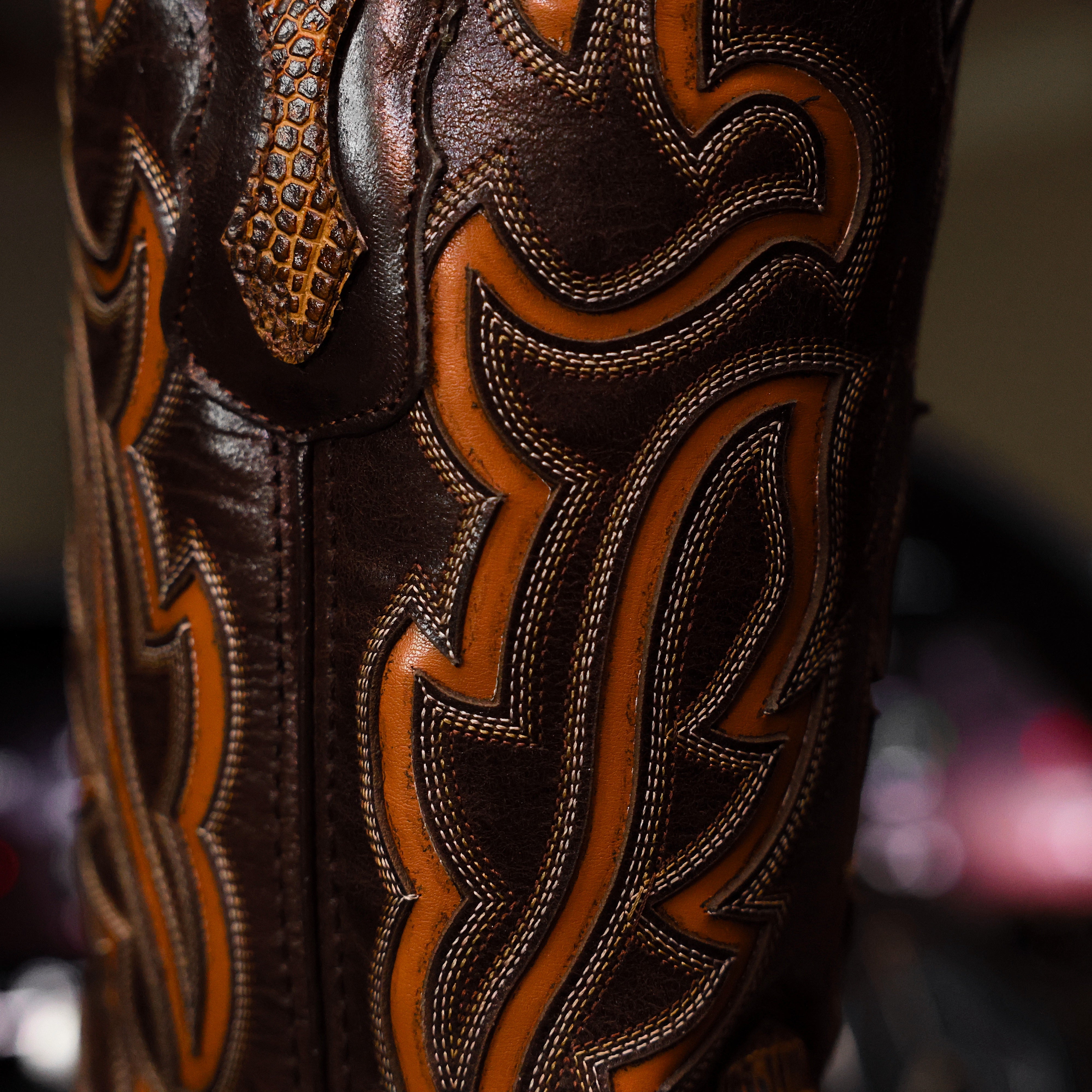 Honey Lizard Leather Boots - Square Toe