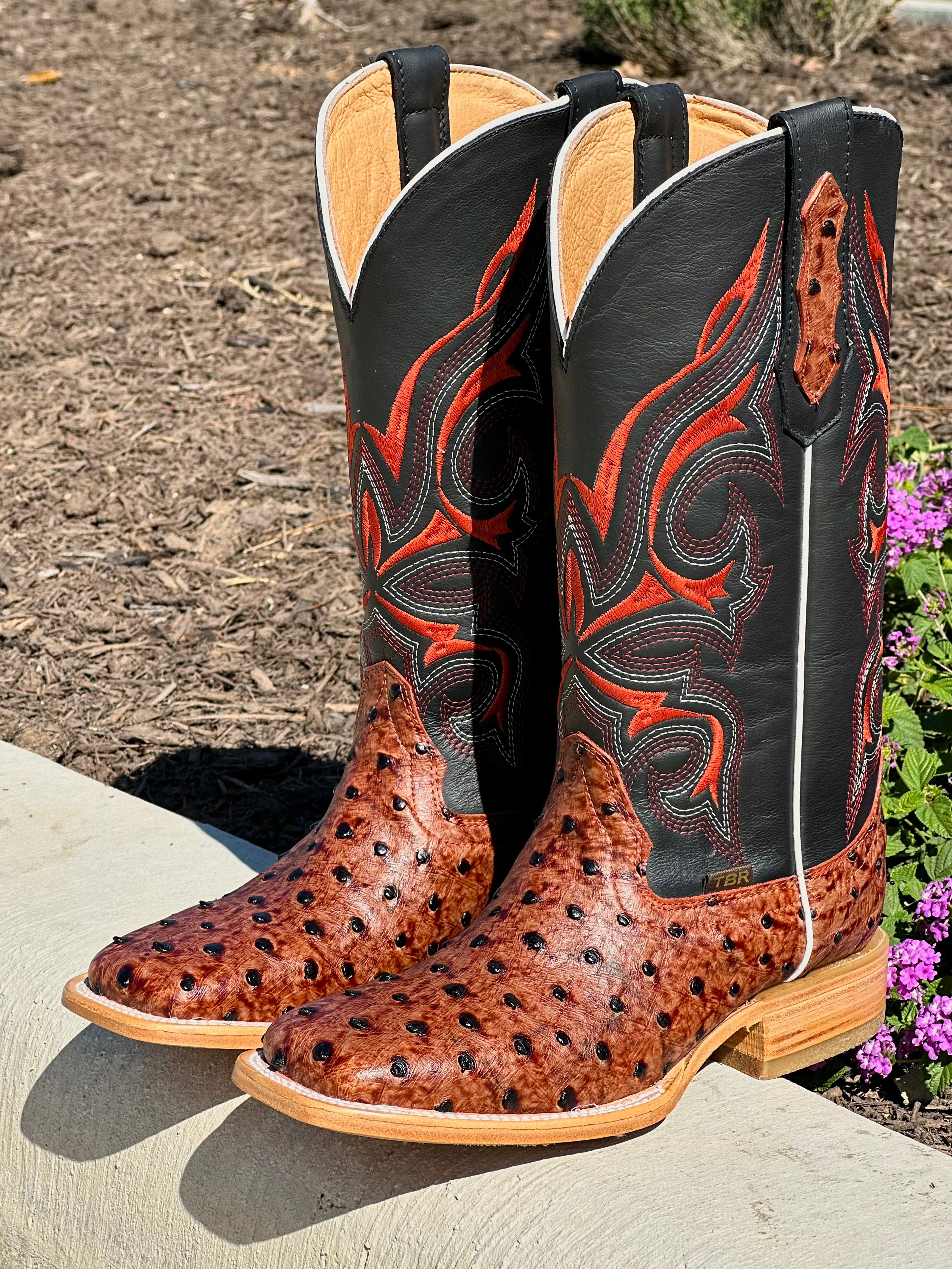 Men’s Cognac Ostrich Leather Boots With Black Shaft