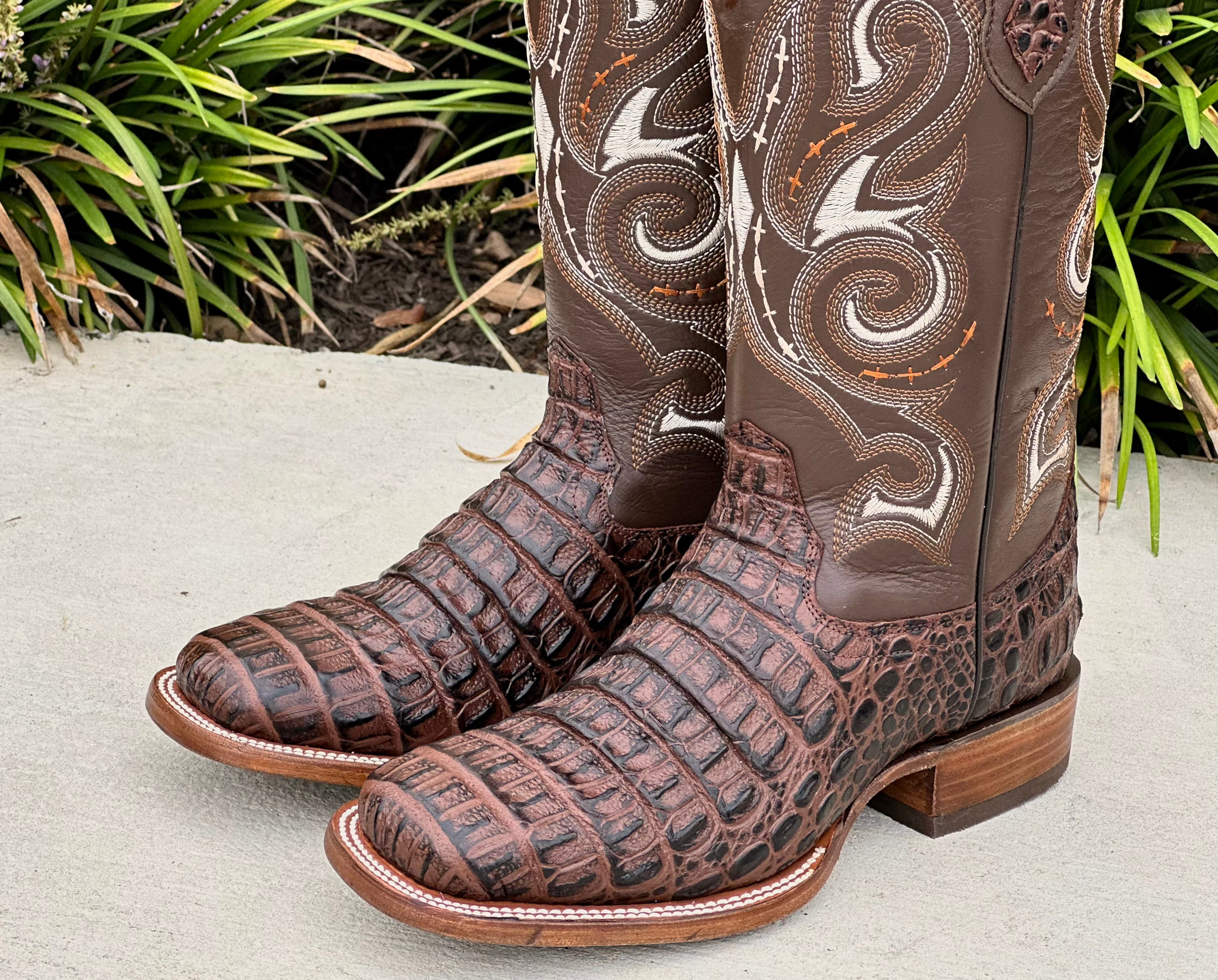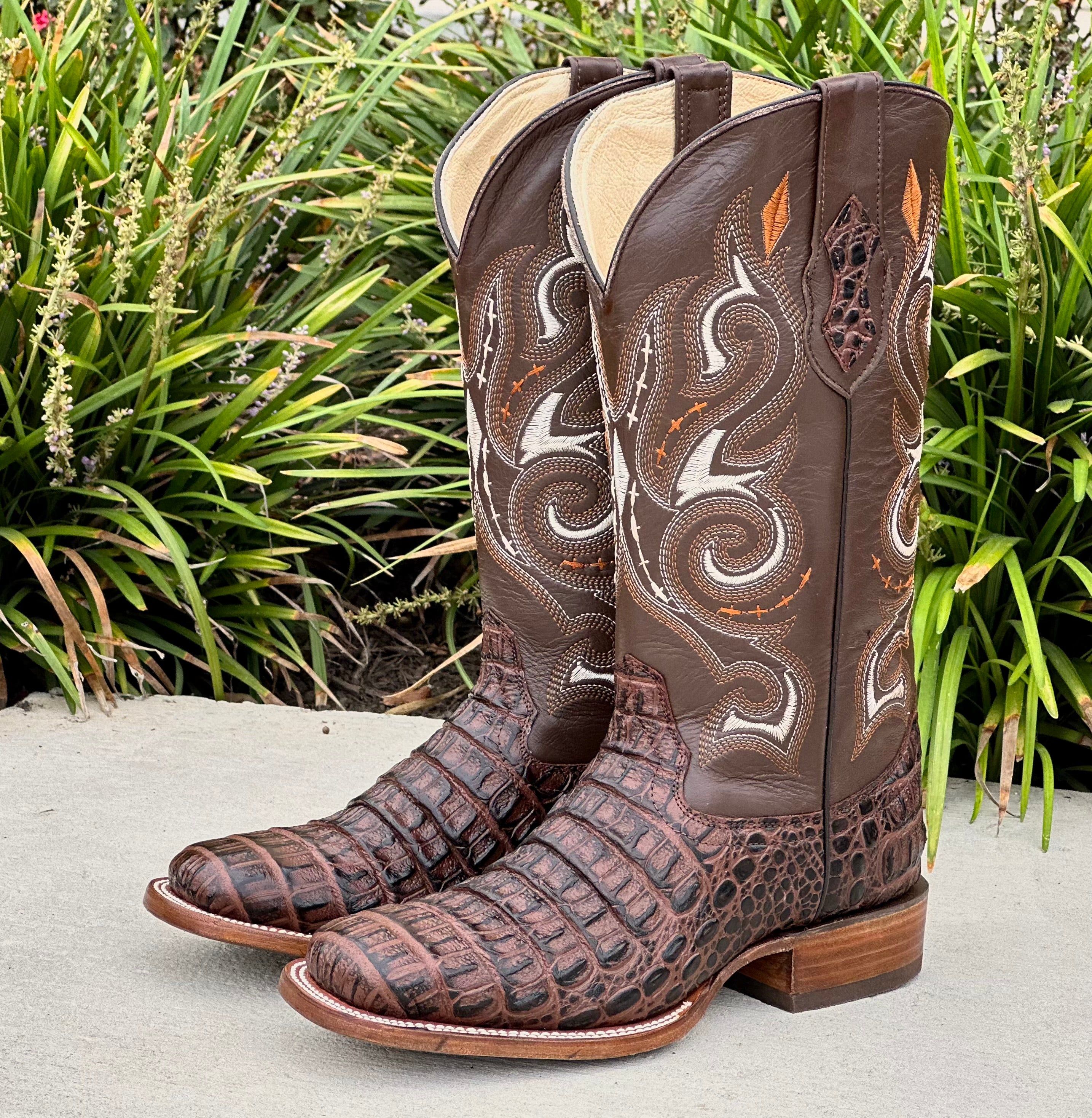 Mens Brown Horn-Back Leather Boots With Cream Shaft