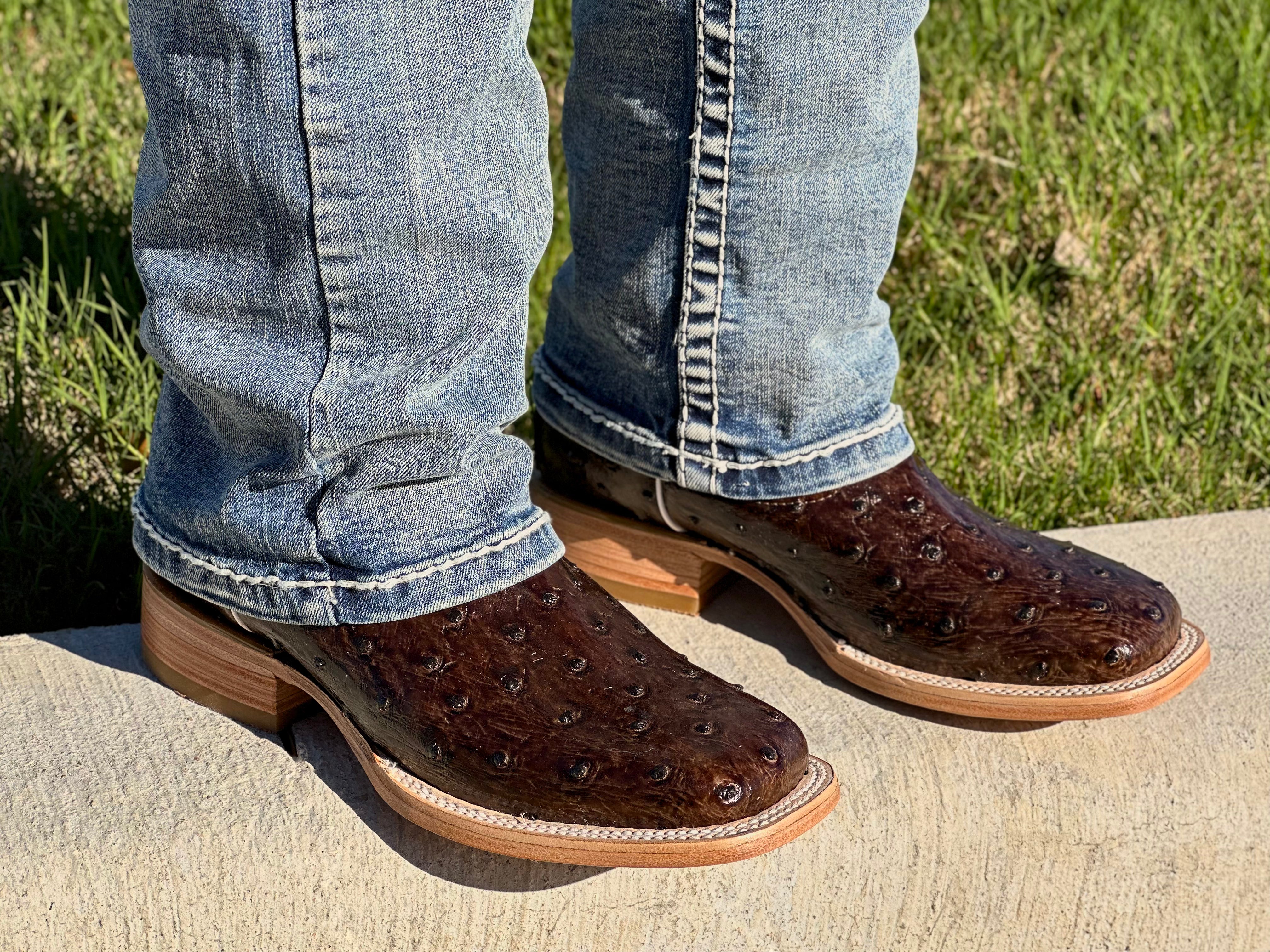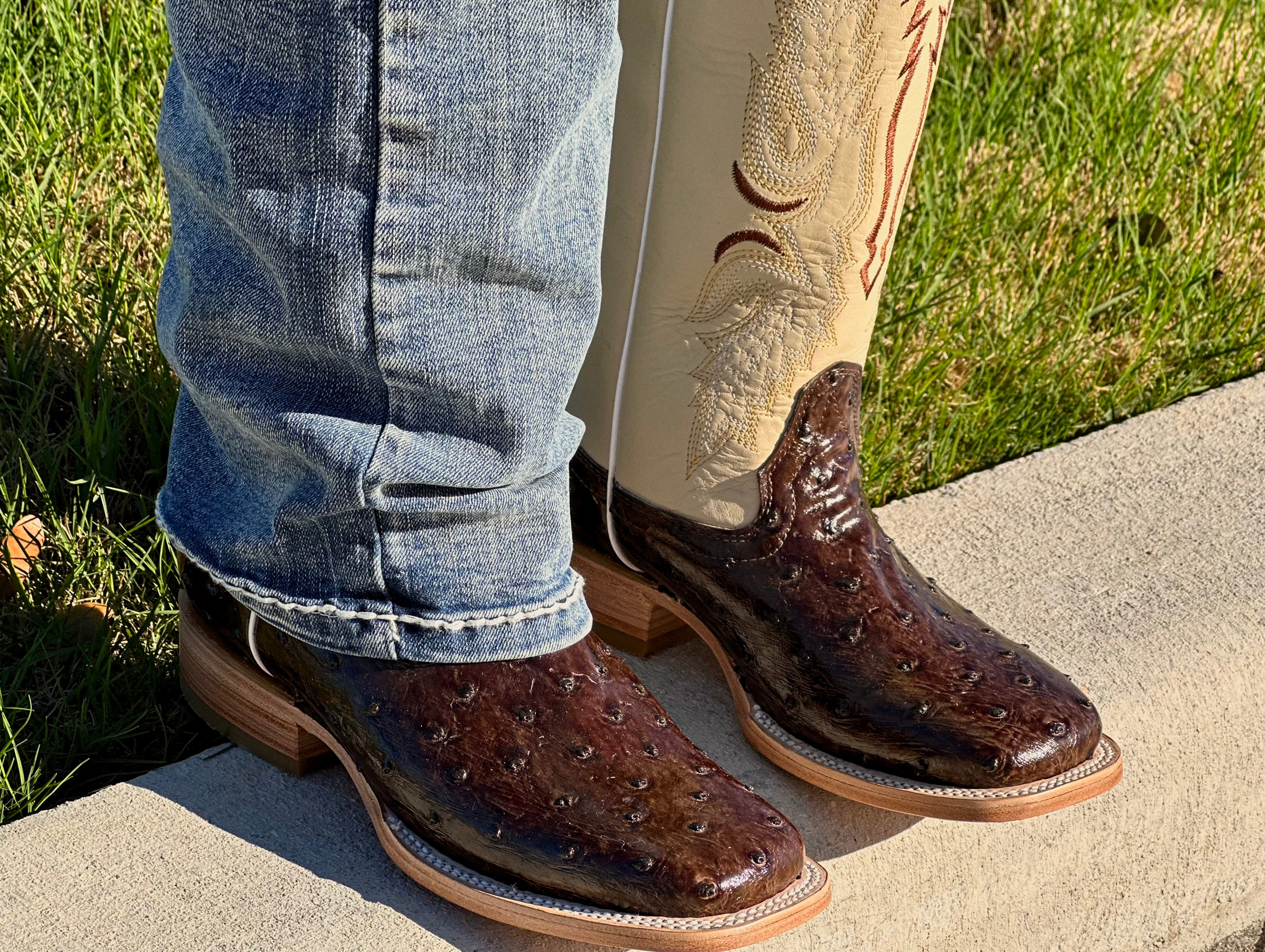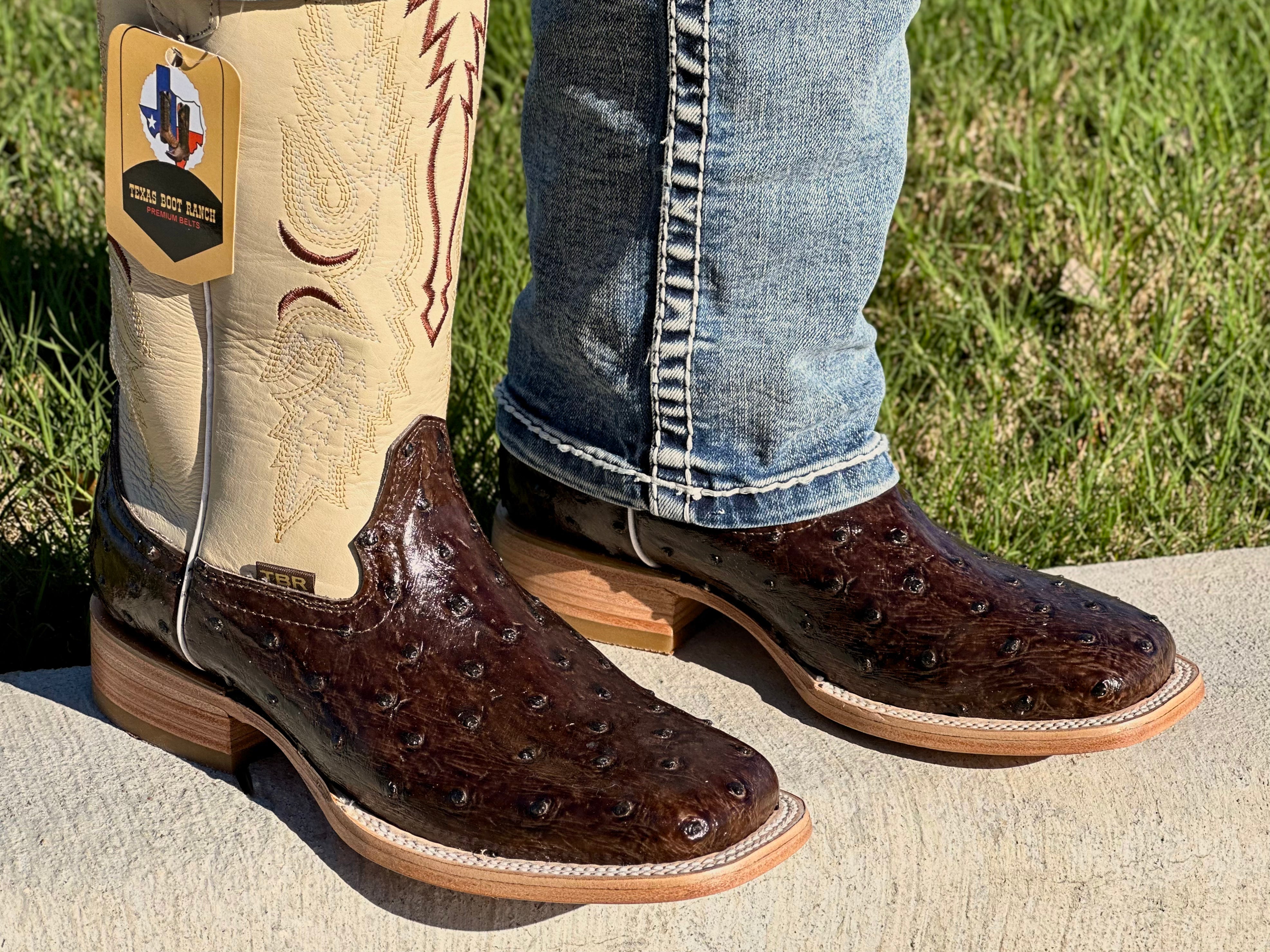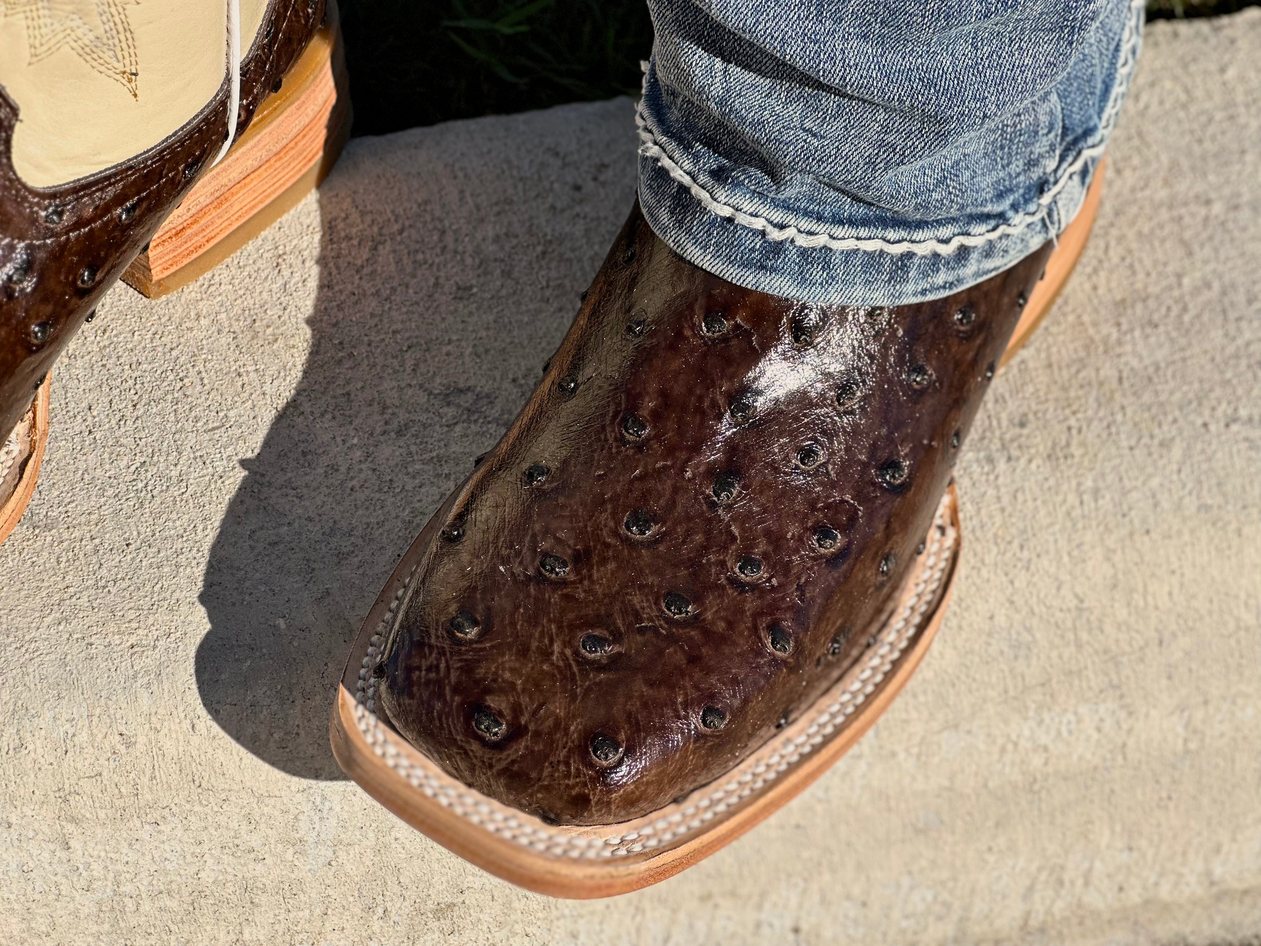 Mens Brown Ostrich Leather Boots With Cream Shaft