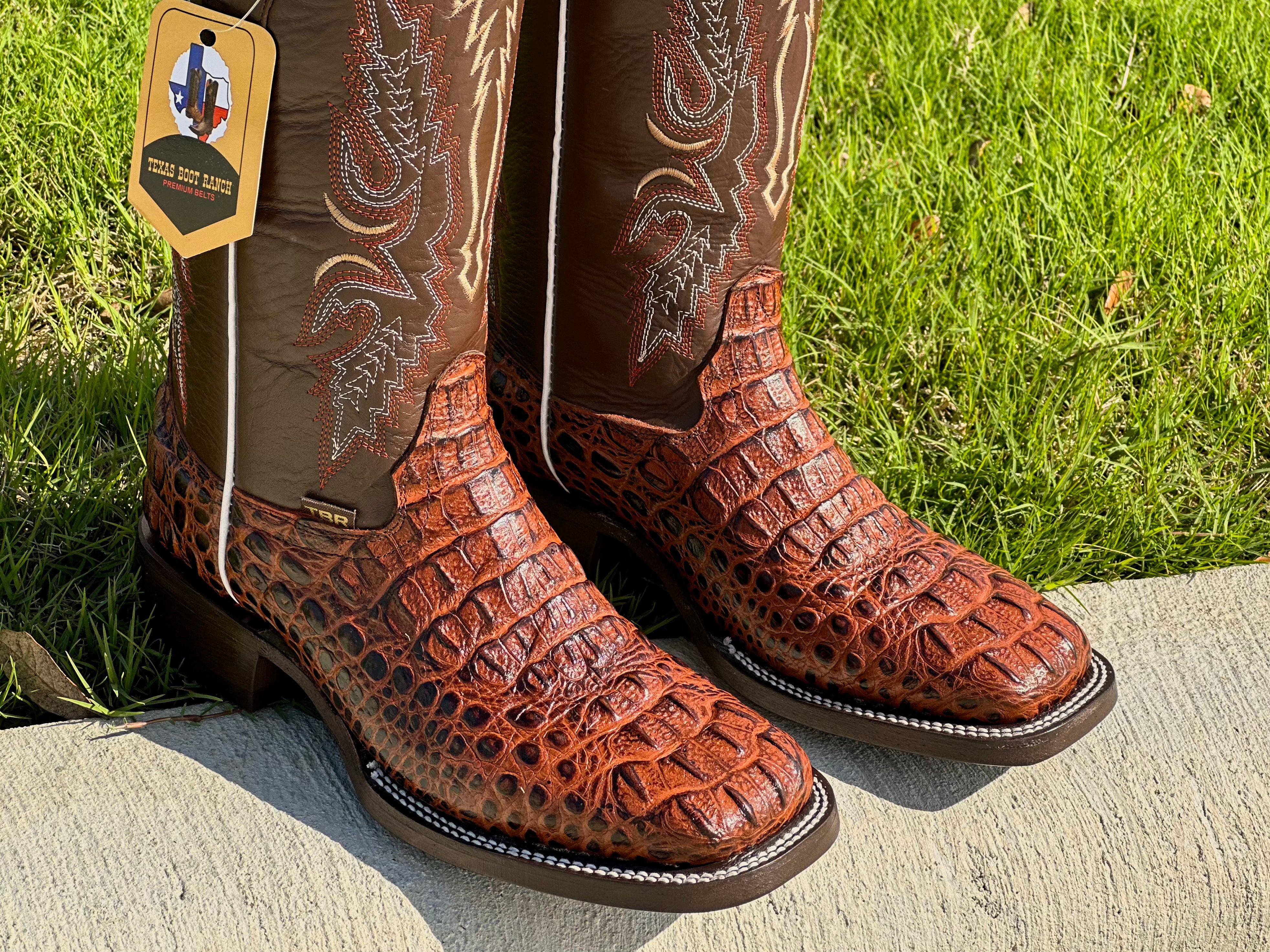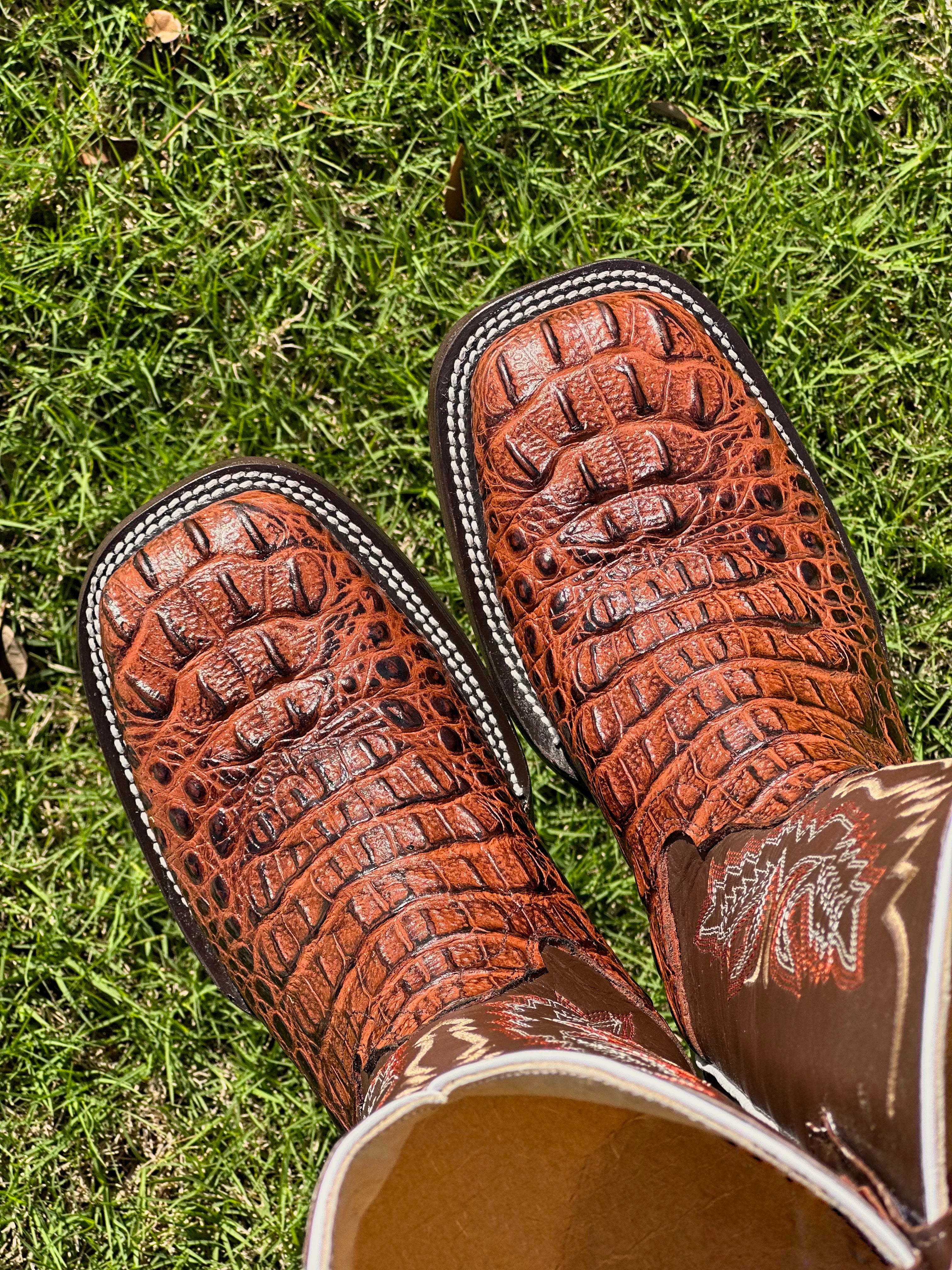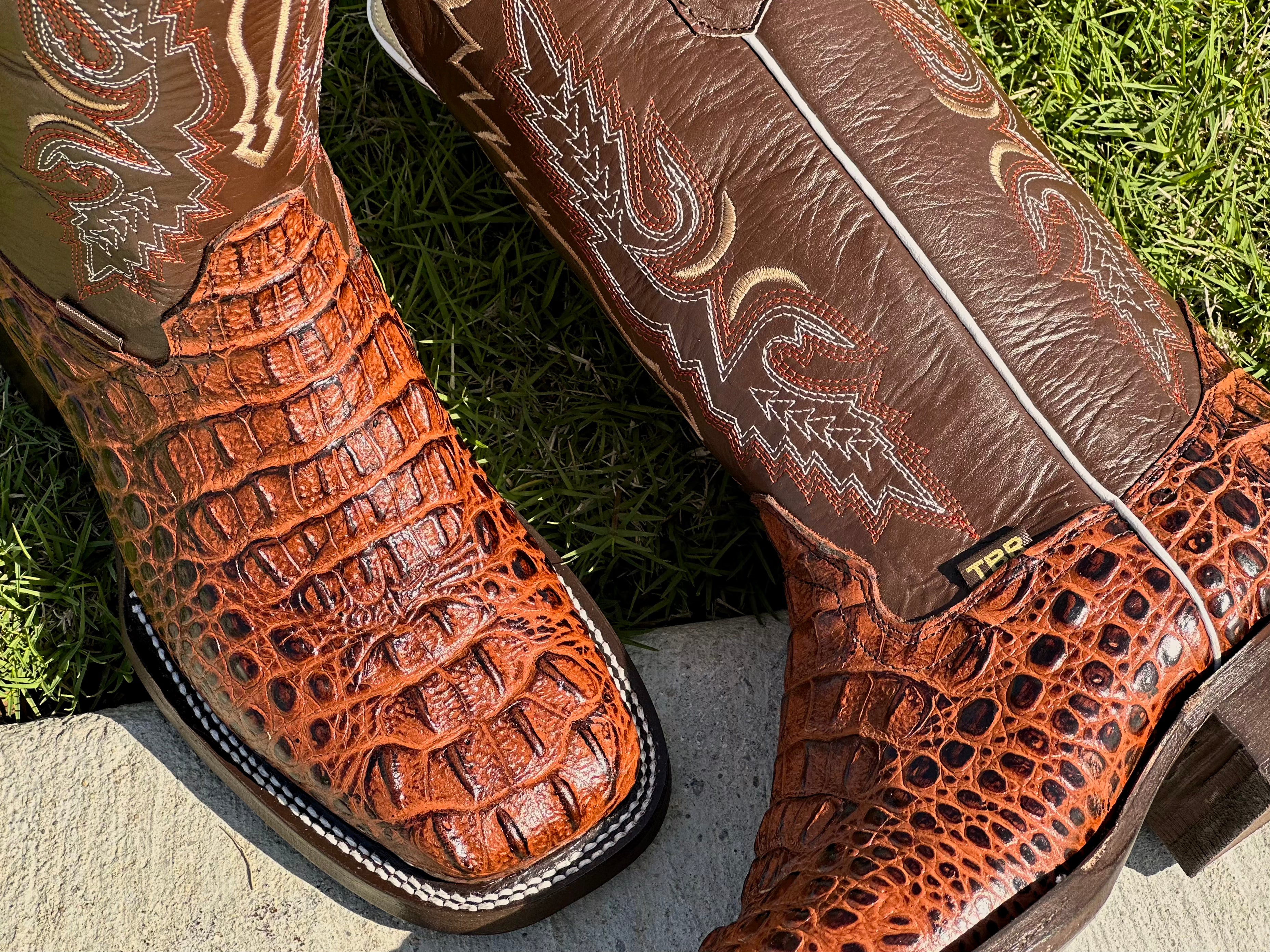 Mens Cognac Crocodile Leather Boots With Brown Shaft
