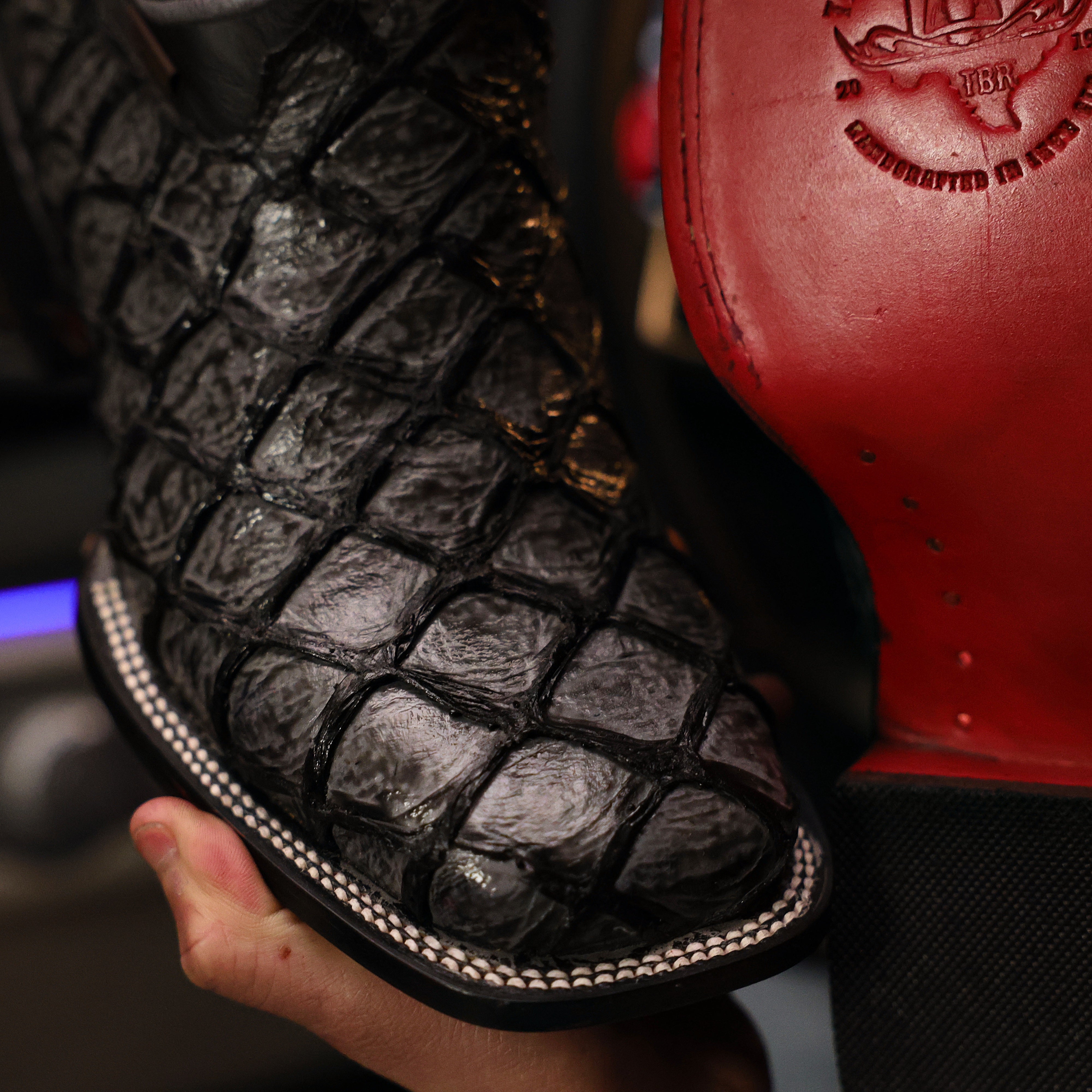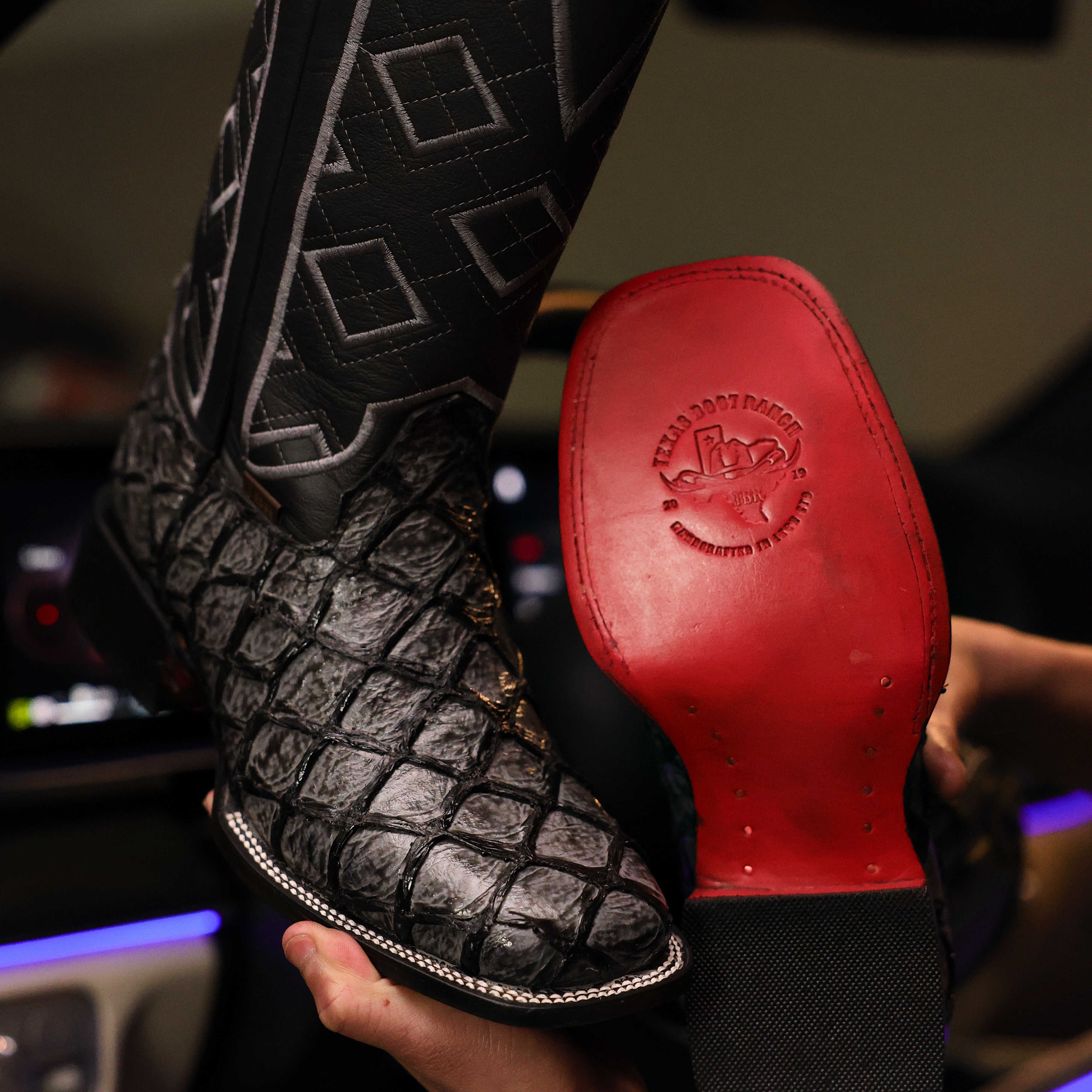 Midnight Grey Pirarucu Leather Boots - Square Toe