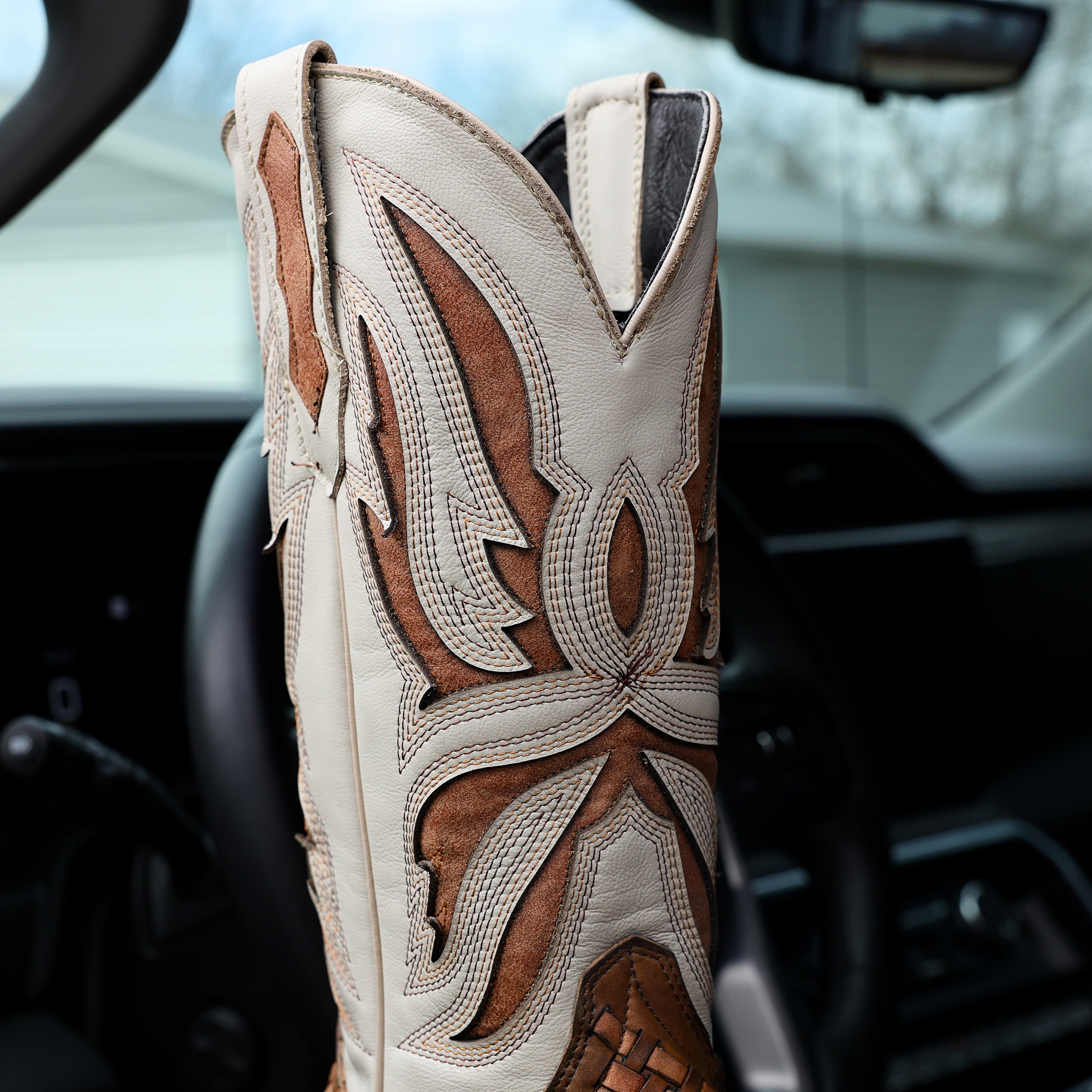 Tan Basketweave Leather Boots - Square Toe