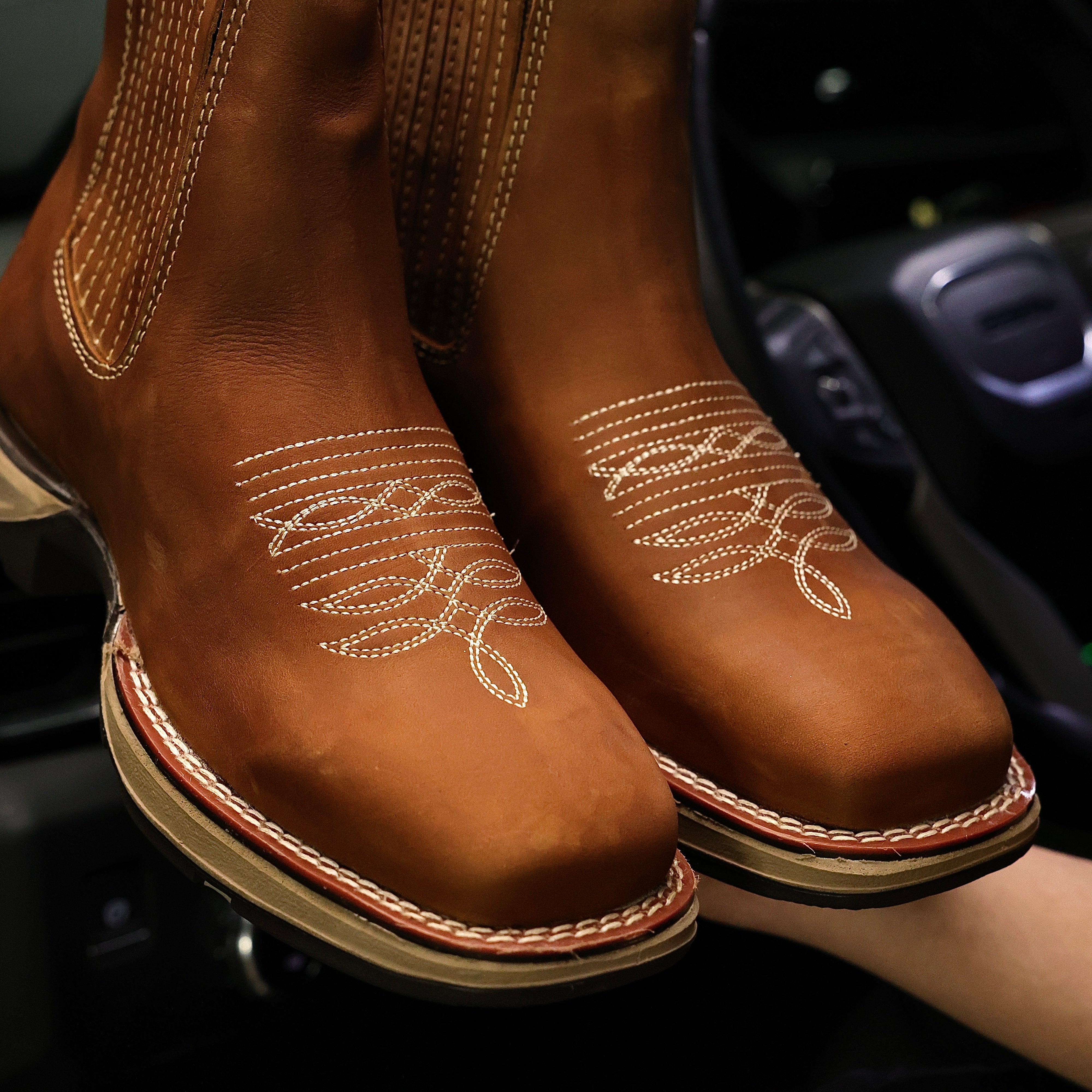 Tan Leather Botin With Lightweight Soles - Square Toe