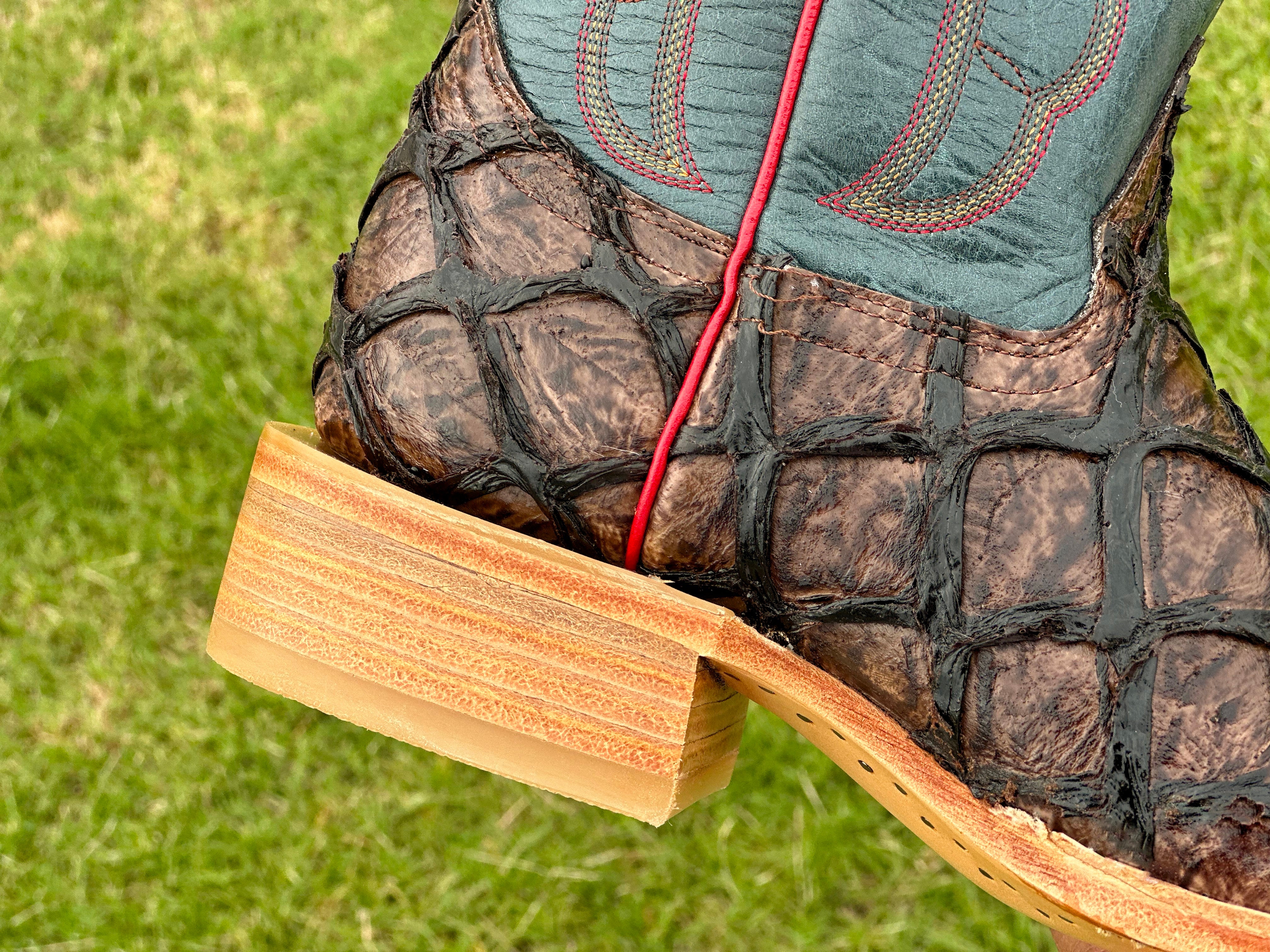 Men’s Brown Pirarucu Leather Boots With Blue Shaft