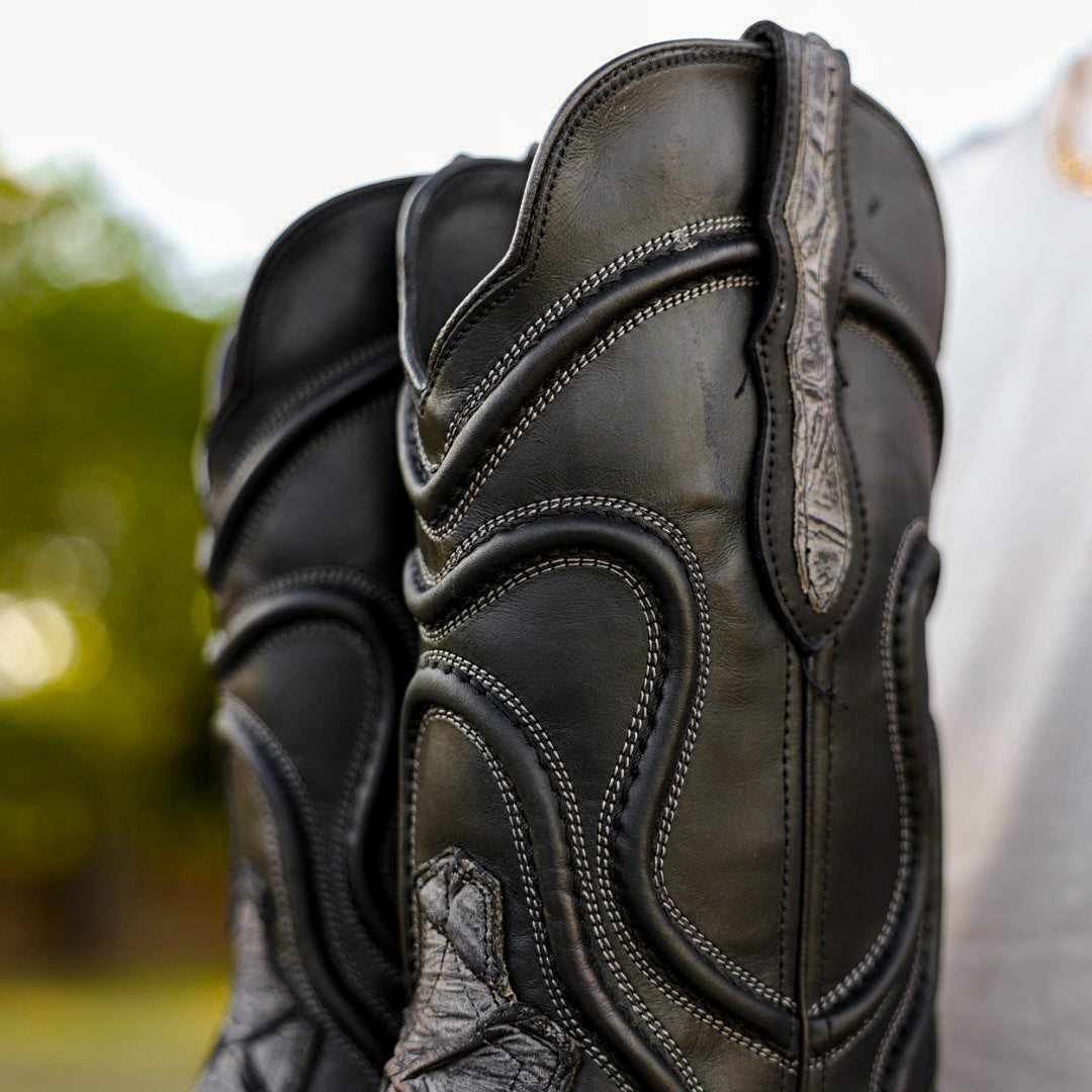 Black Stingray Leather Boots - Square Toe