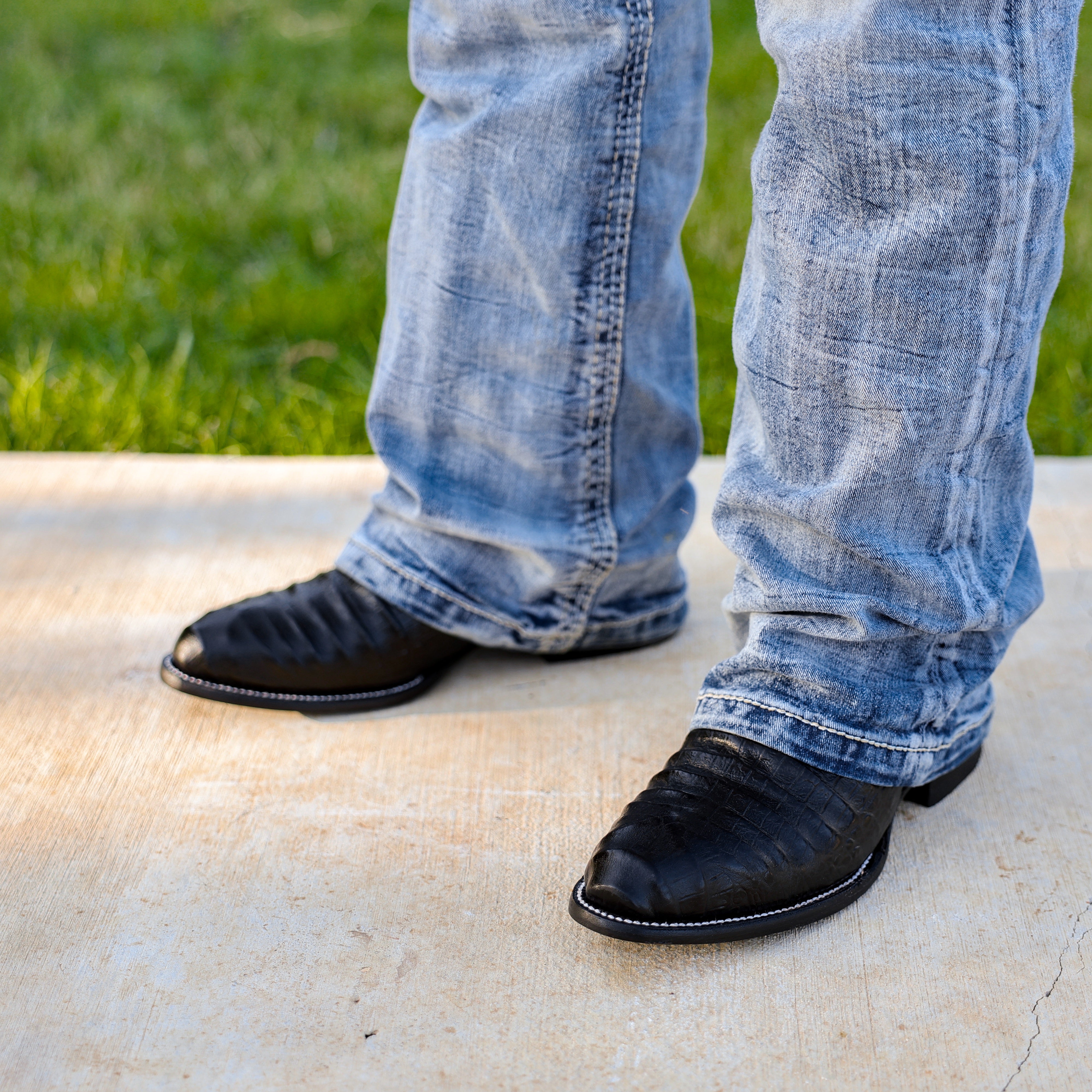 Black Caiman Hornback Leather Boots - Round Toe