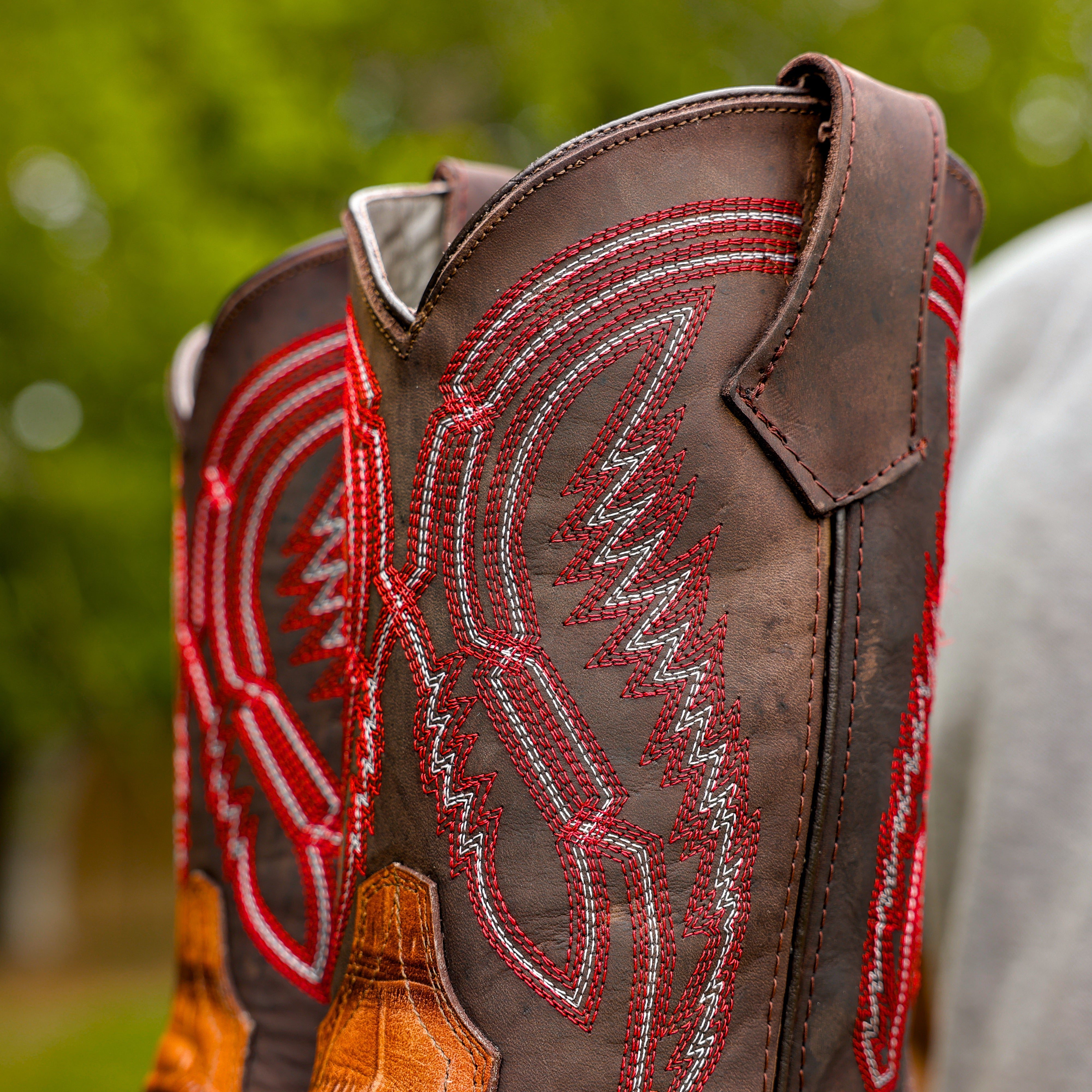 JUMBO Cognac Pirarucu Leather Boots - Square Toe