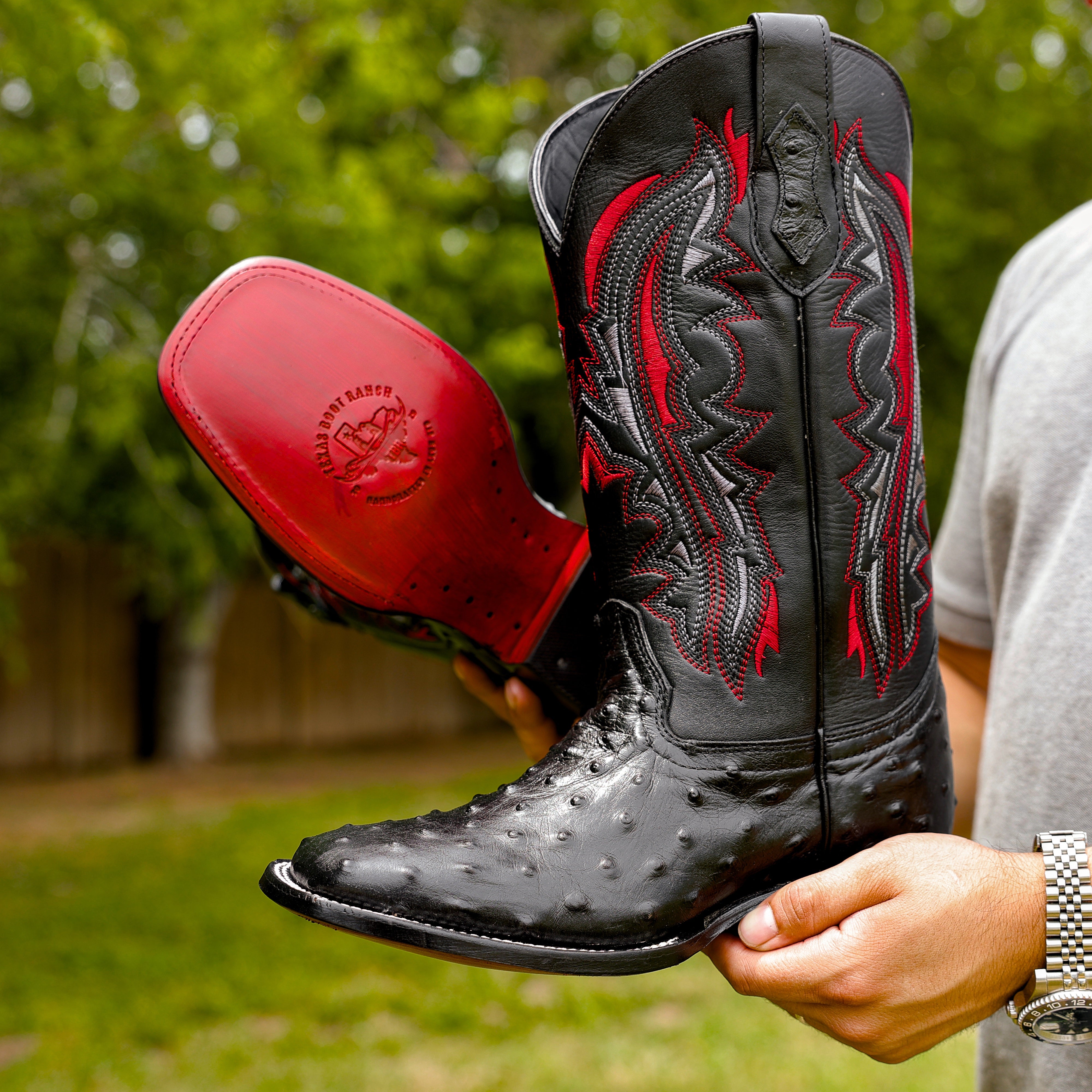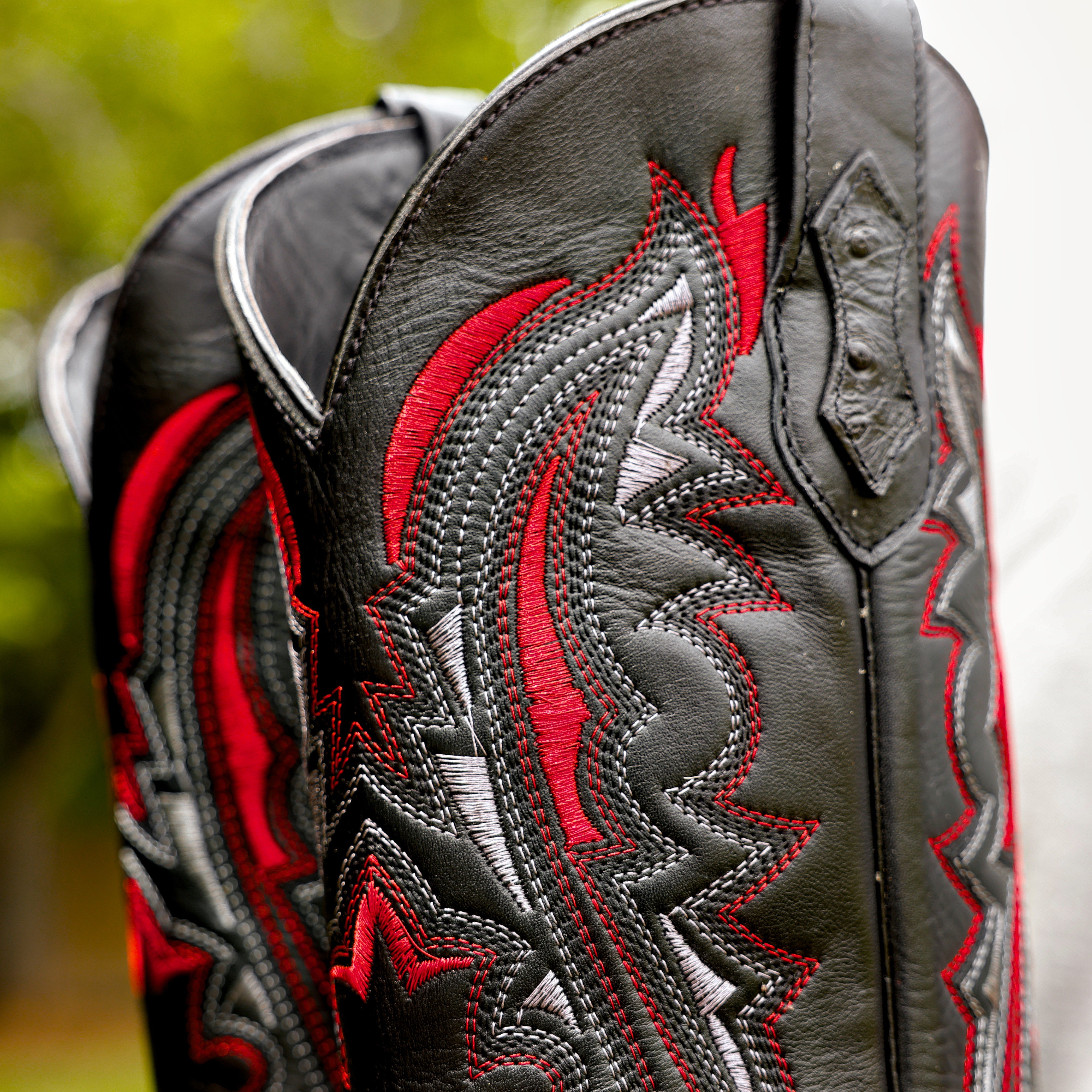 Black Ostrich Leather Boots - Square Toe