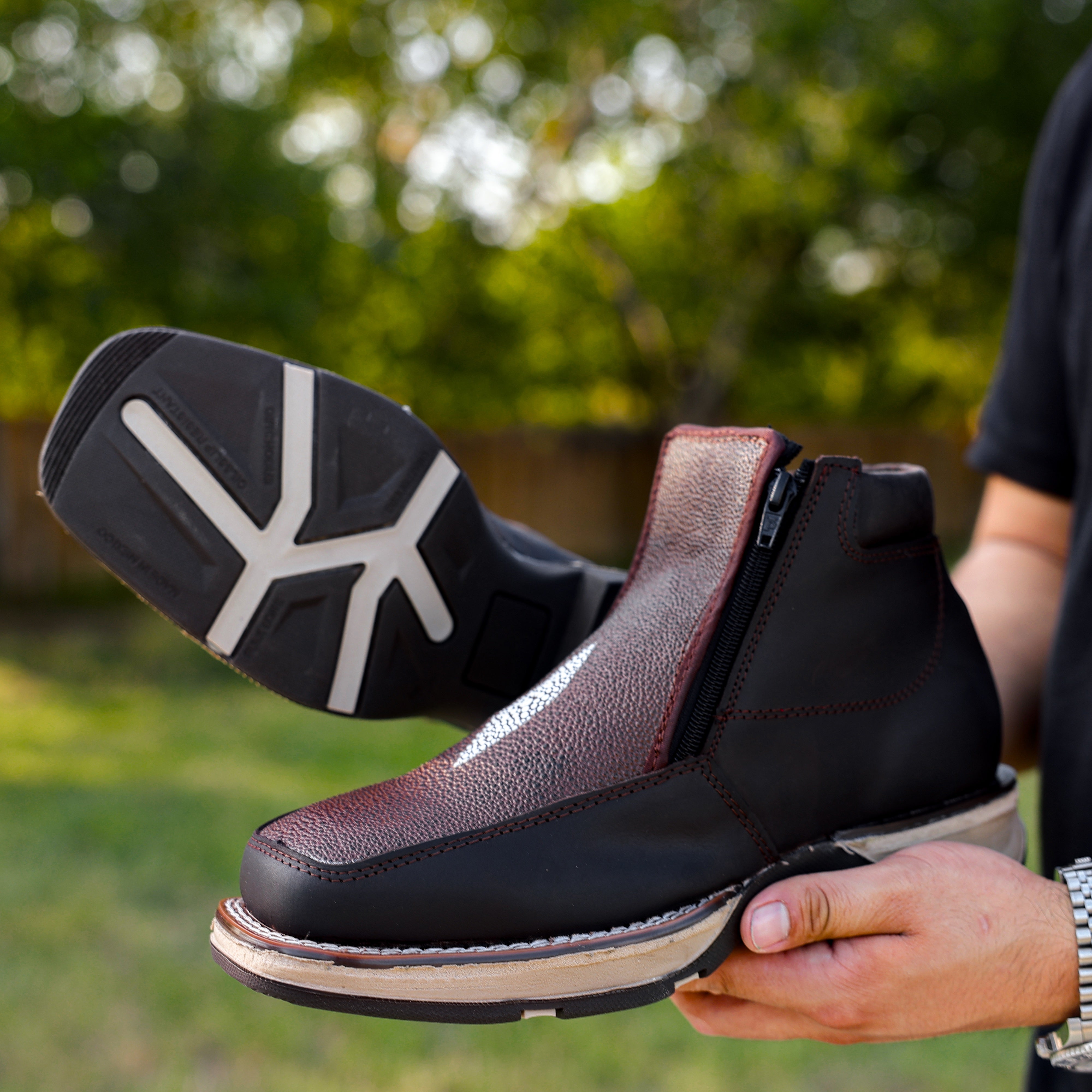 Brown Stingray Leather Botin With 3D Lightweight Soles - Square Toe